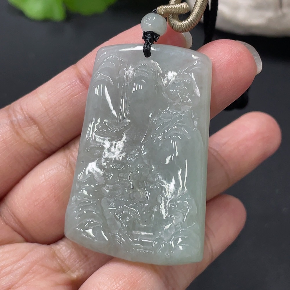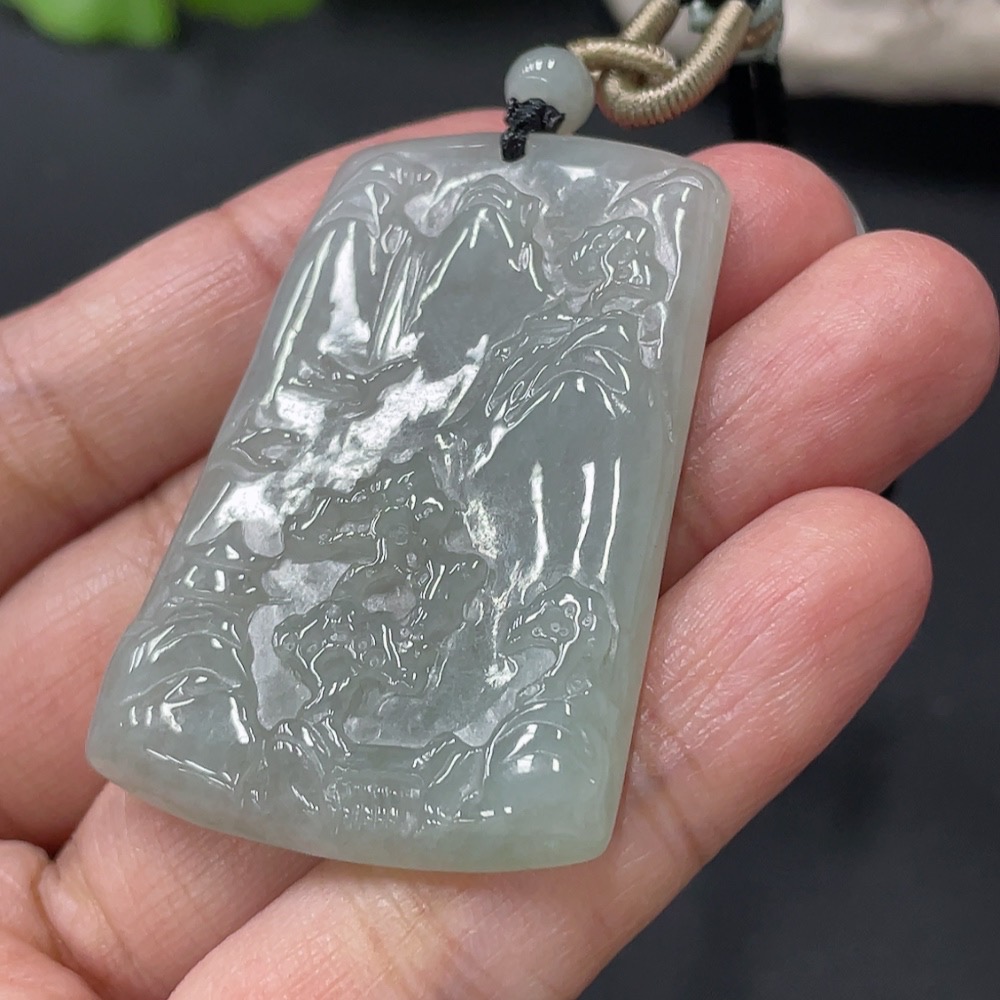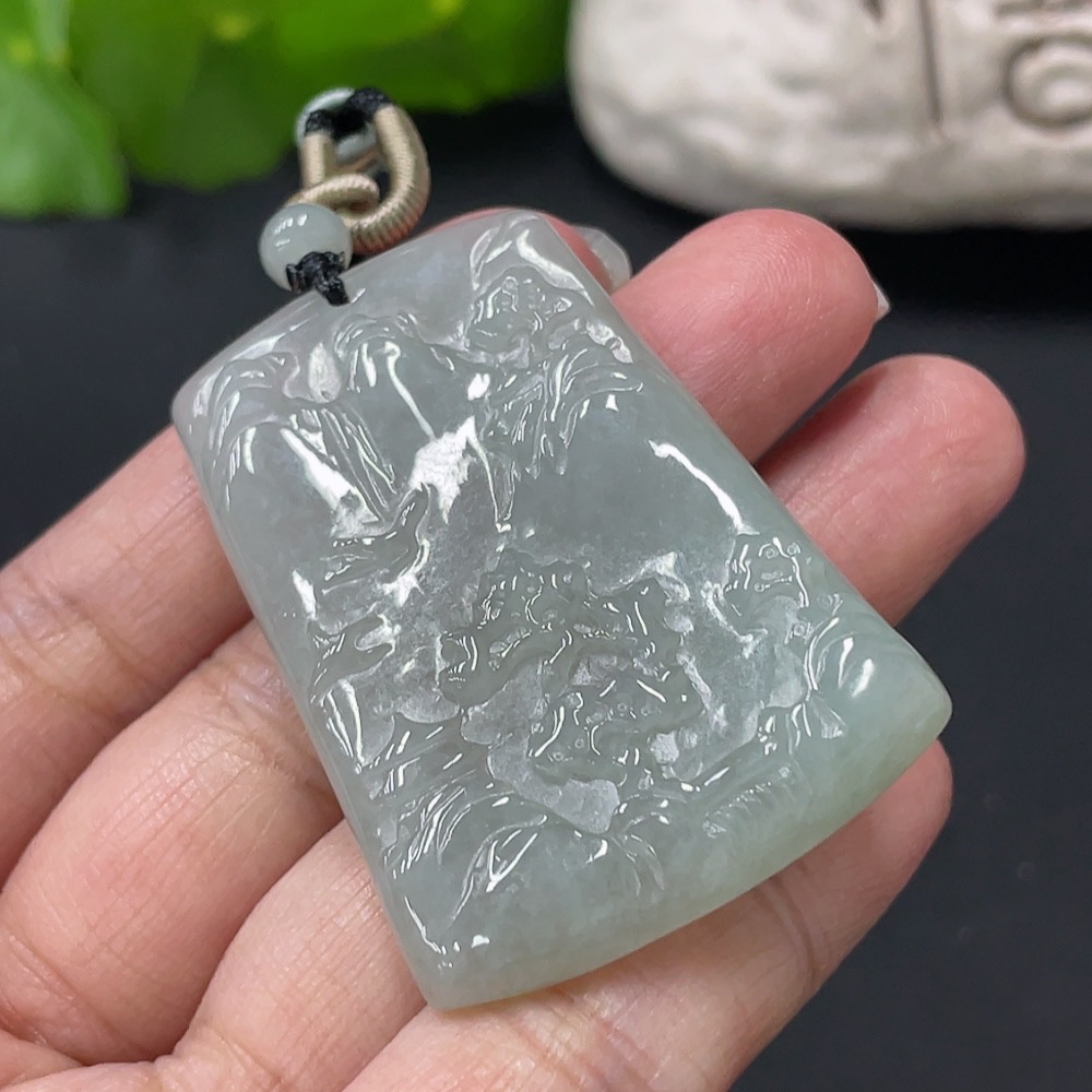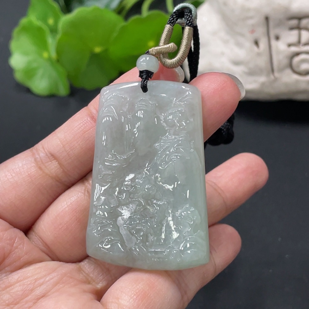 Jadeite Landscape Pendant, Total Weight Approx. 21.4g