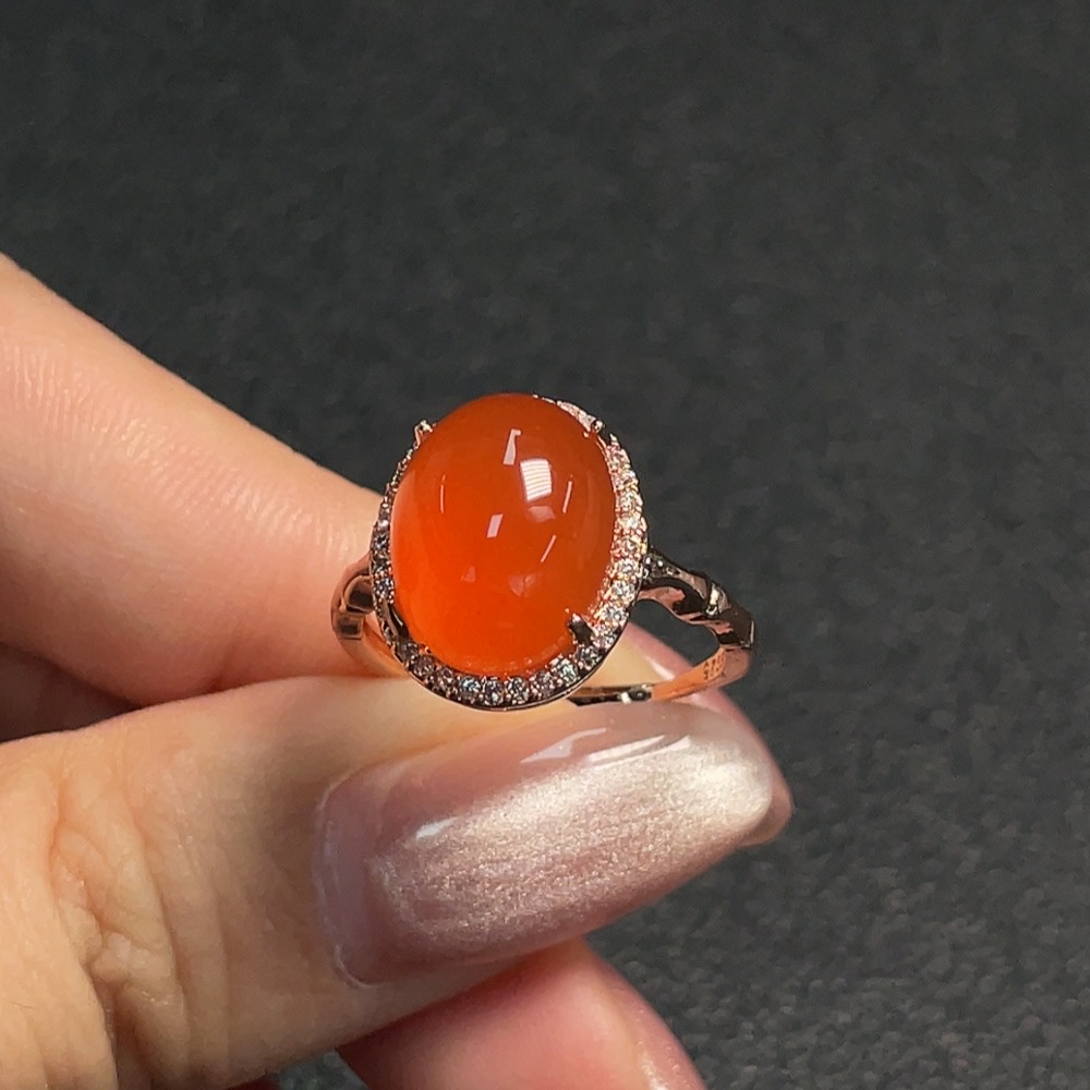 South Red Agate Inlaid Ring Non-Gold Setting Adjustable Size Total Weight Approx. 3.96g