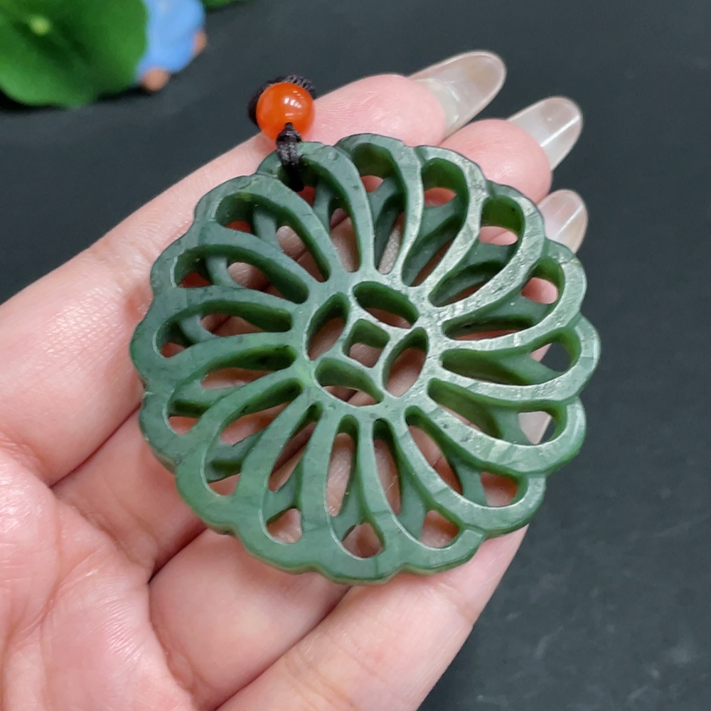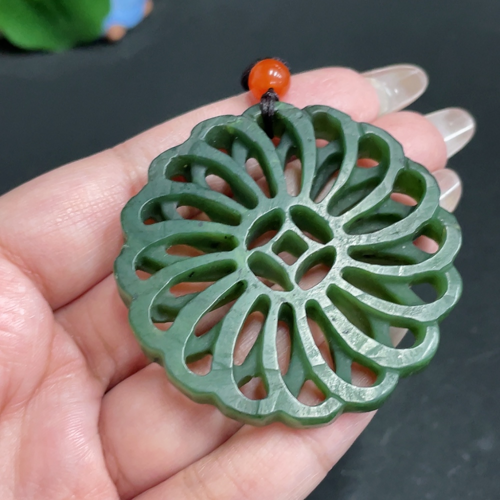 Hetian Jade Pendant, Antique Style, with Non-Hetian Jade Beads, Total Weight Approx. 24.2g (including rope)