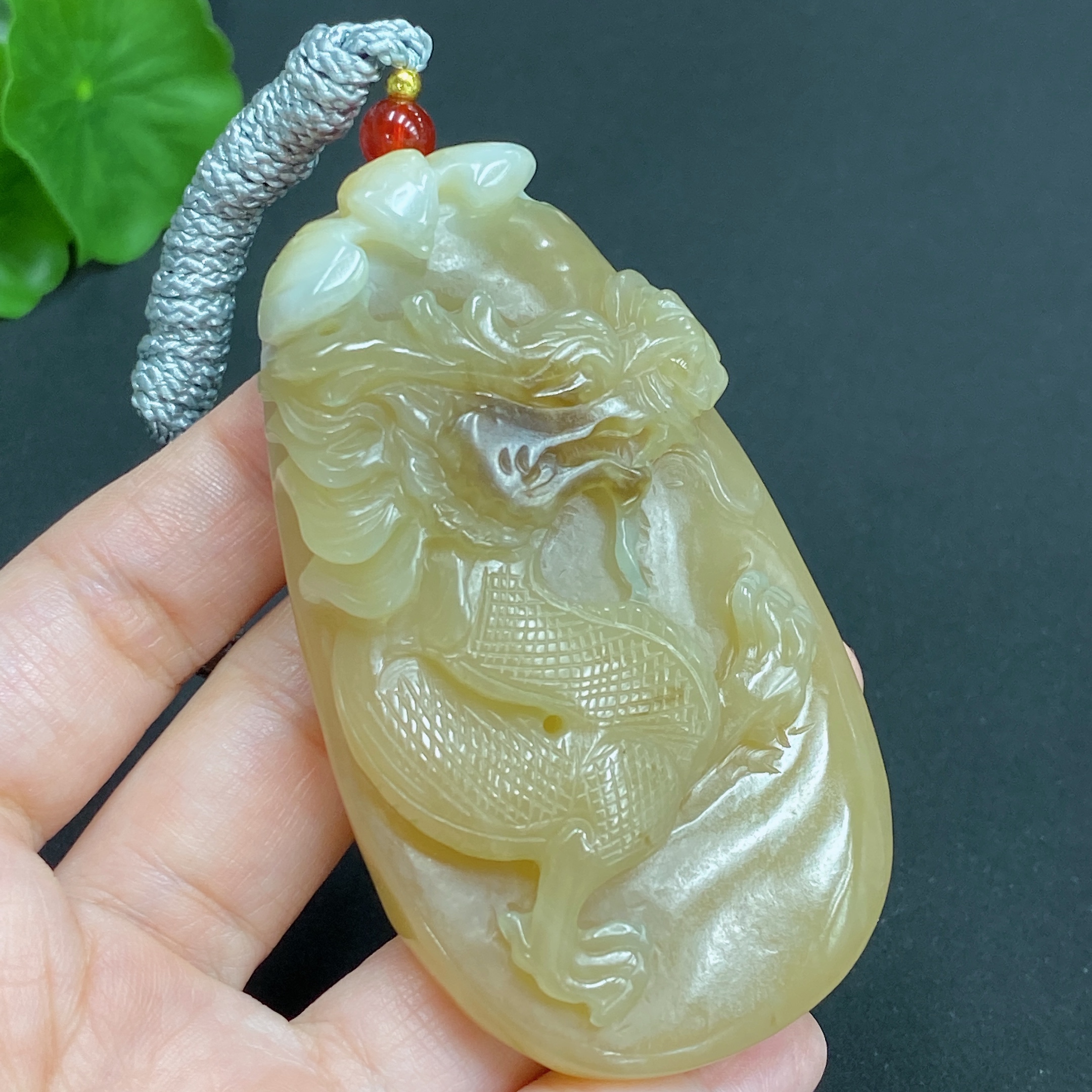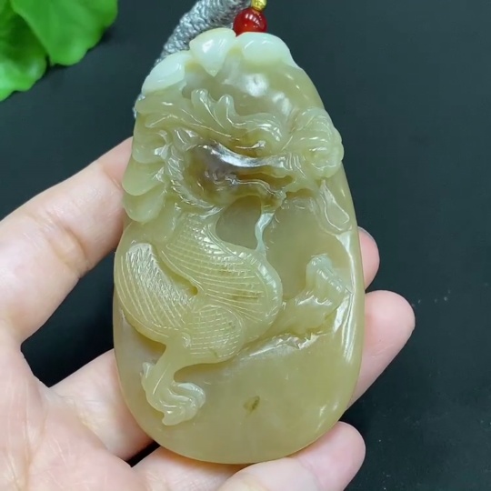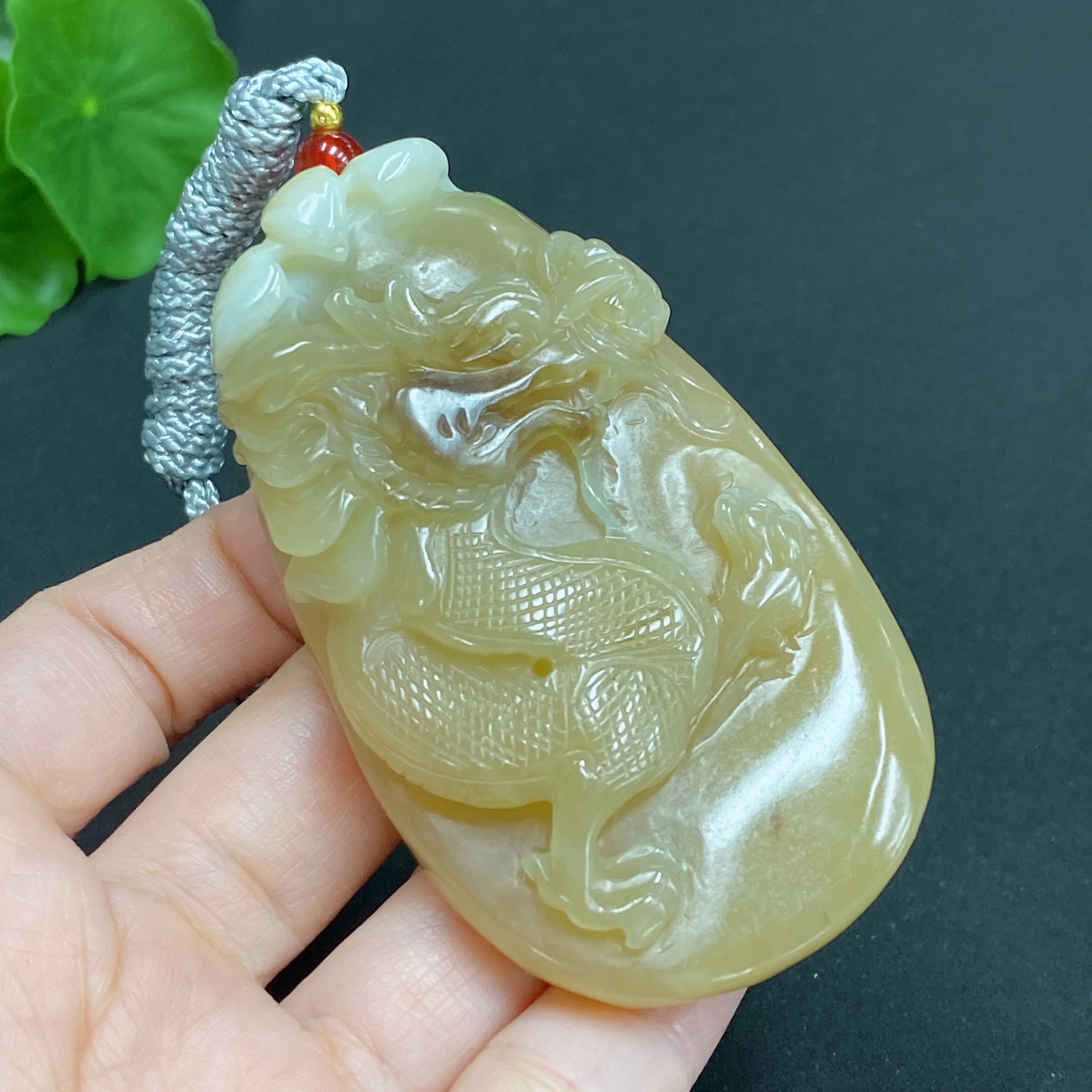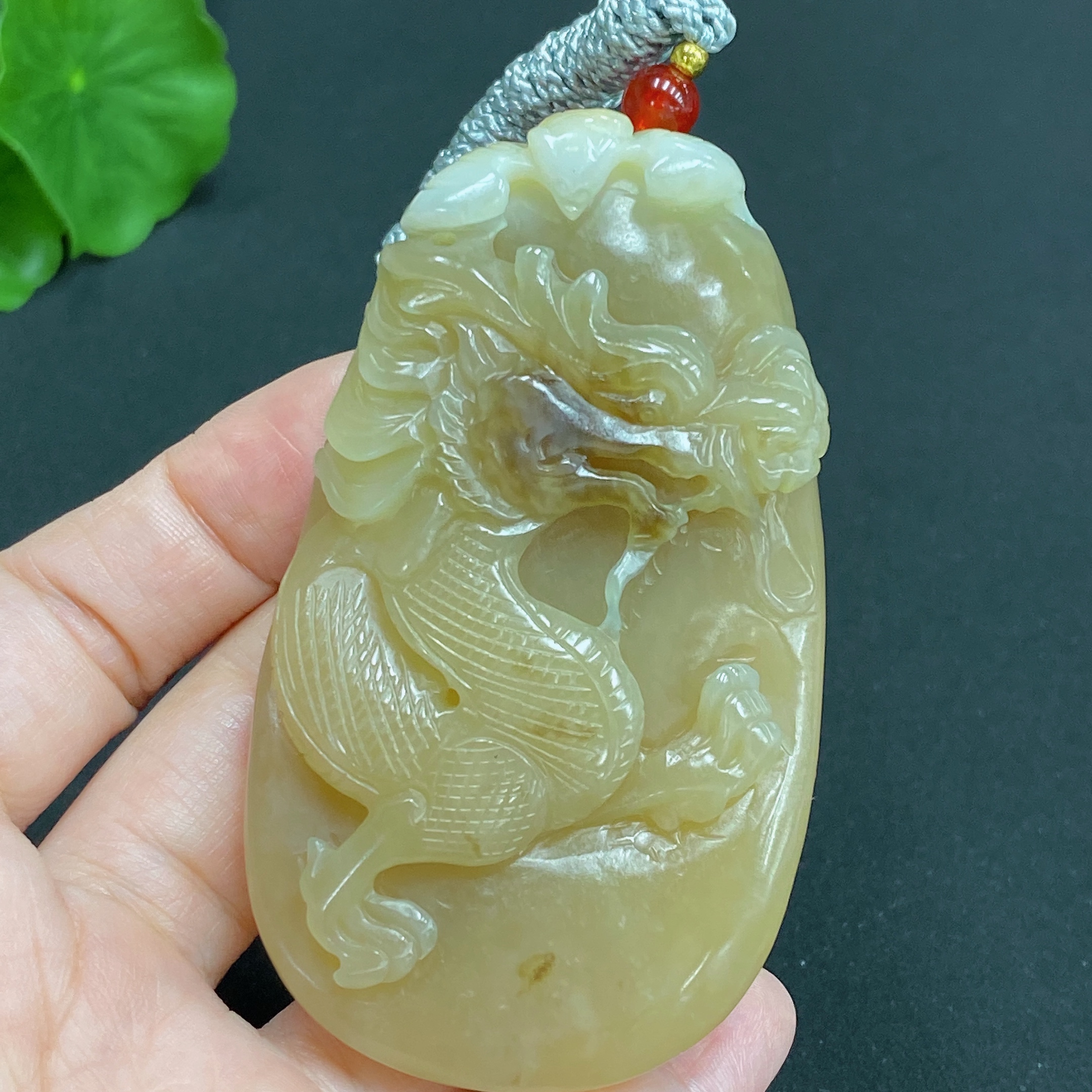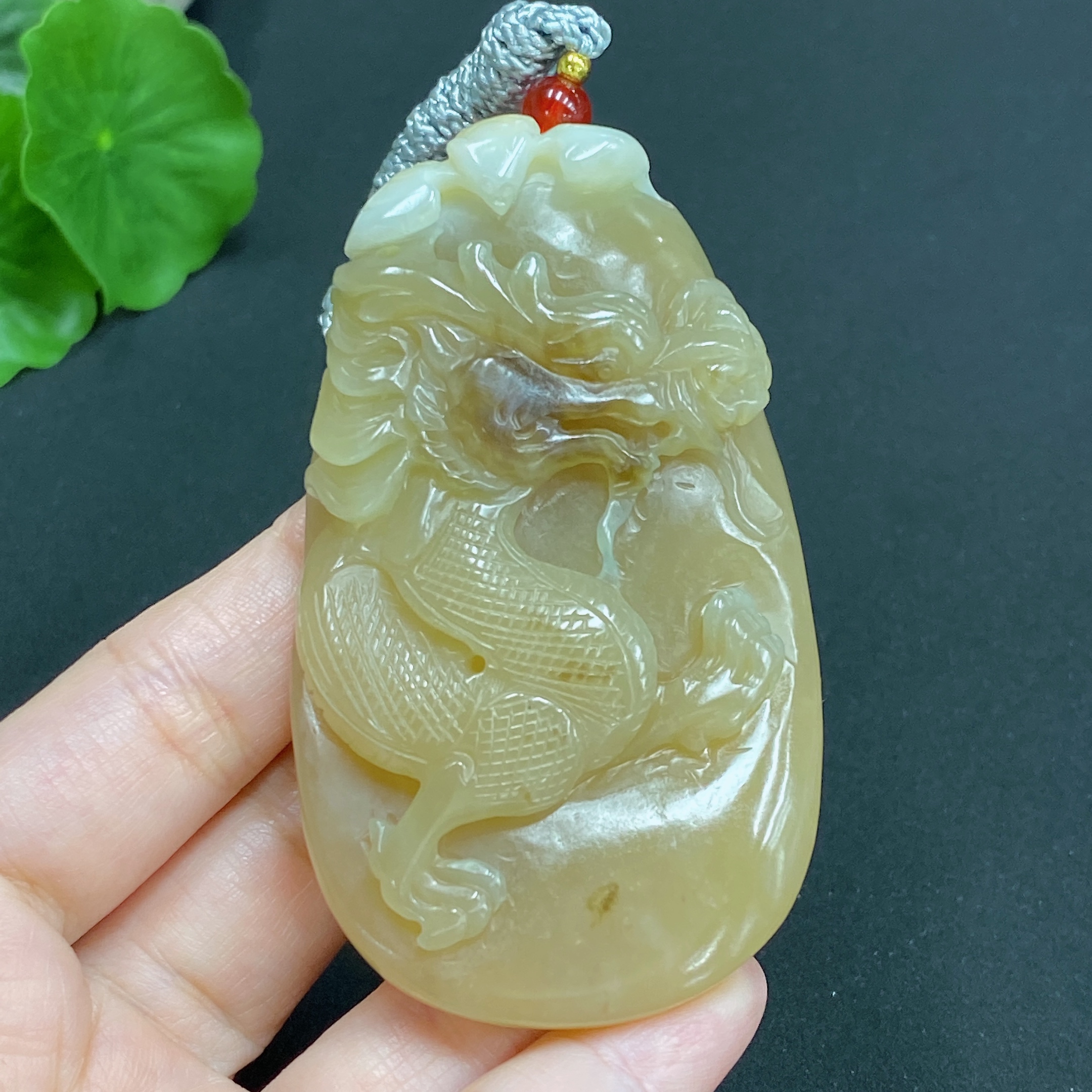 Hetian Jade Pendant Dragon Plaque Total Weight Approx. (Incl. Cord) 75.3g