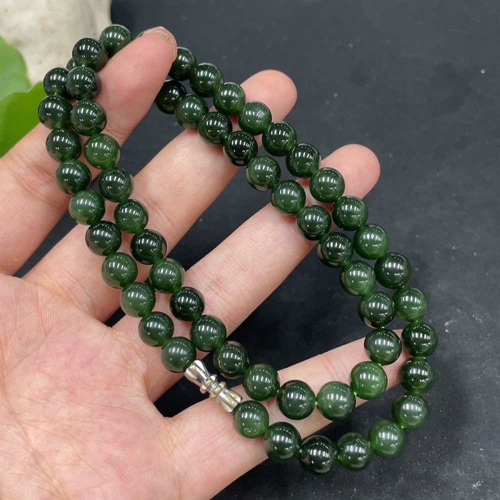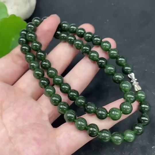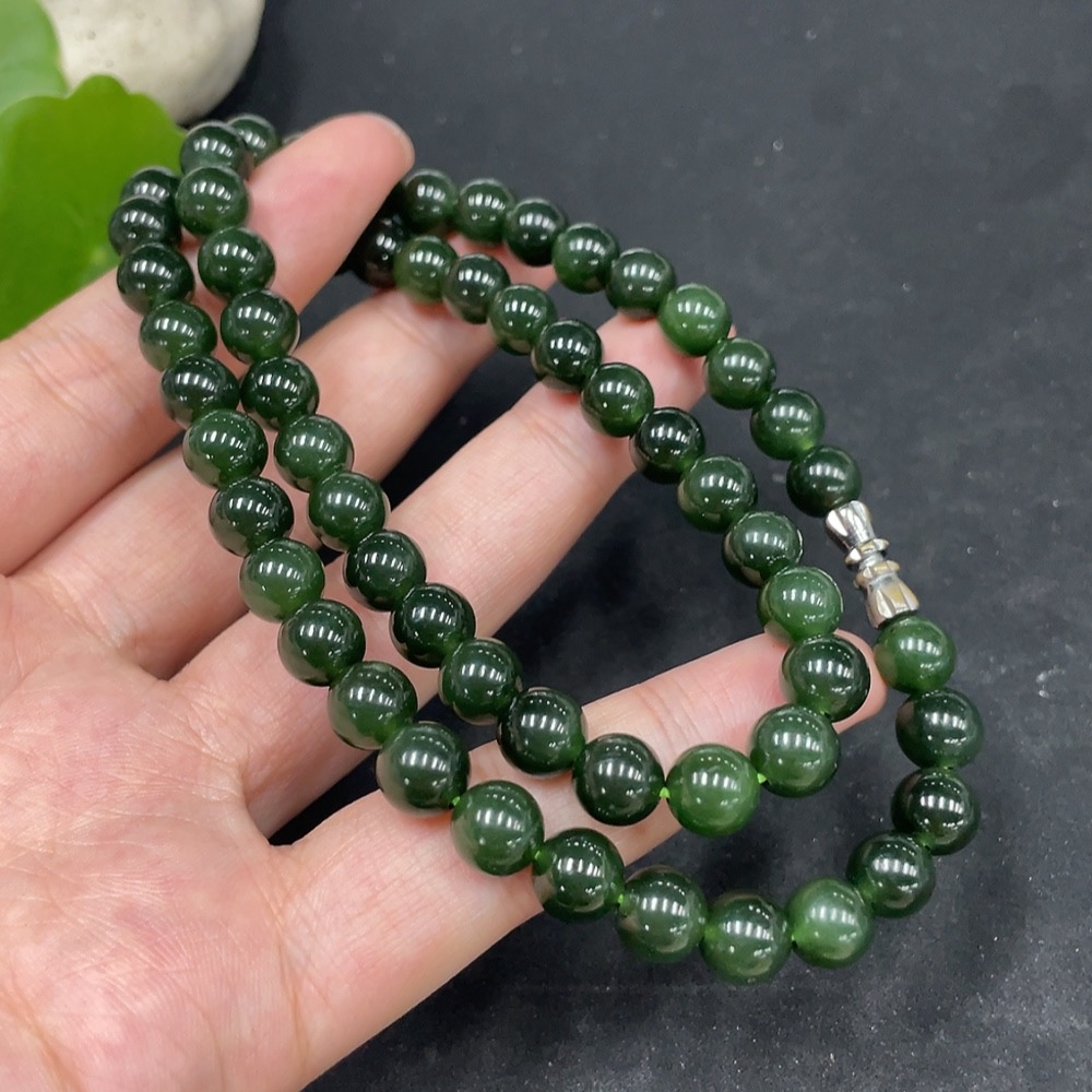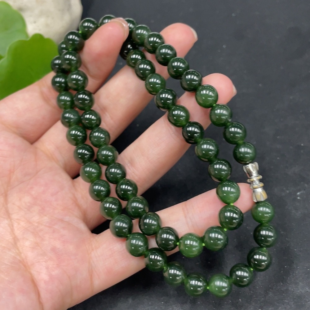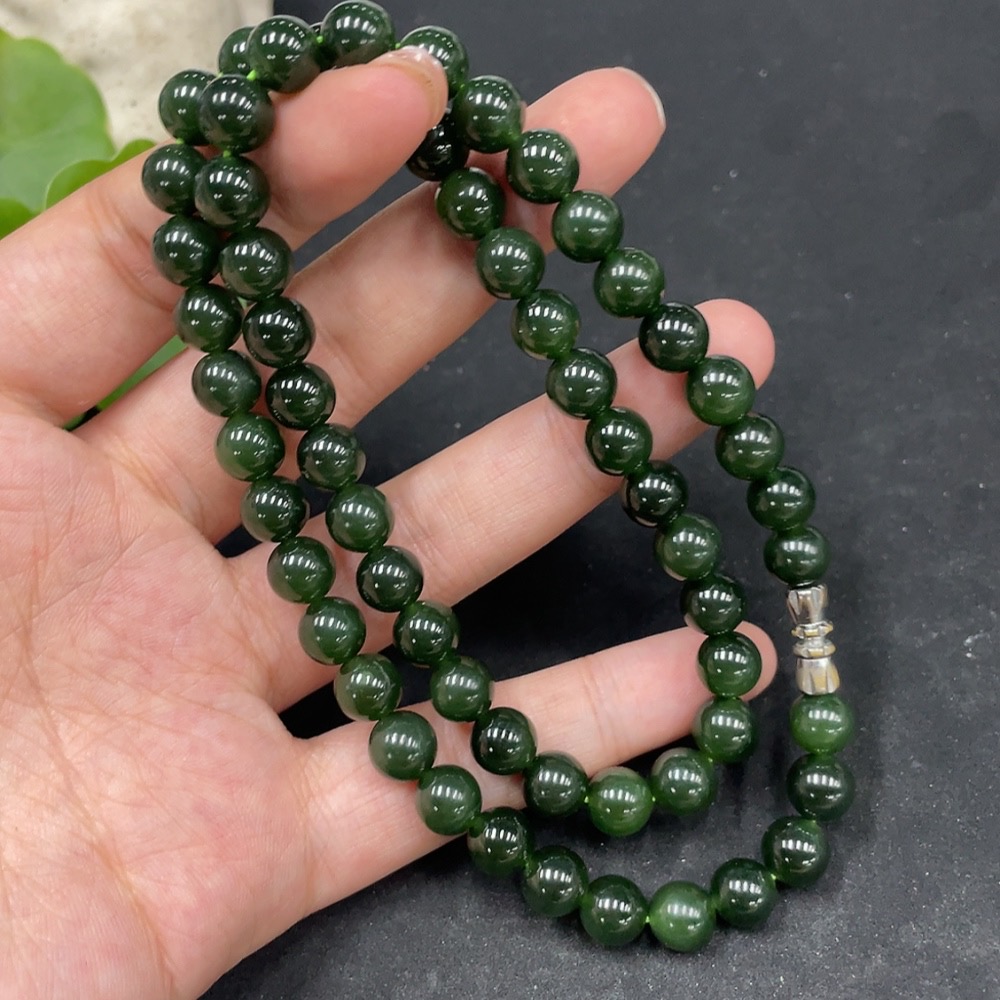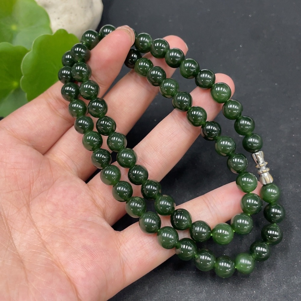 Hetian Jade Bead Necklace Approx. 7.5mm Non-Gold Total Weight Approx. 42.3g
