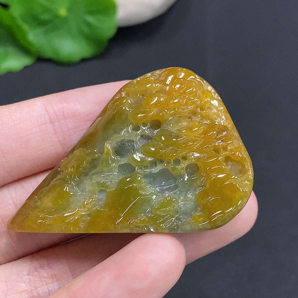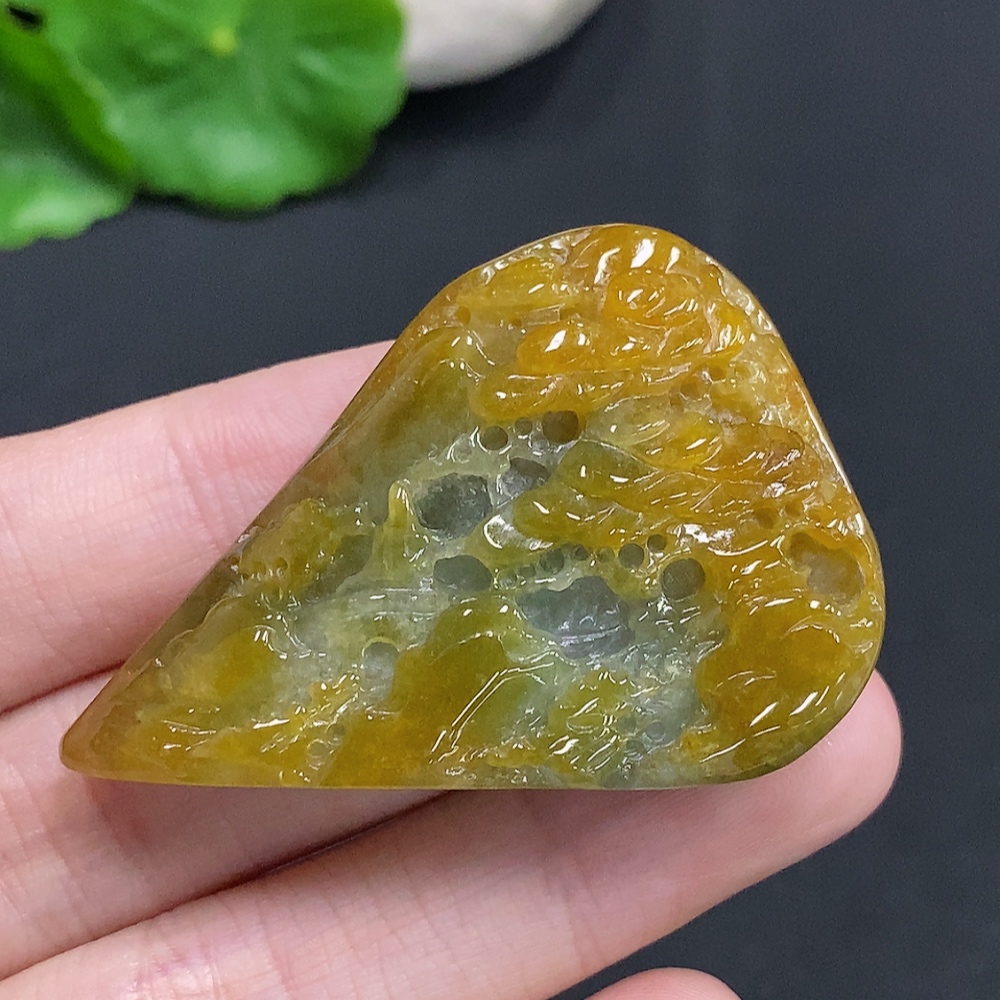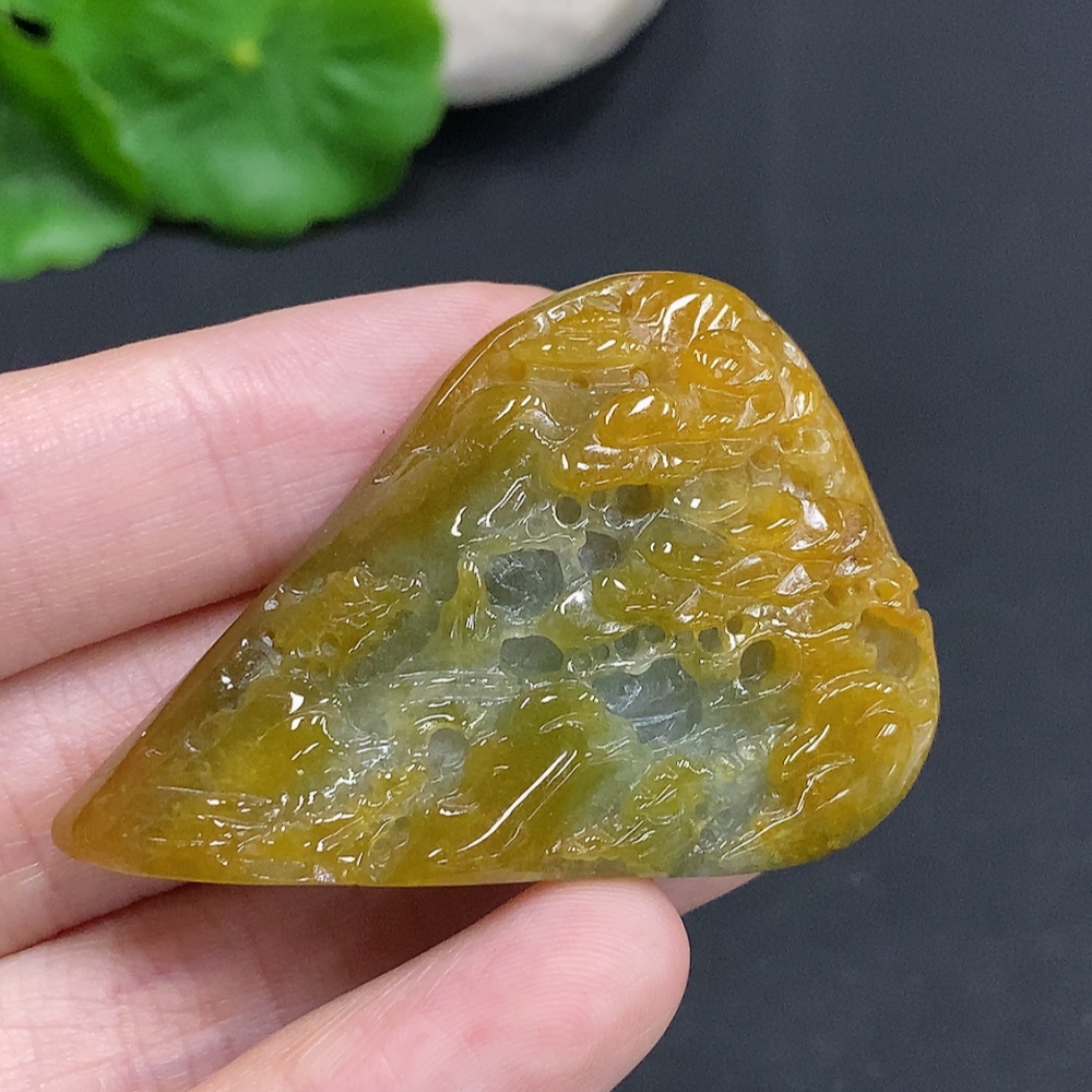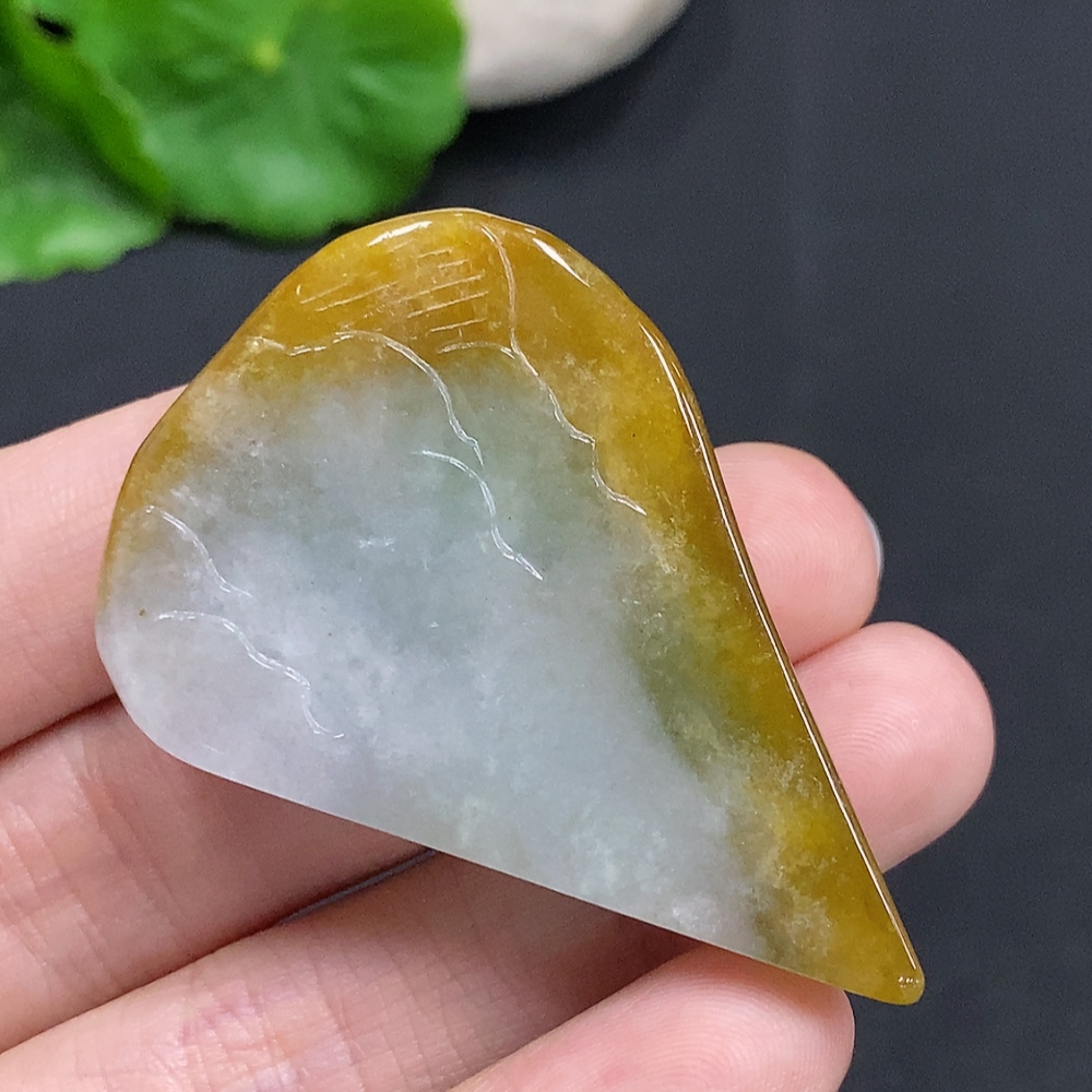 Jadeite landscape ornament with a total weight of approximately 33.1g (color origin undetermined)