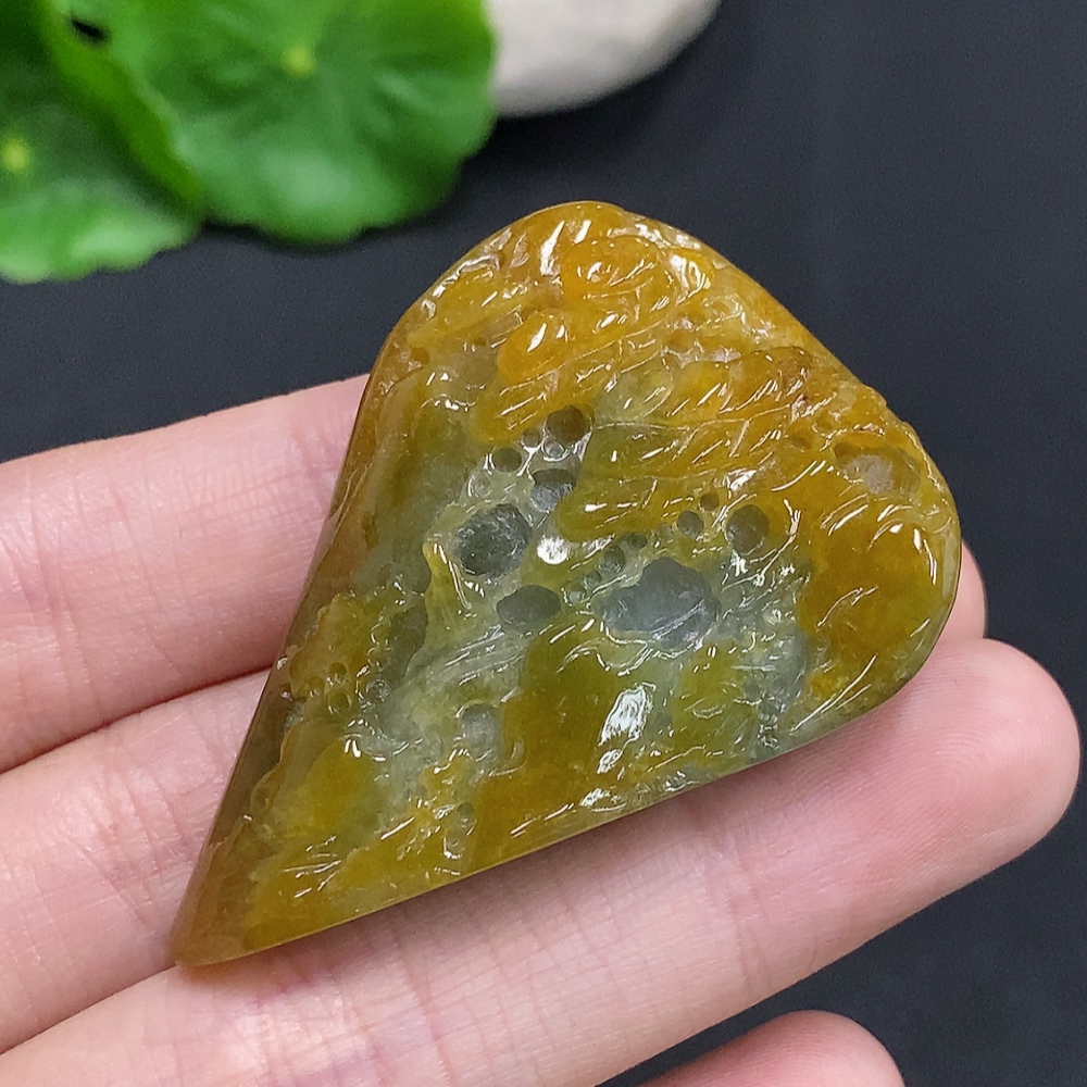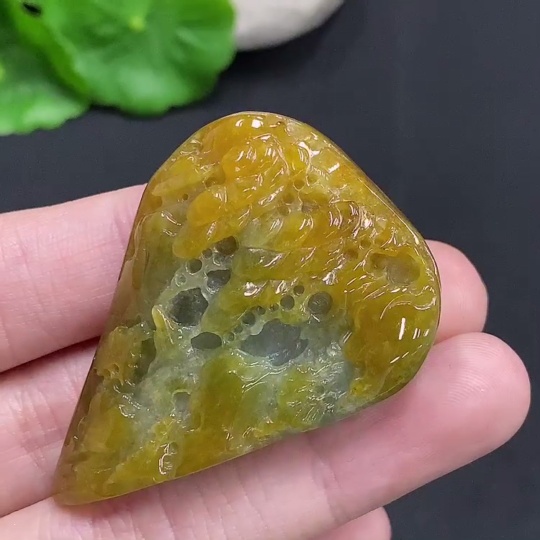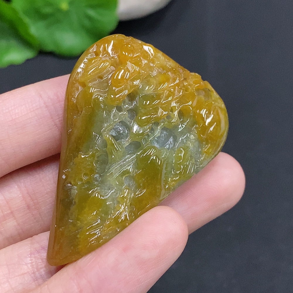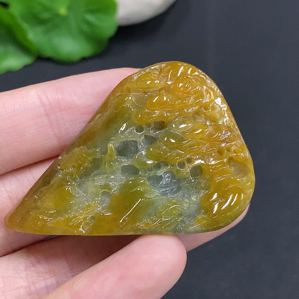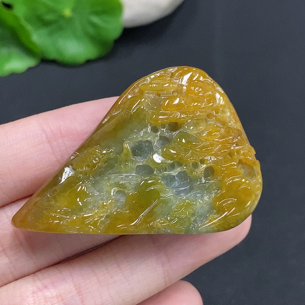 Jadeite landscape ornament with a total weight of approximately 33.1g (color origin undetermined)