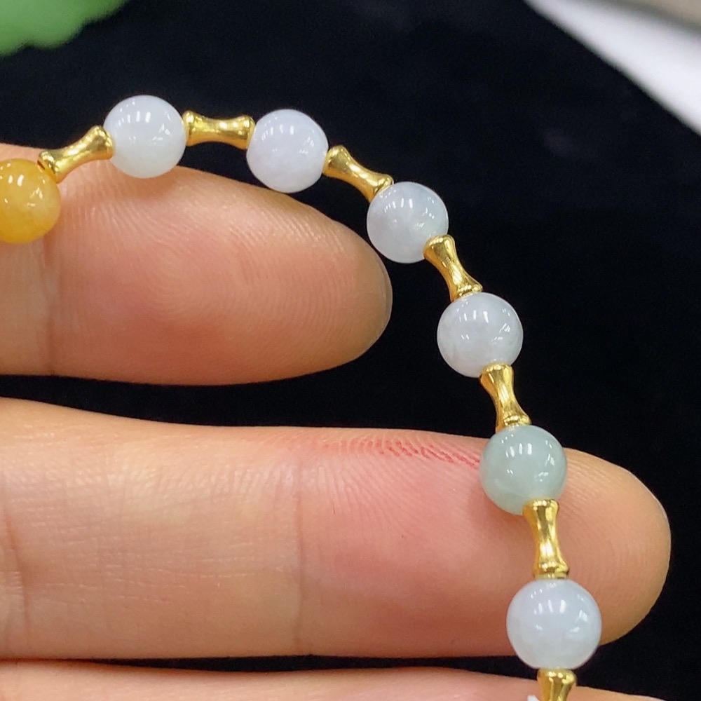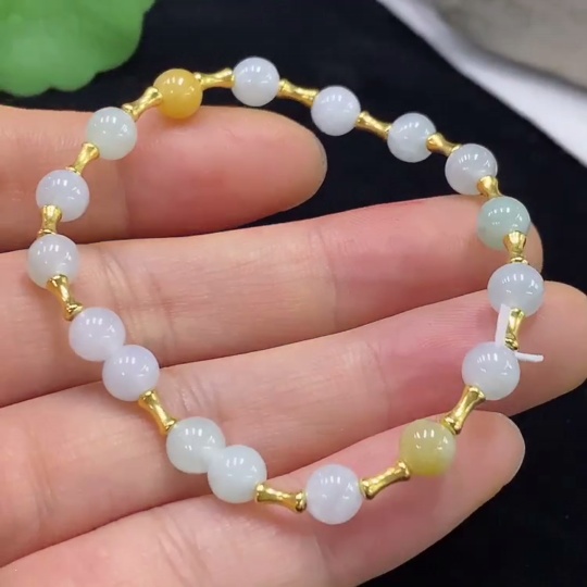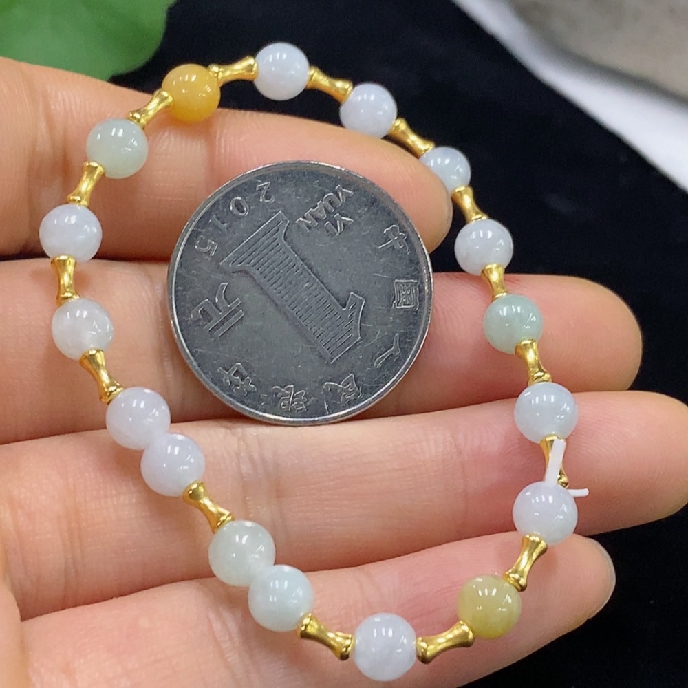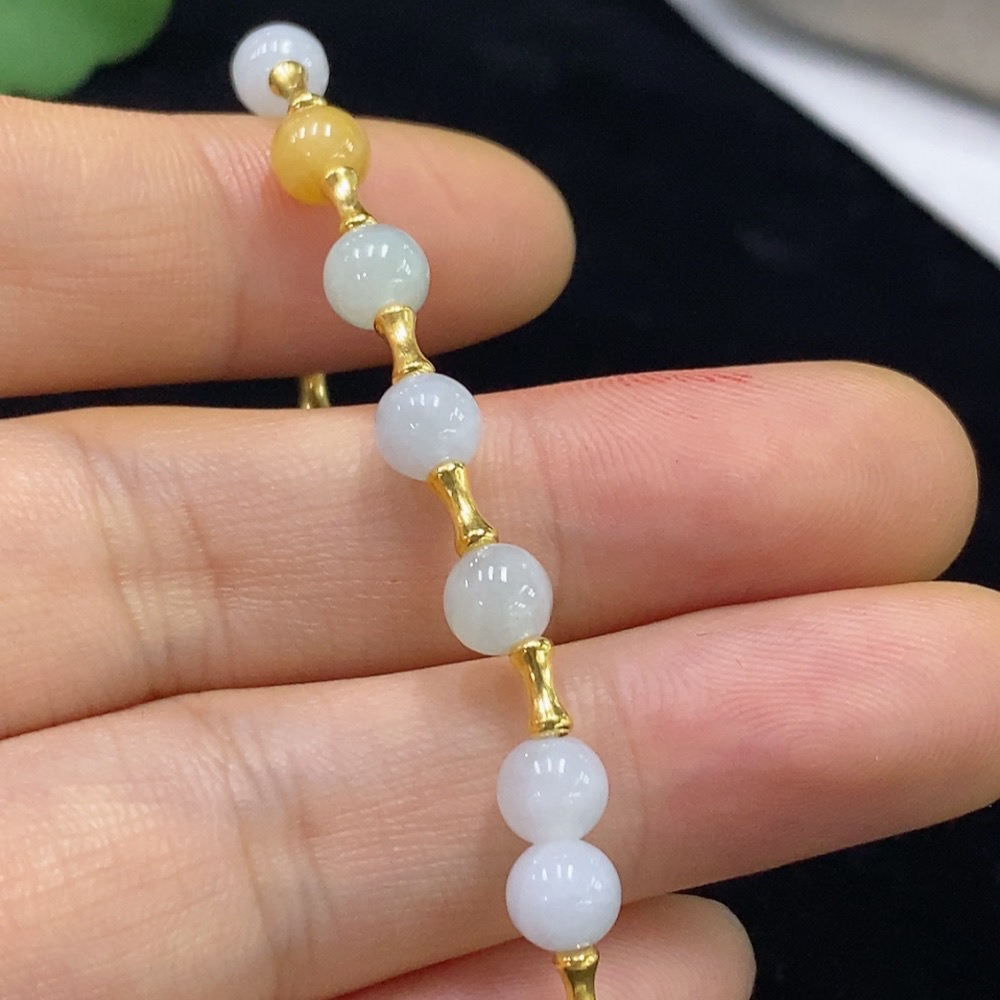 Jadeite Bracelet Approx. 5.4mm Beads Total Weight Approx. 5g 18k Color Origin Undetermined