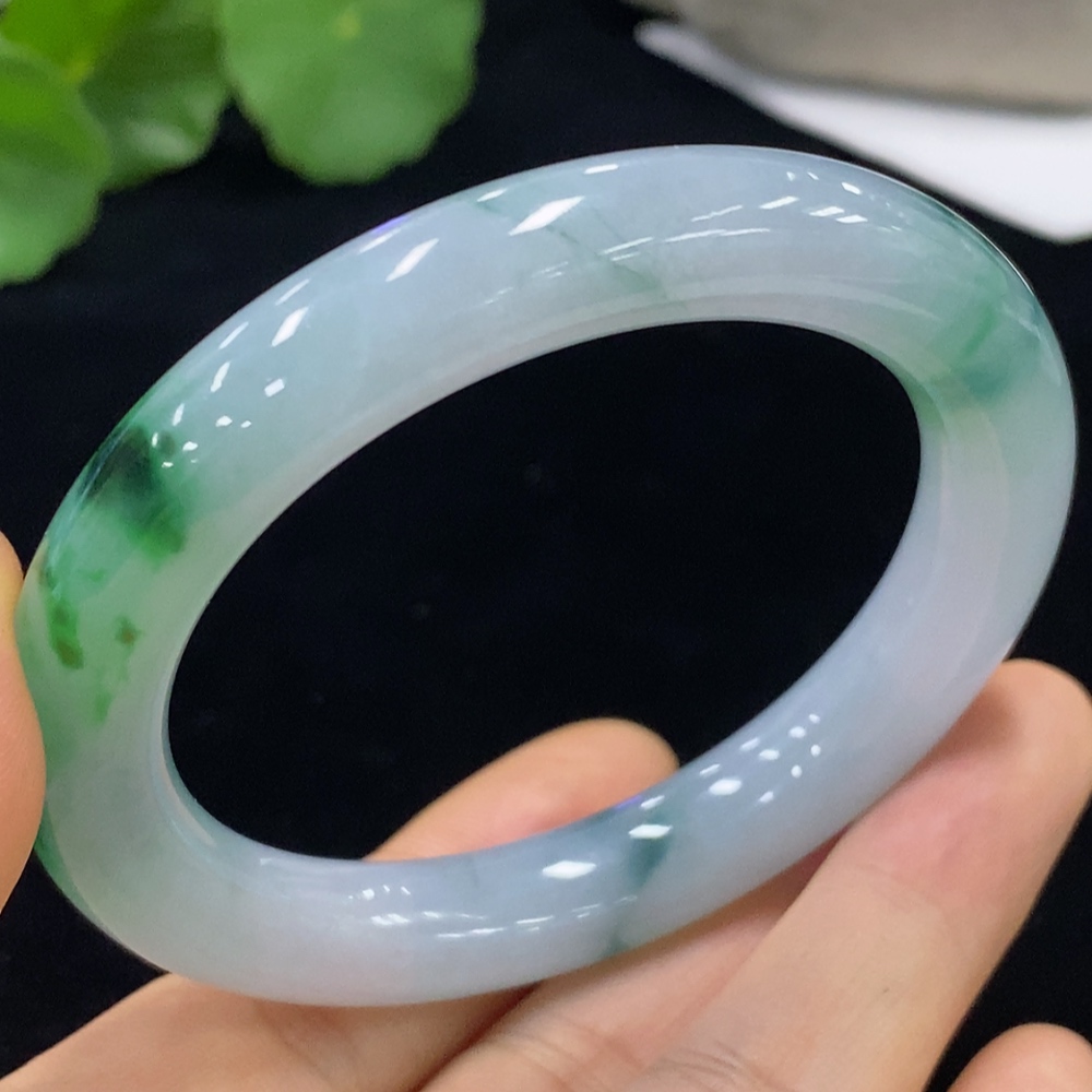 Jadeite Round Bangle with Other Mineral Components, Total Weight Approx. 50.93g, Size 52.4