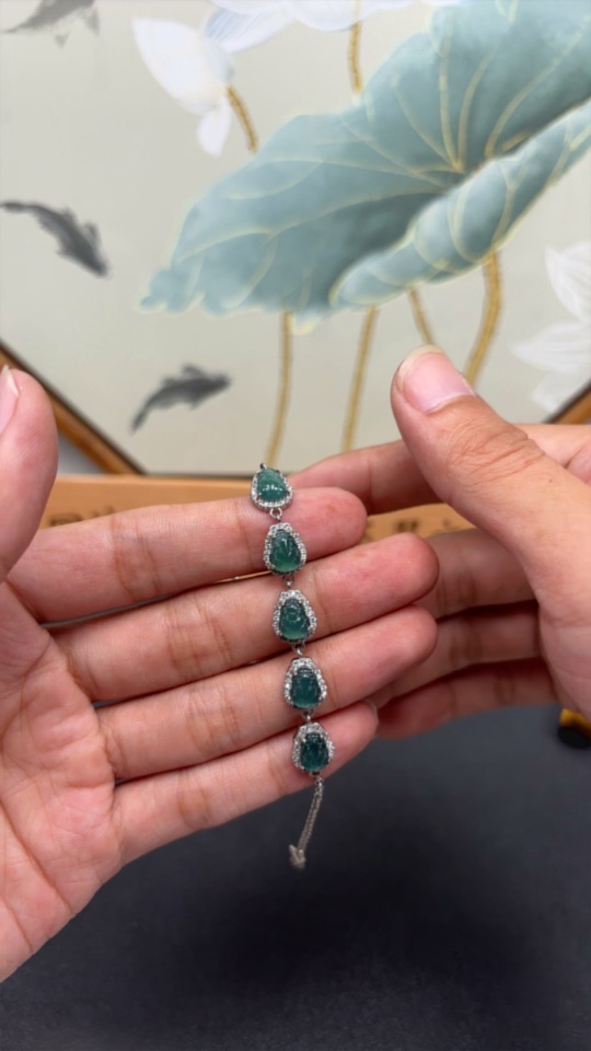 Jadeite Pixiu Inlay Bracelet Non-Gold Inlay Total Weight Approx.4.63g