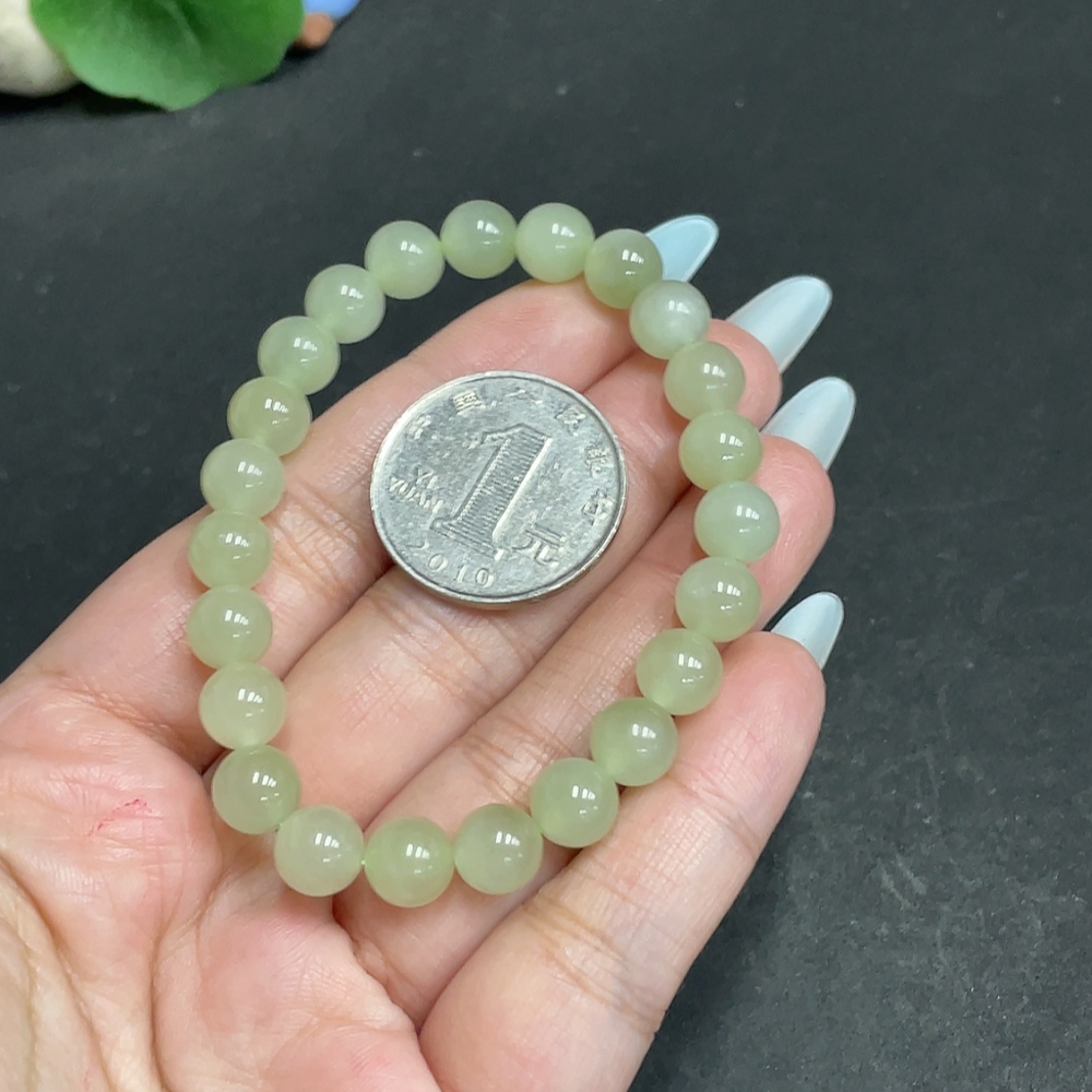 Hetian Jade Bracelet, Approx. 7.7 mm Beads, Total Weight Approx. 18.2g