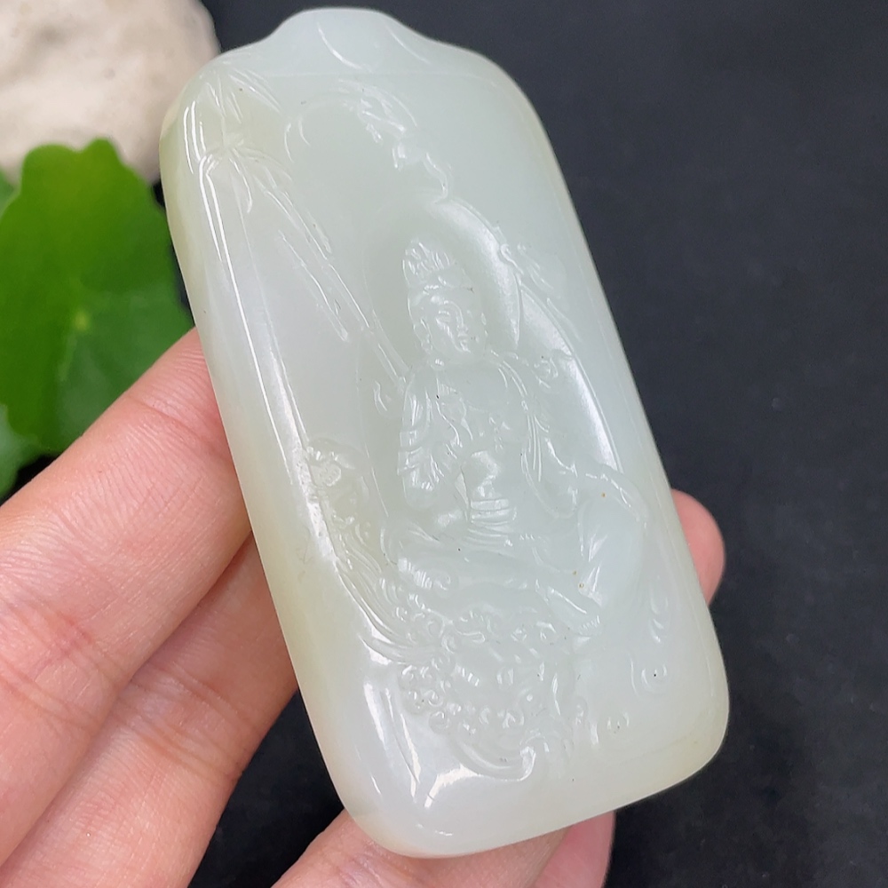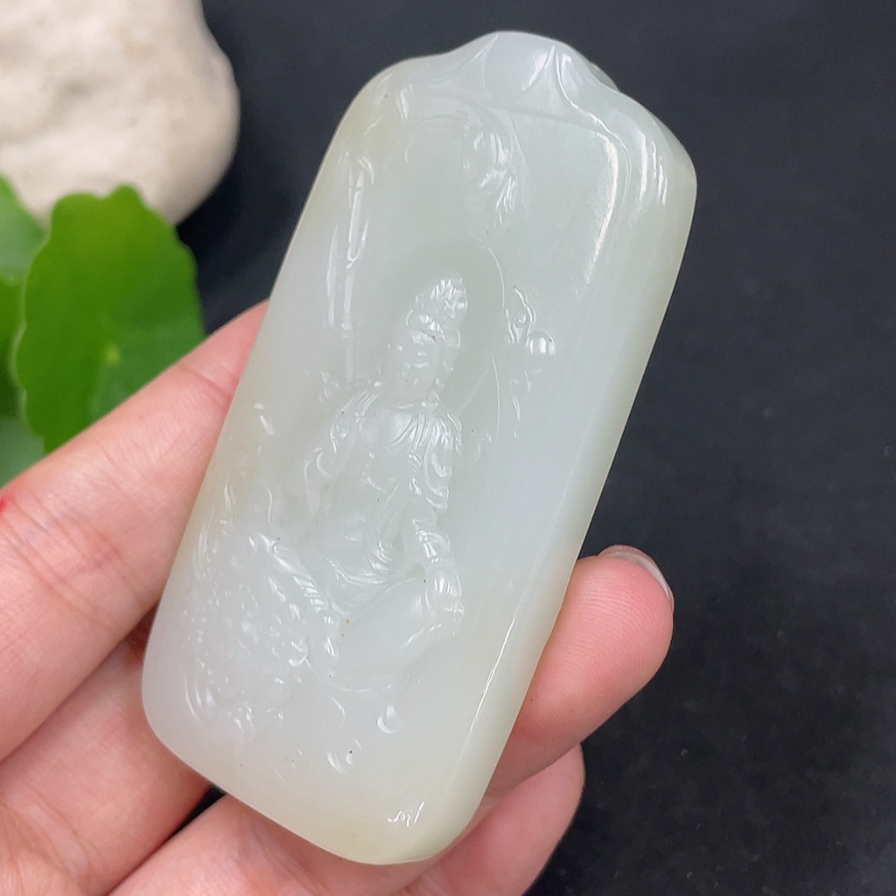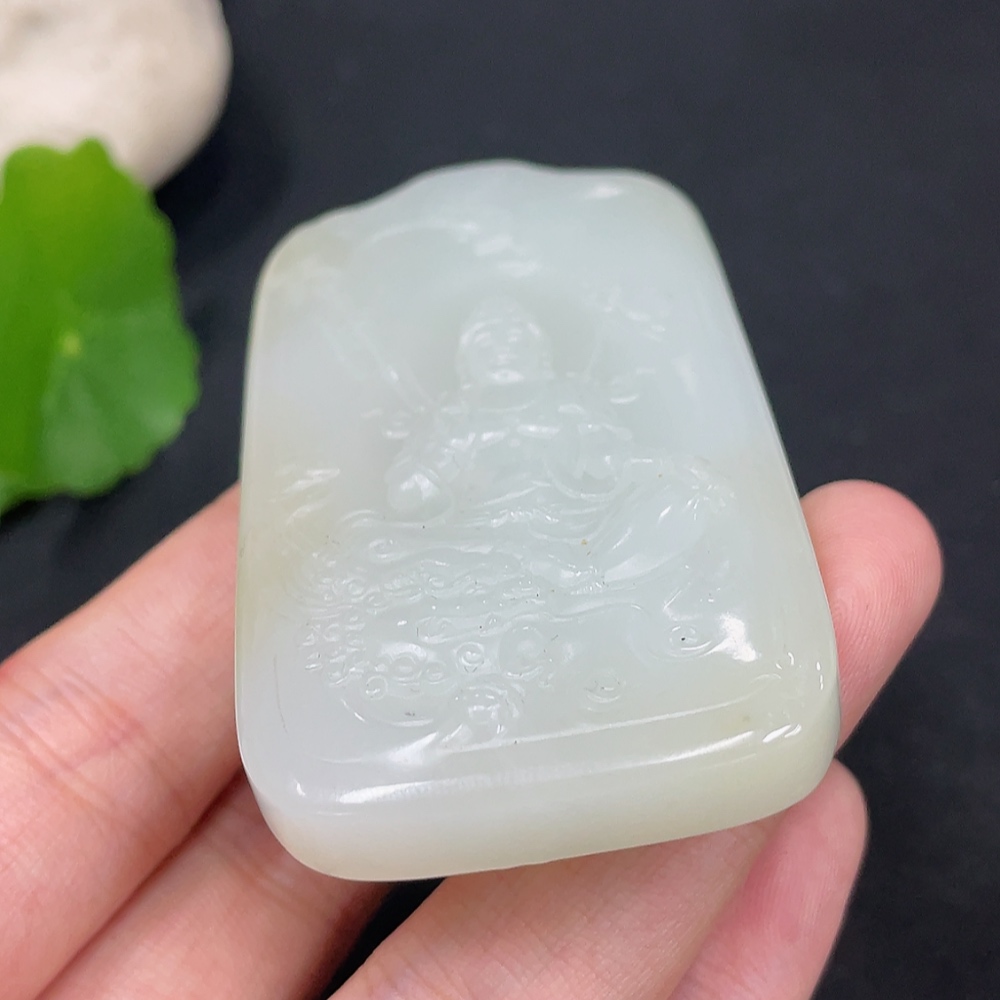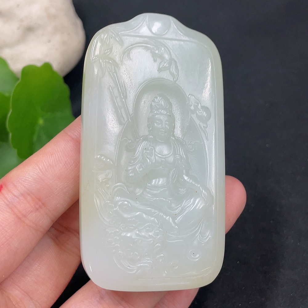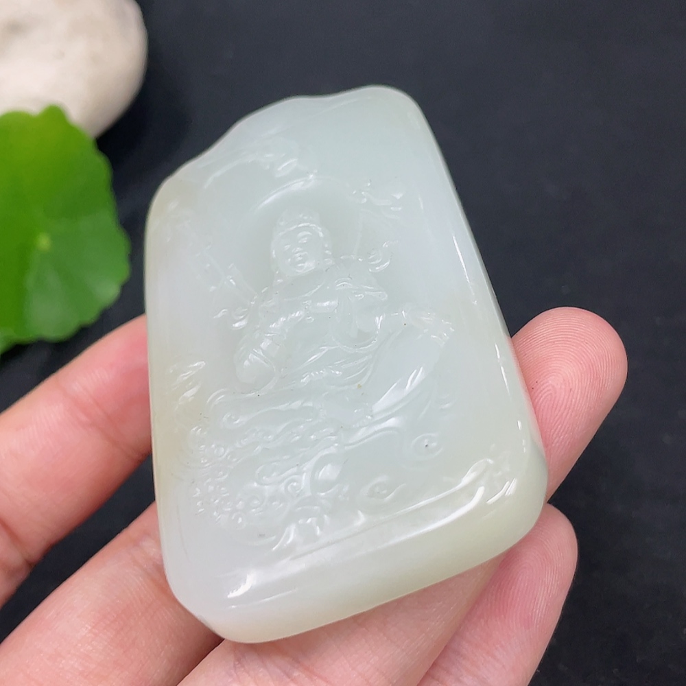 Hetian Jade Pendant Manjusri Bodhisattva Total weight about 65.9g Contains other mineral components