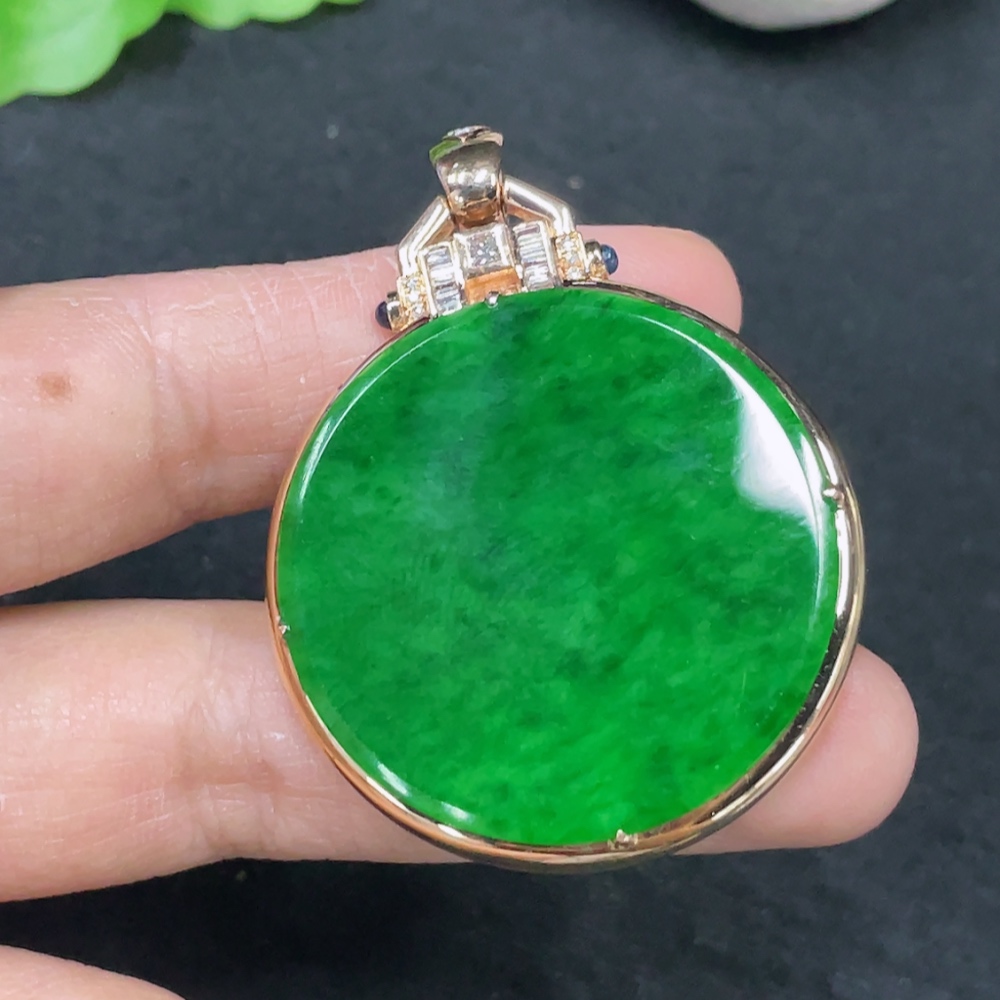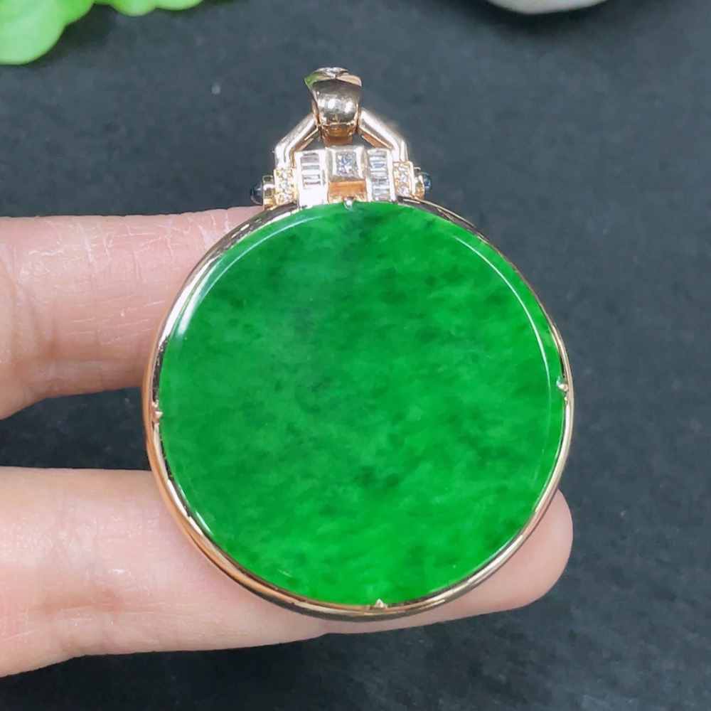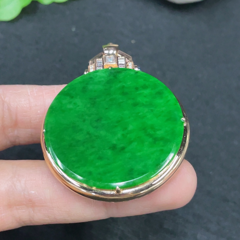 Jadeite Plain Pendant Mounted Pendant 18k with Diamond Accents Total Weight Approx. 14.42g