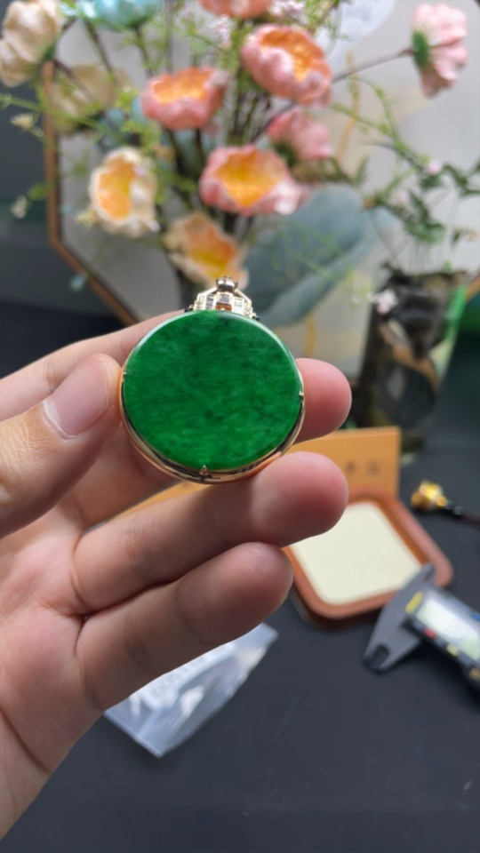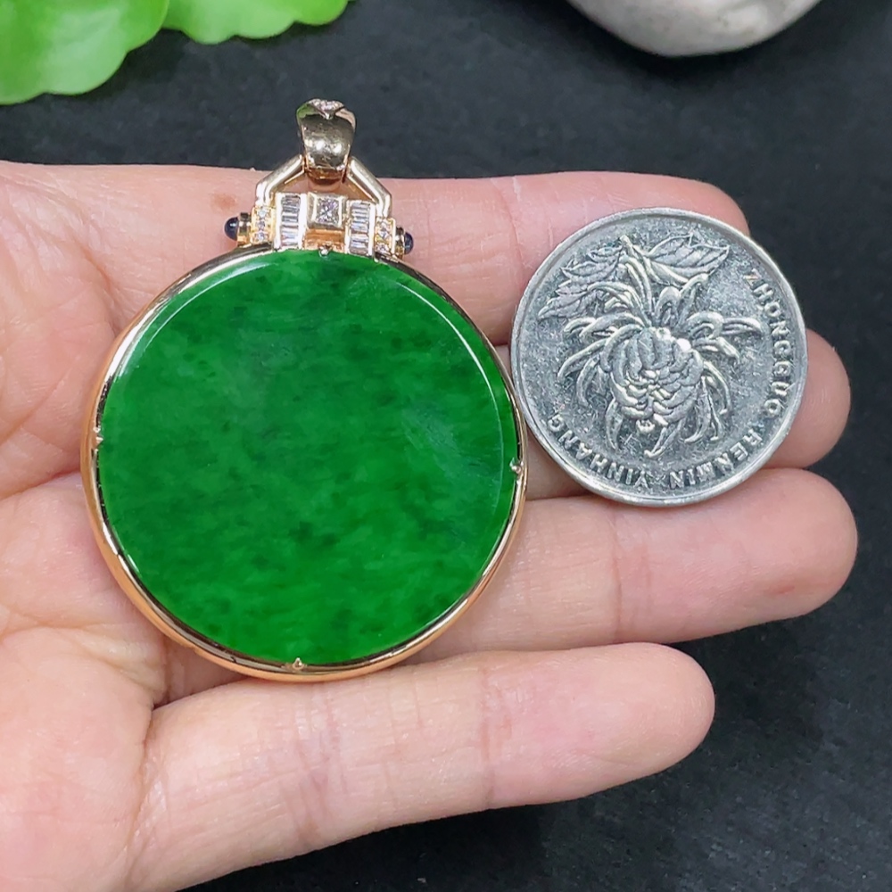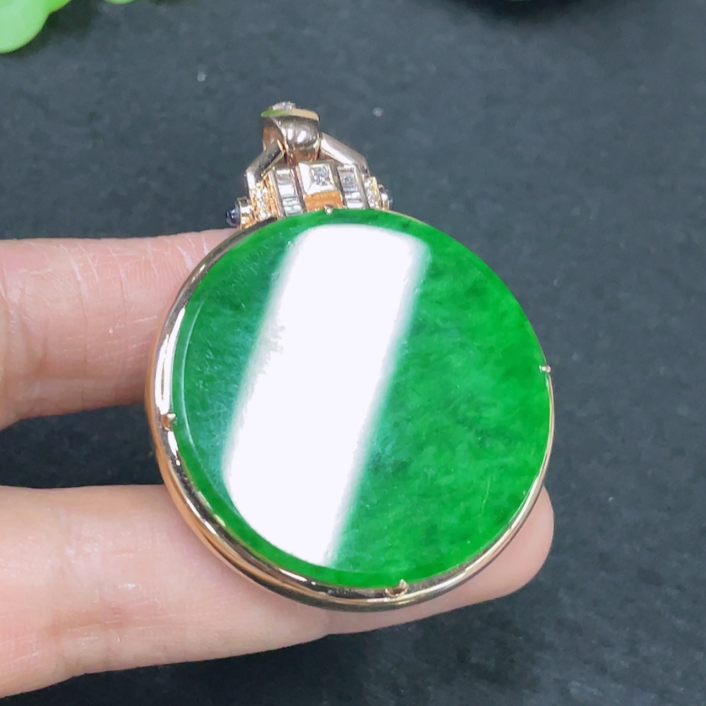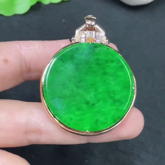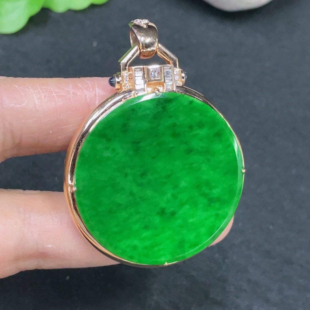 Jadeite Plain Pendant Mounted Pendant 18k with Diamond Accents Total Weight Approx. 14.42g