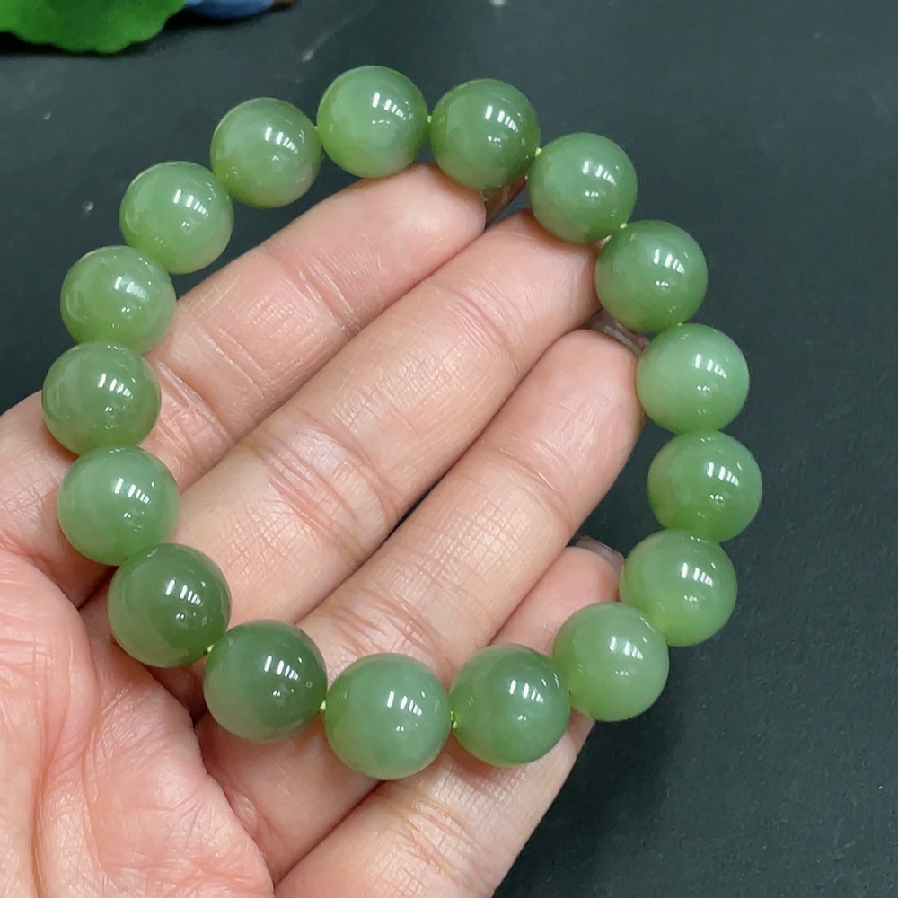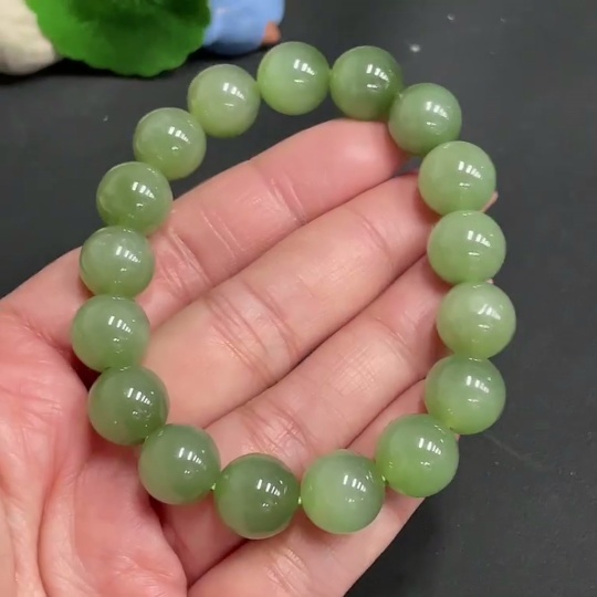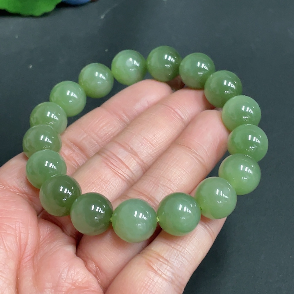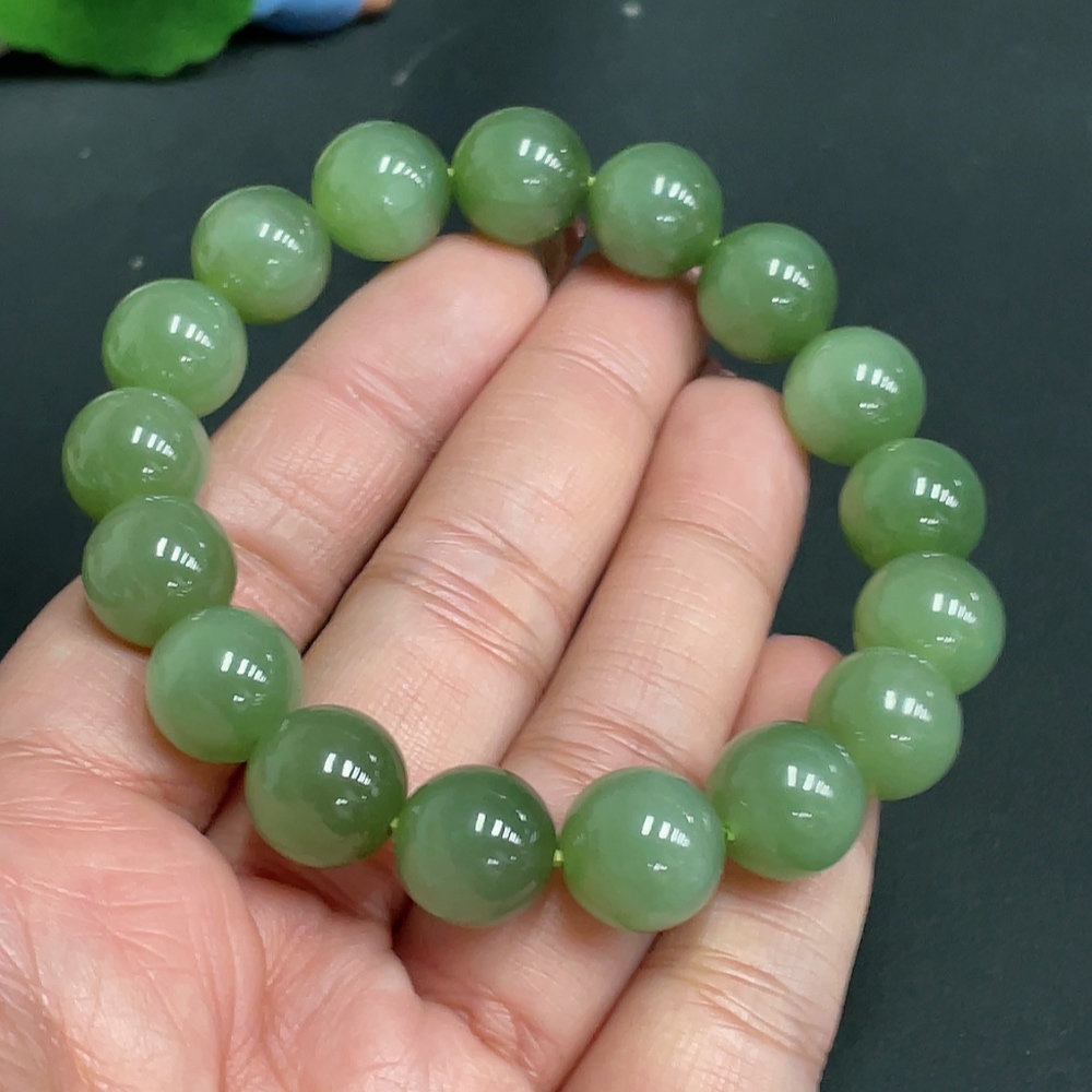 Hetian Jade Bracelet Approx. 11.9mm Beads Total Weight Approx. 46.5g