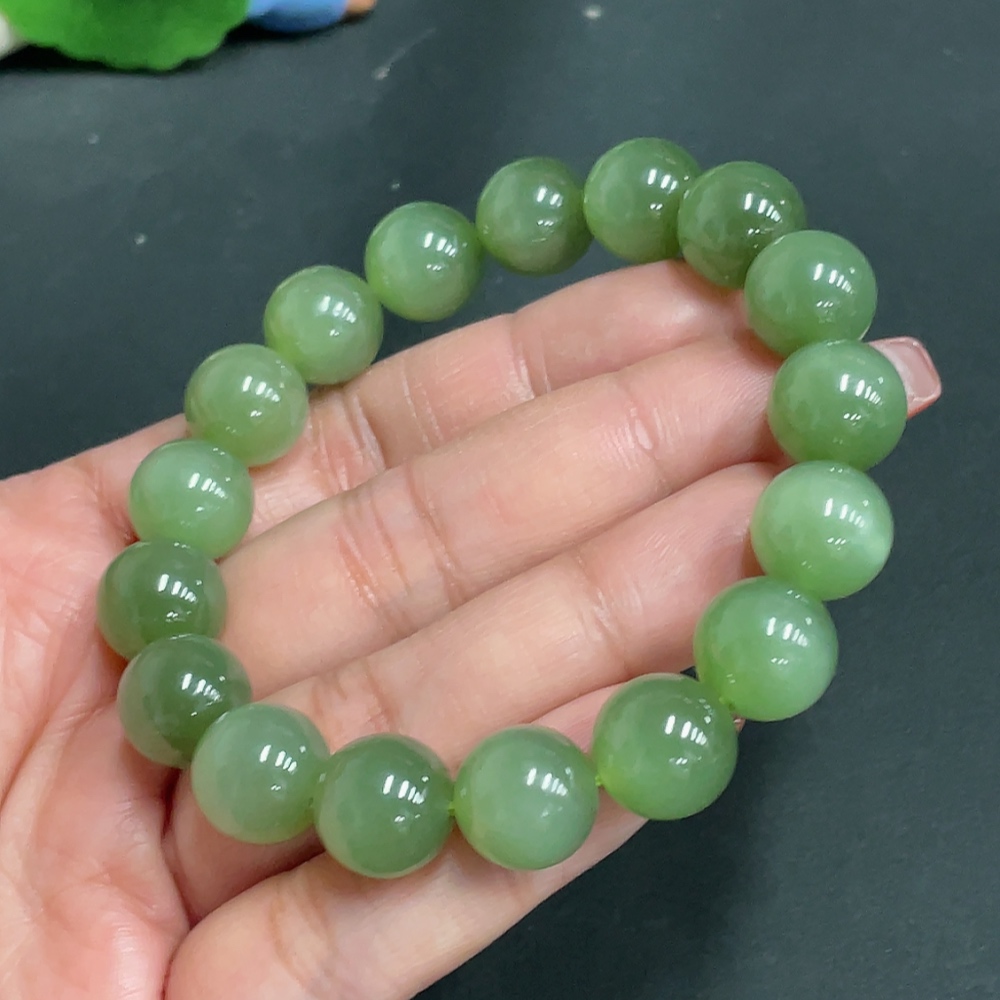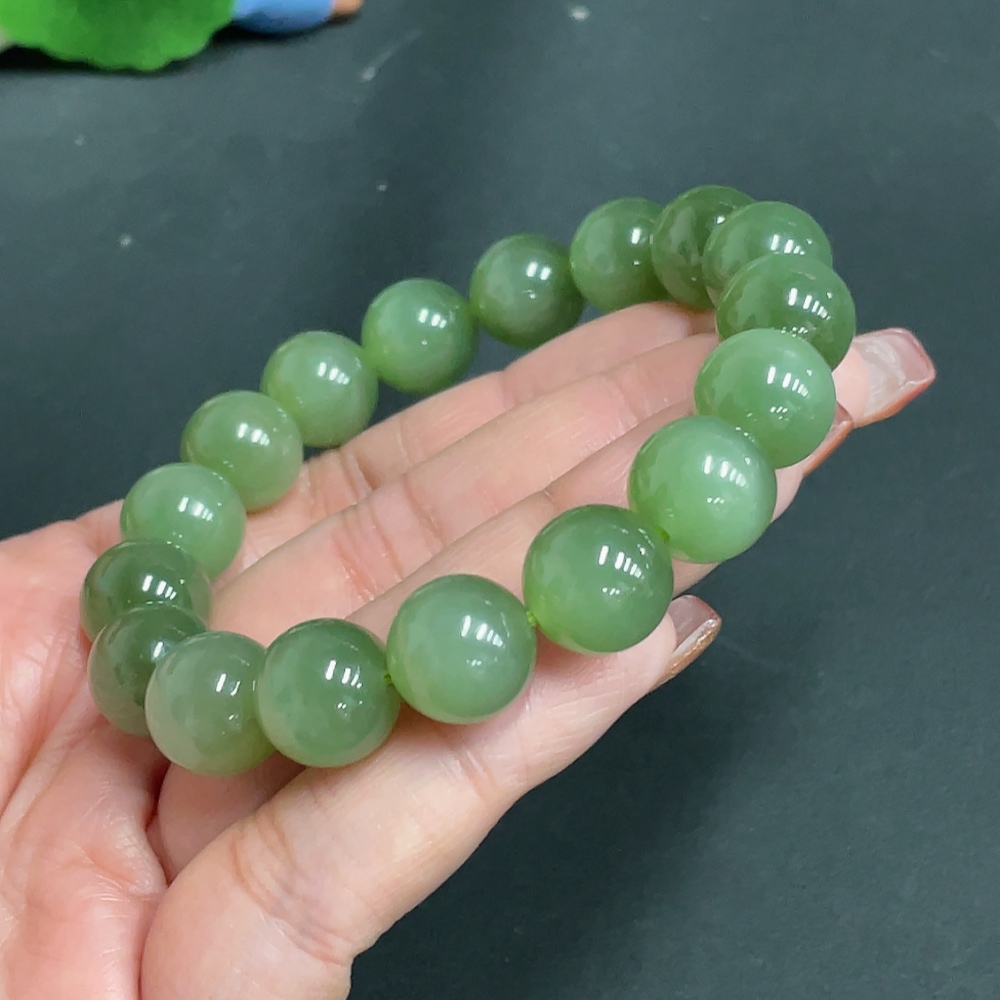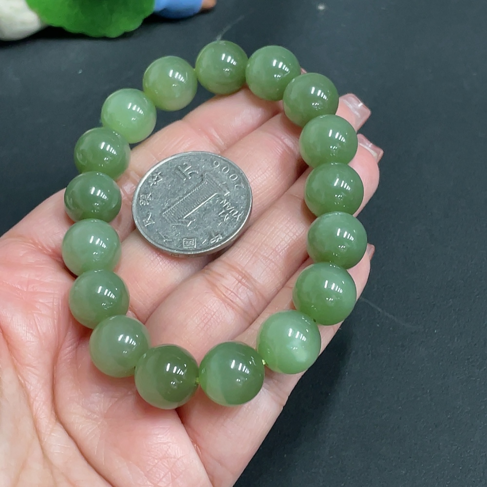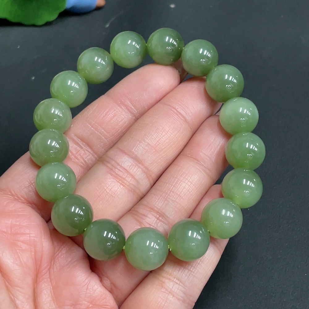 Hetian Jade Bracelet Approx. 11.9mm Beads Total Weight Approx. 46.5g