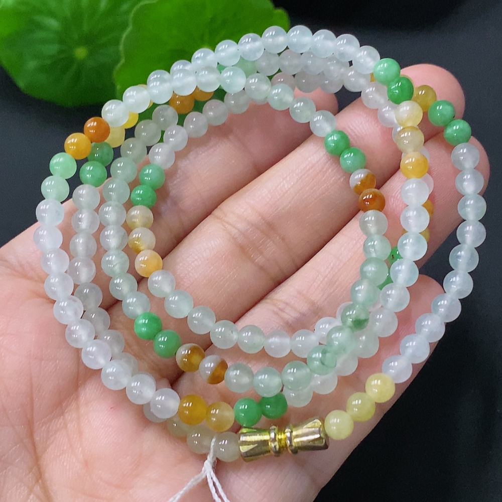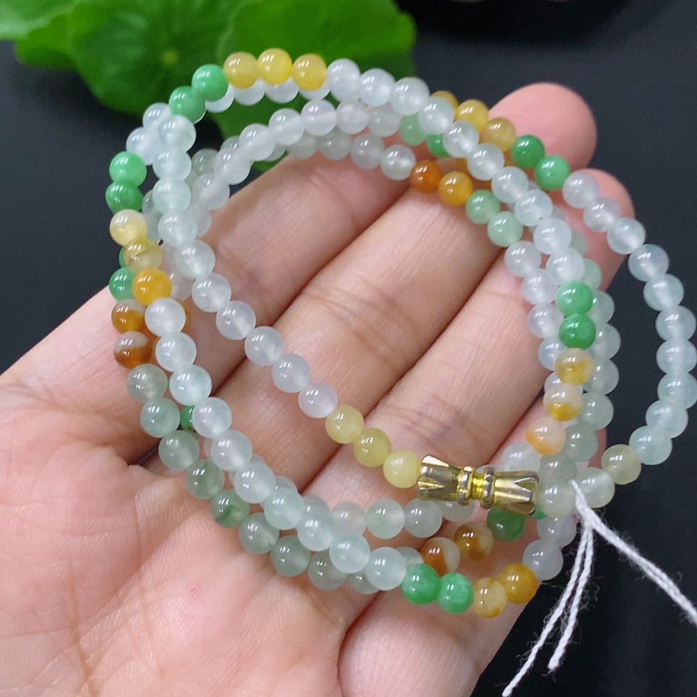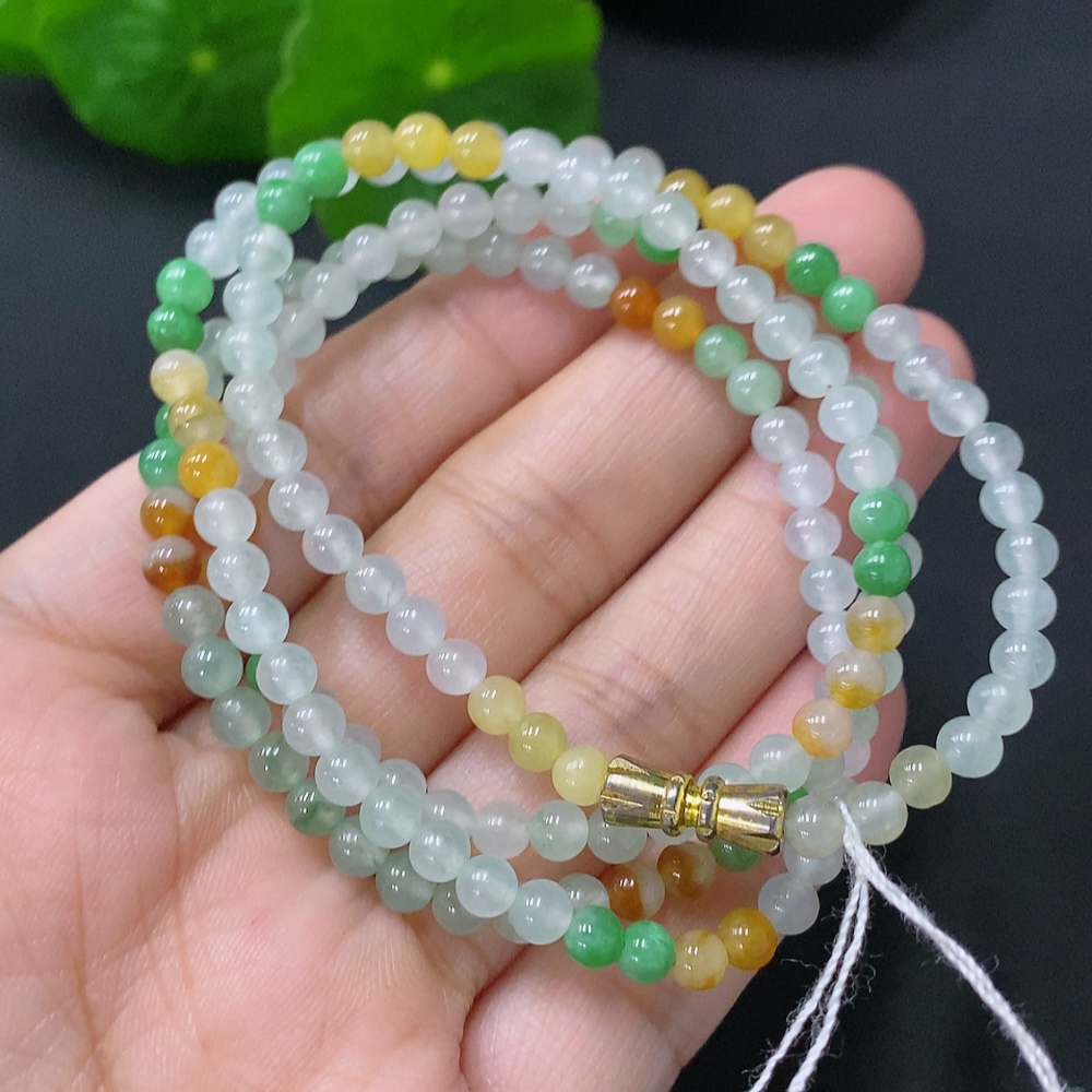 Jadeite bead necklace approx. 4mm non-gold total weight approx. 18.6g color origin undetermined