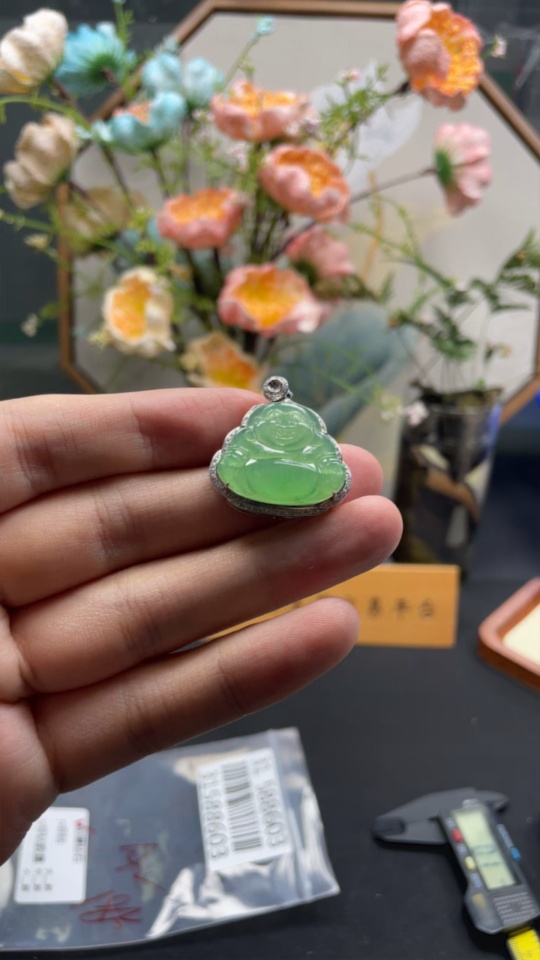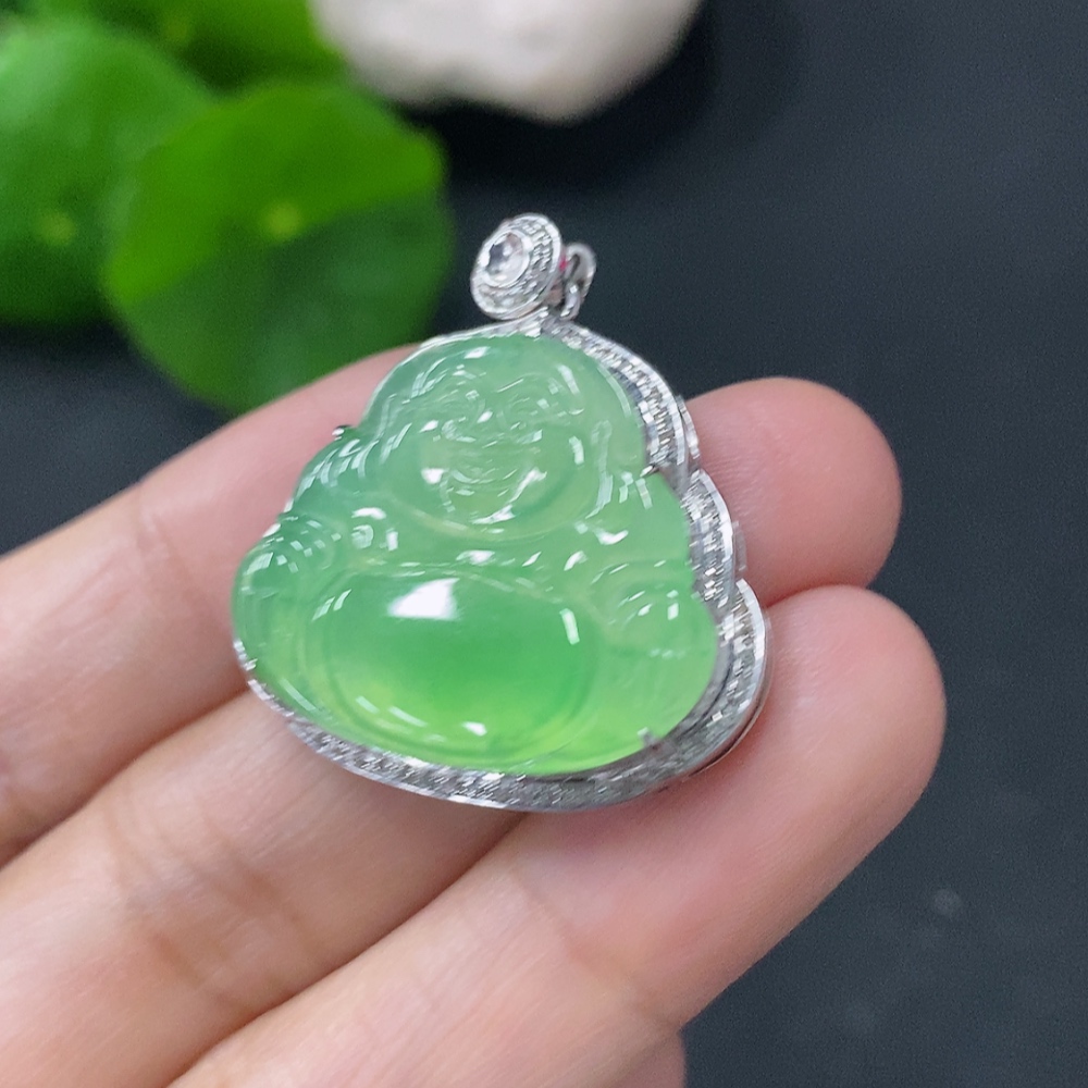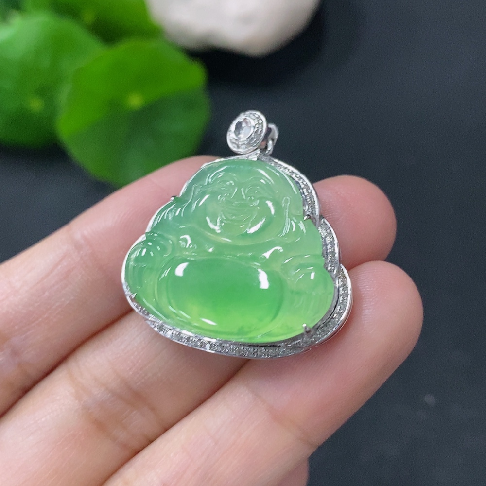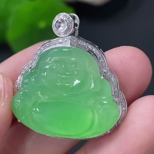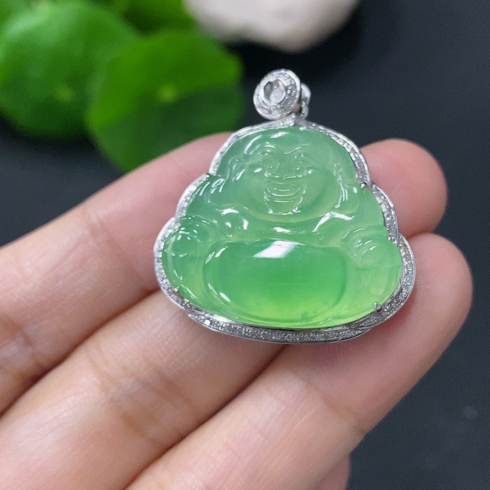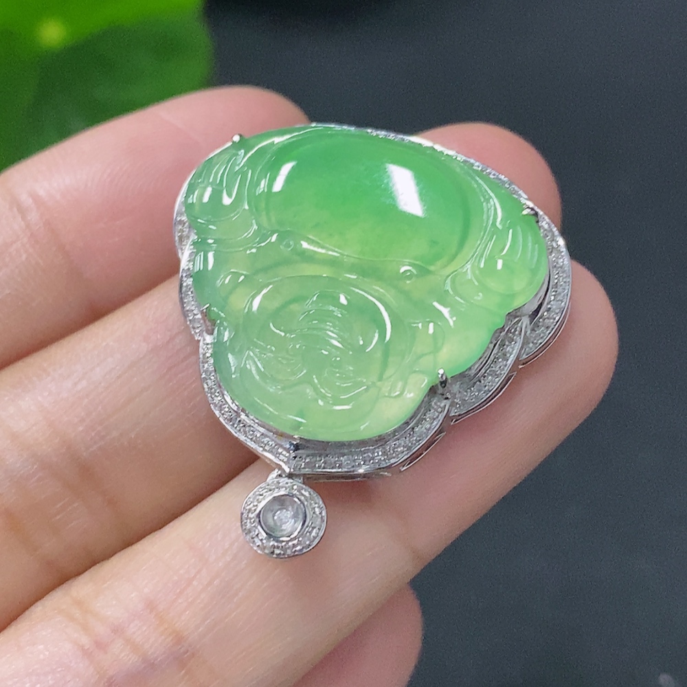 Jadeite Buddha Pendant with 18k Gold and Diamond Accents, Total Weight Approximately 5.25g
