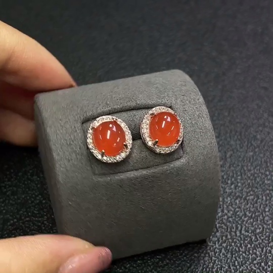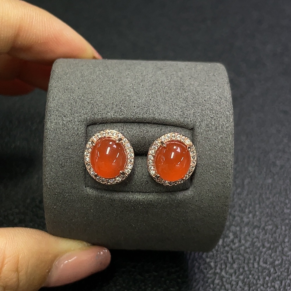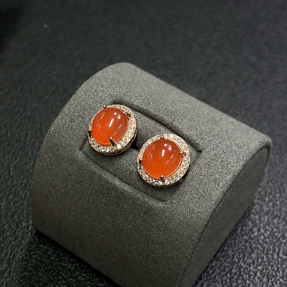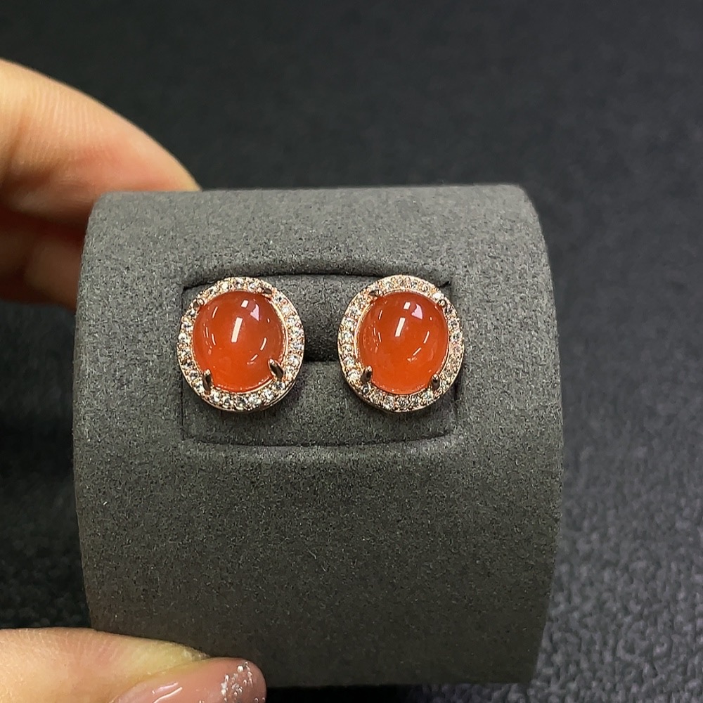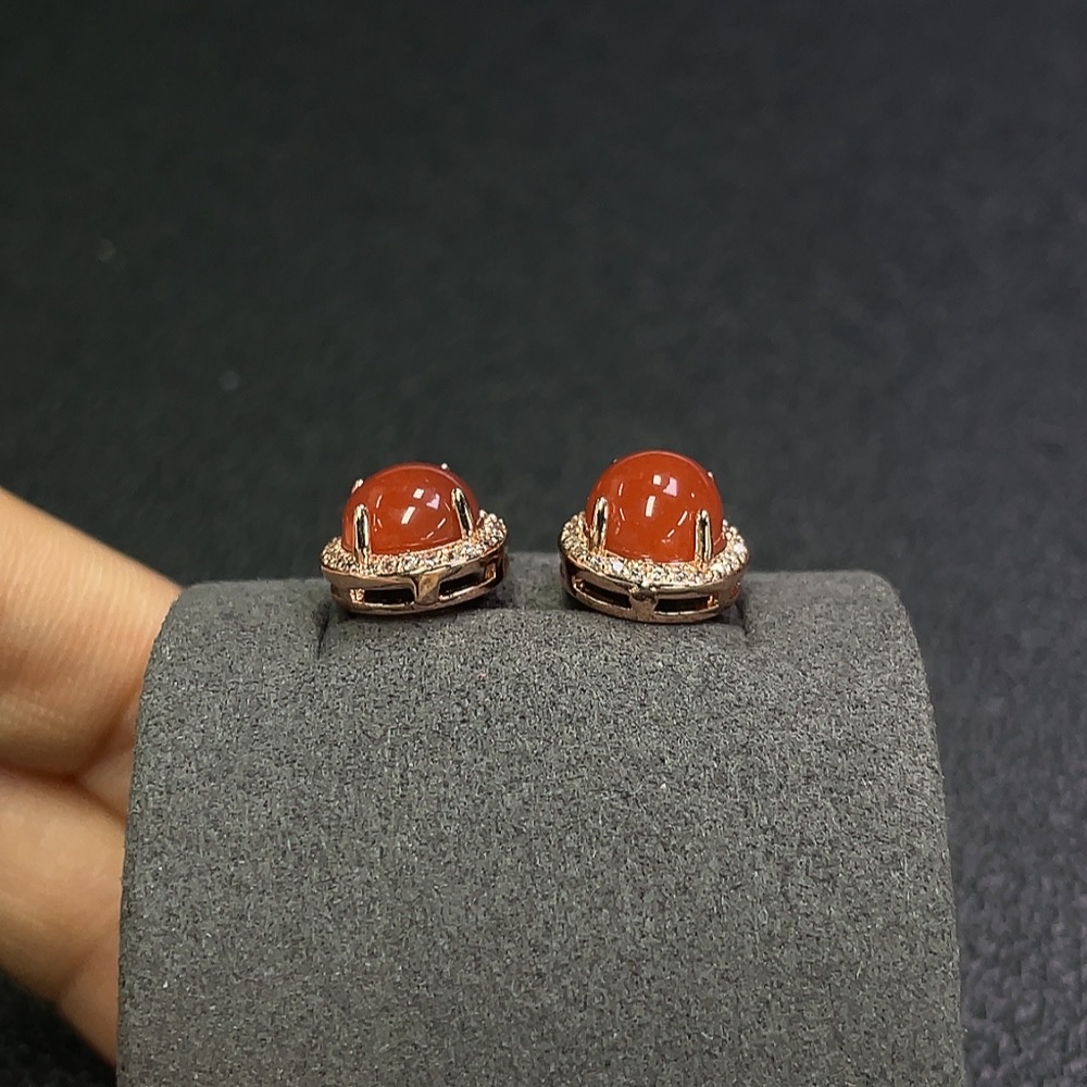 Red Agate Inlaid Earrings (Non-Gold Inlaid), Total Weight Approx. 3.18g