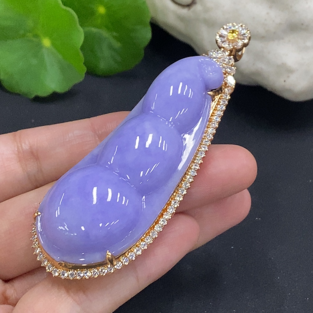 Jadeite Fu Dou Pendant Set in 18K Gold Total Weight Approx. 40.9g (With Diamond Accents)