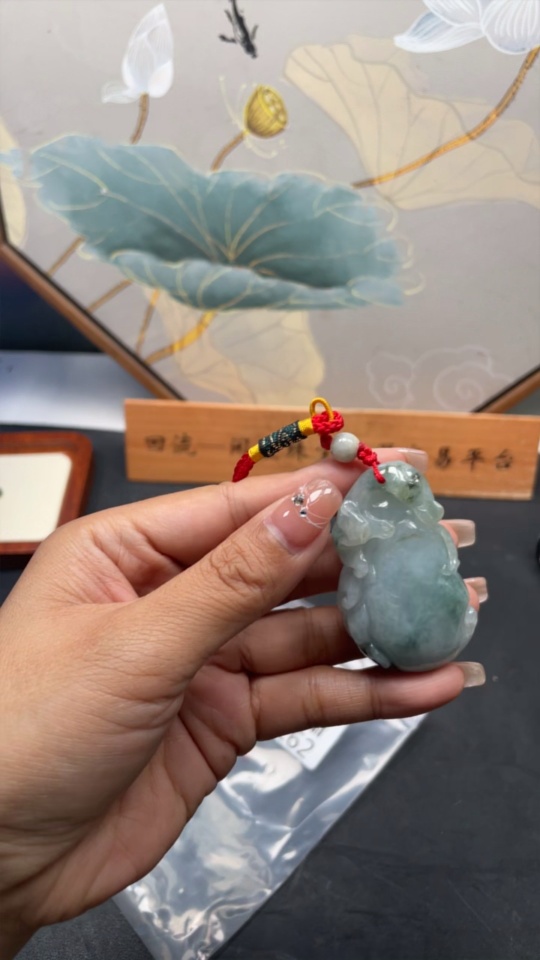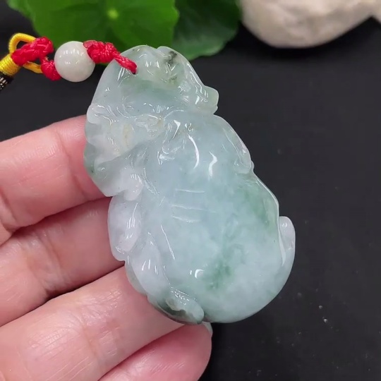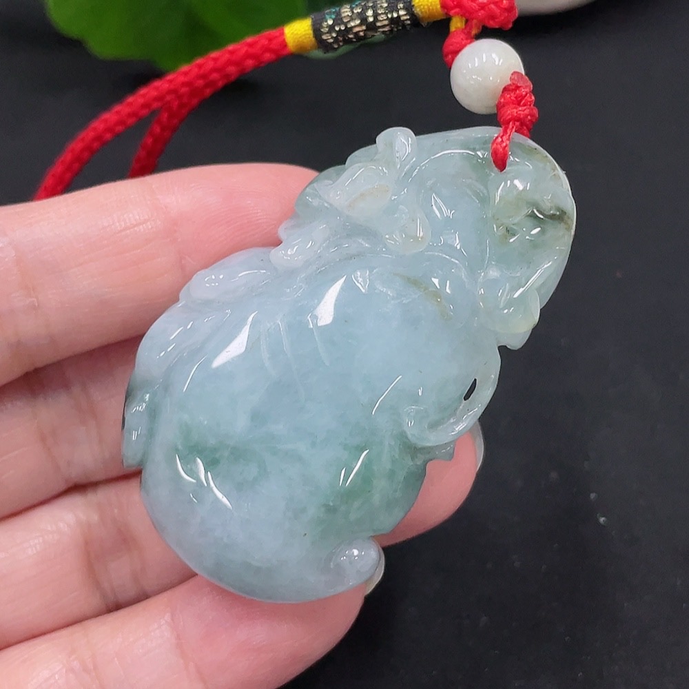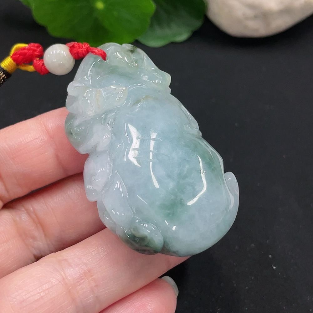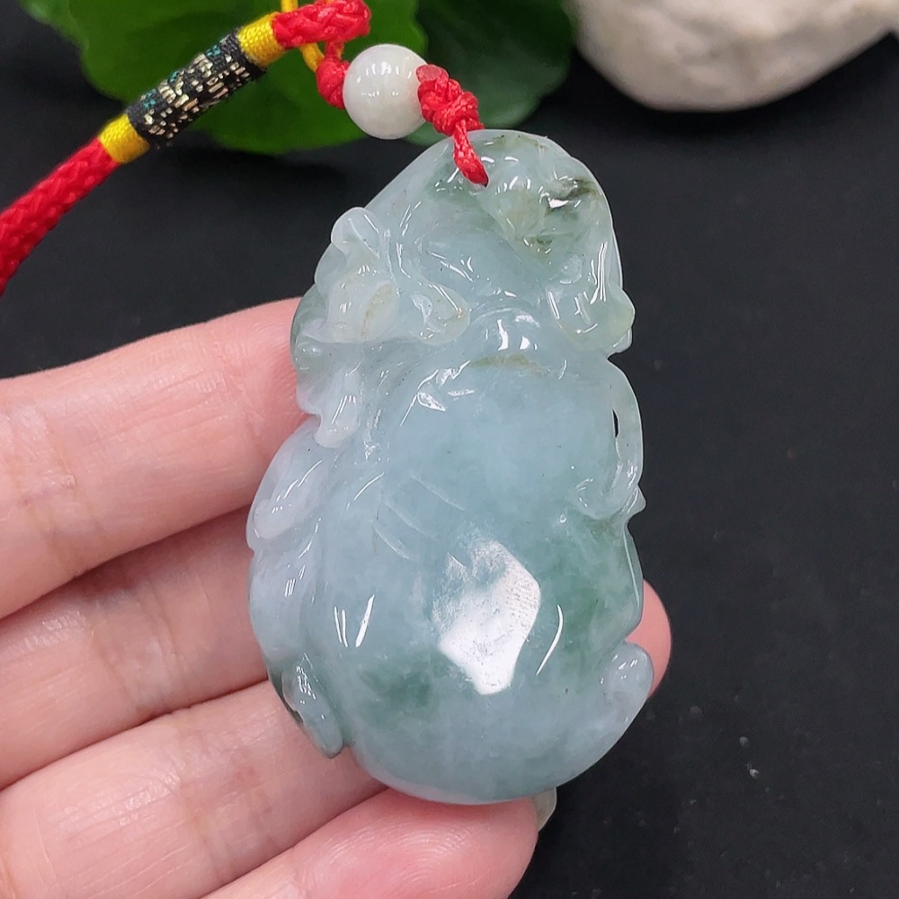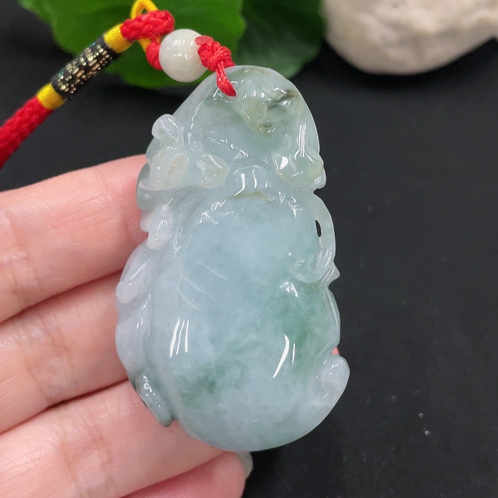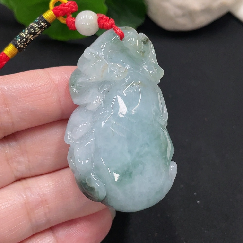 Jadeite Longevity Pendant with Blessing, Total Weight Approx. 46.9g (Including Rope Weight)