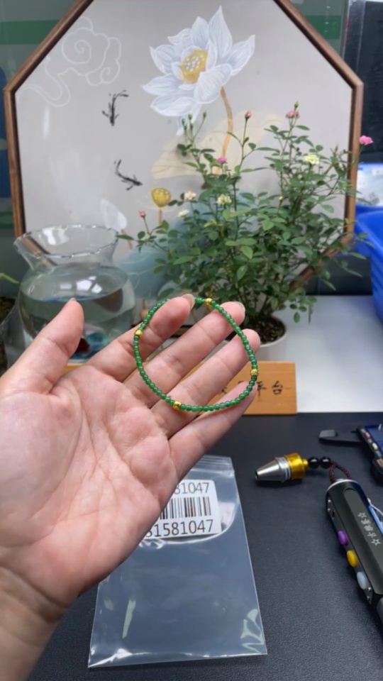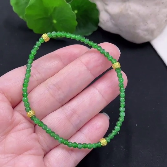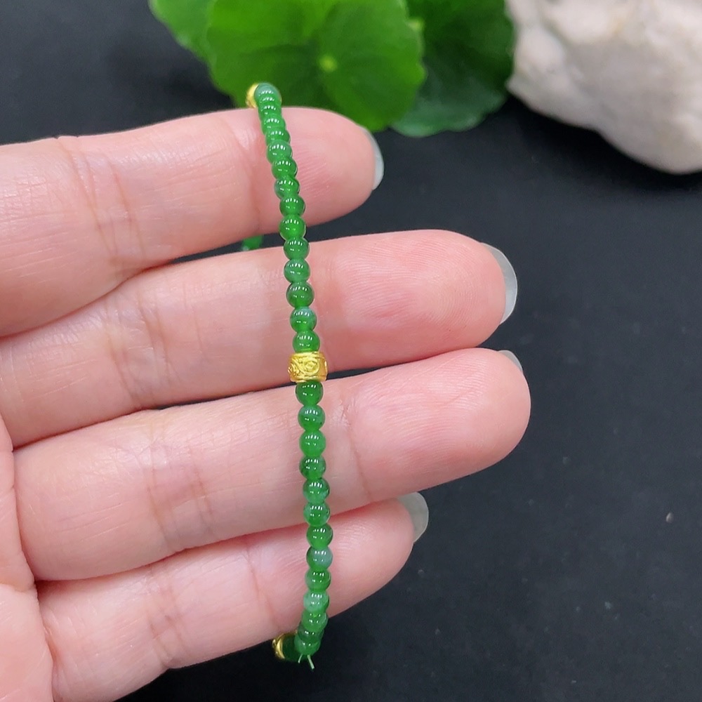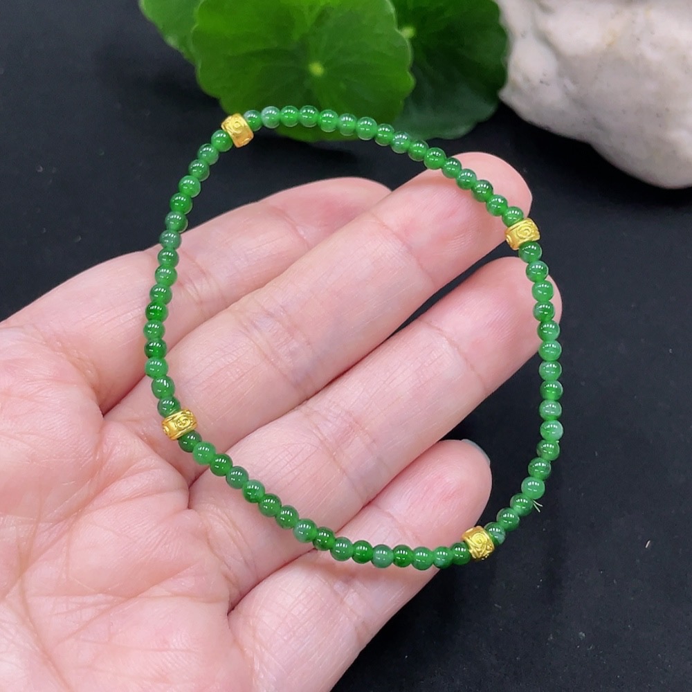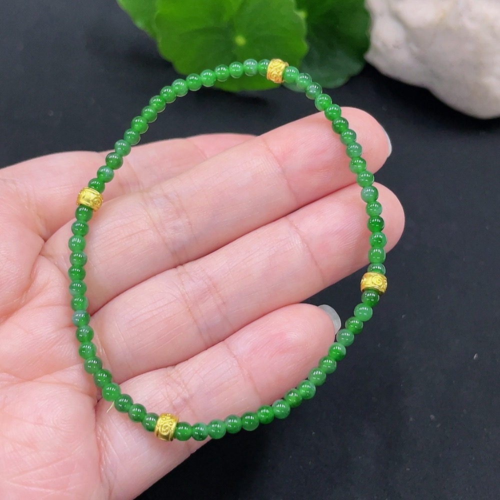 Jadeite Bracelet Approx. 3mm Beads Total Weight Approx. 3.61g Non-gold Inlaid