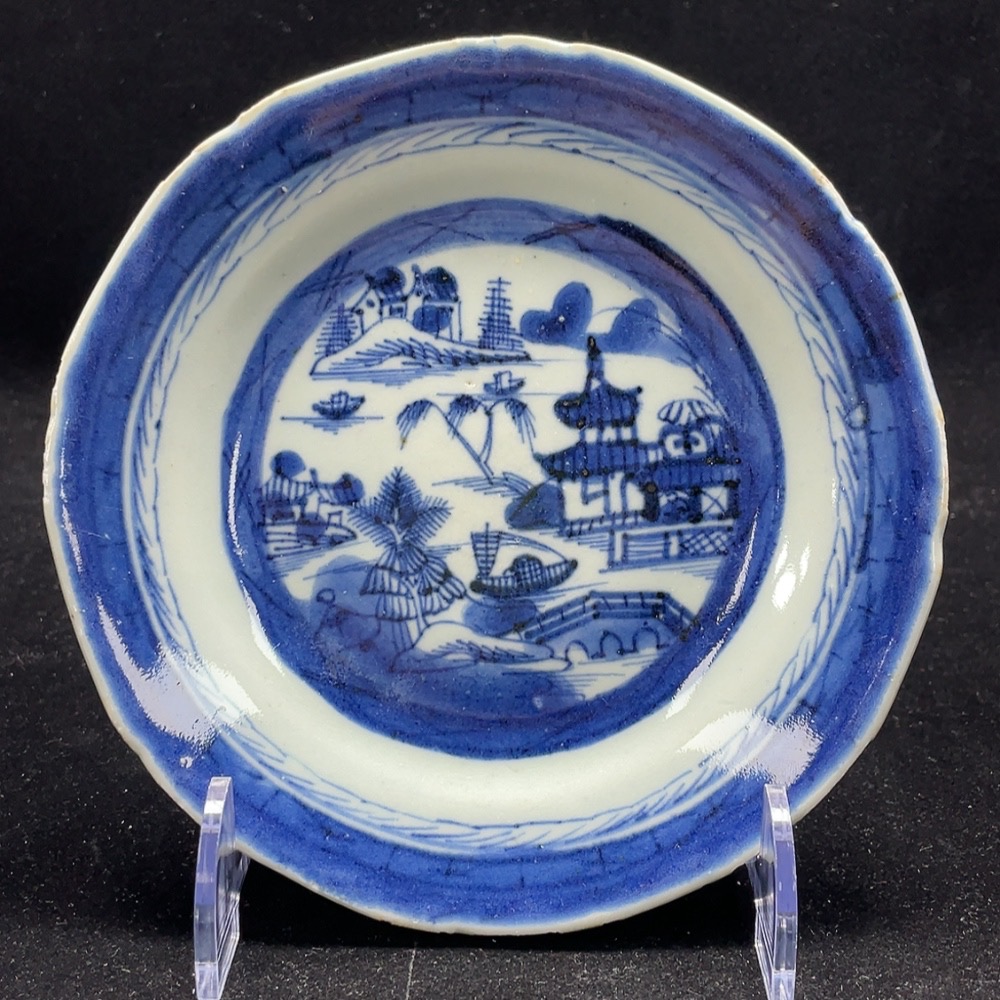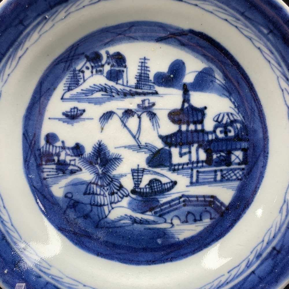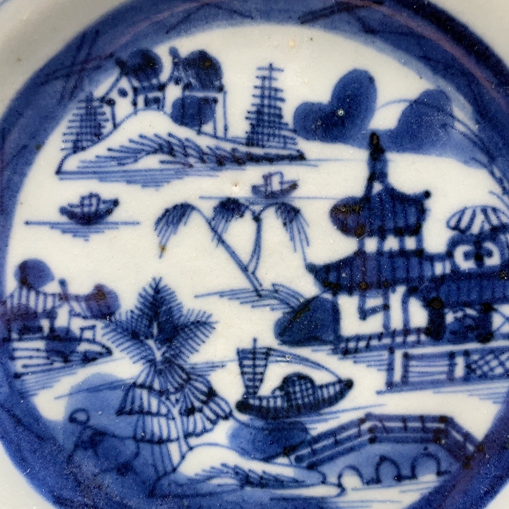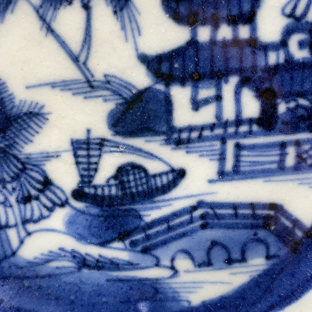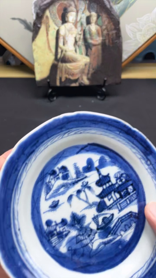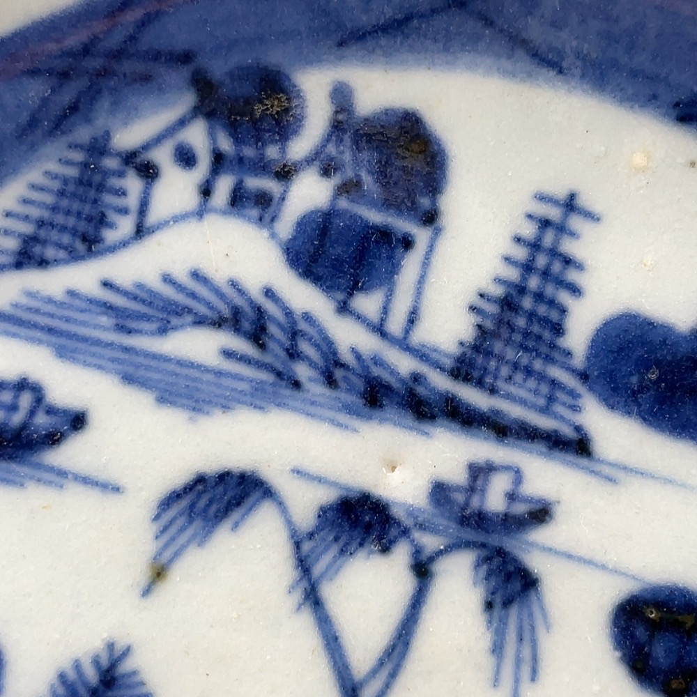 Porcelain, intact, mid-Qing blue-and-white pavilion and tower plate, size as per actual item
