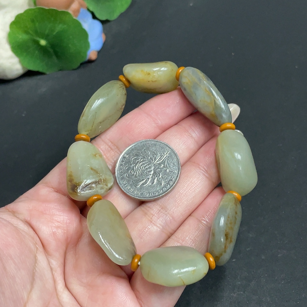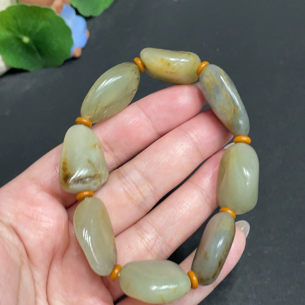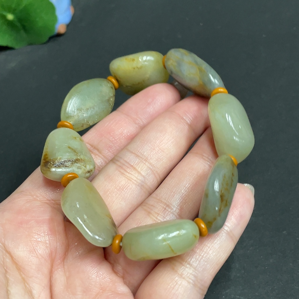 Hetian Jade Bracelet with Other Mineral Components, Undetermined Skin Color Origin, Total Weight Approx. 58.3g