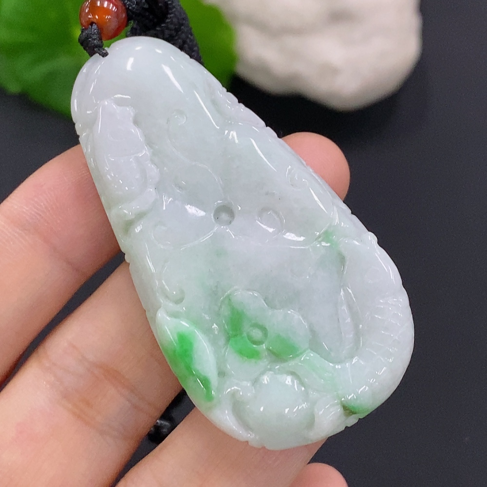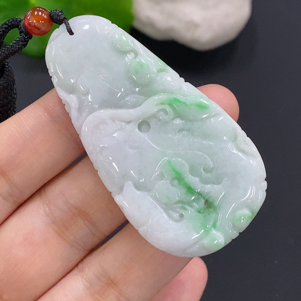 Jadeite Auspicious Fish Pendant, total weight including rope approx. 32.5g