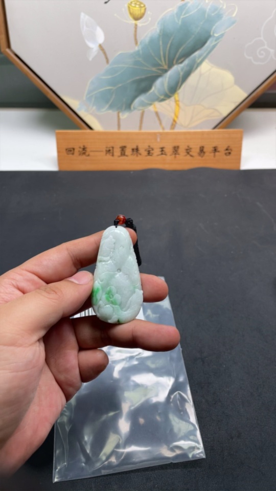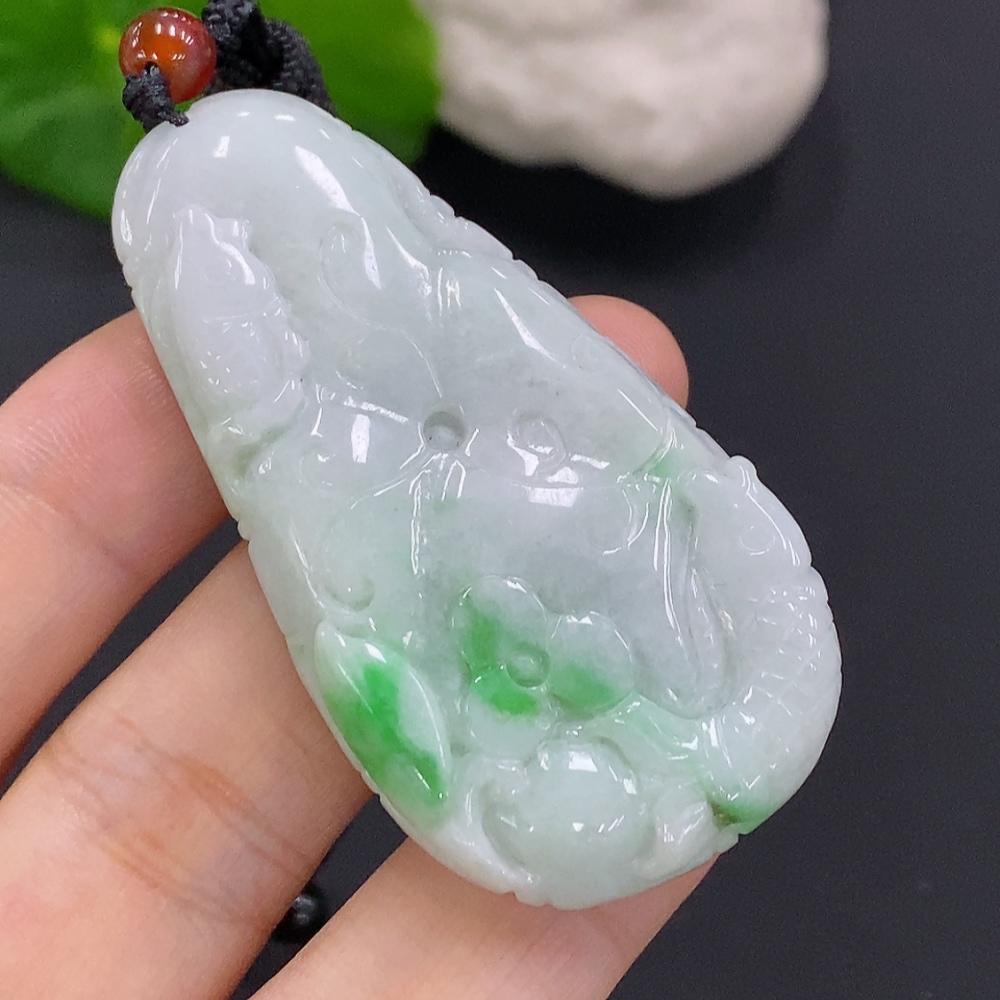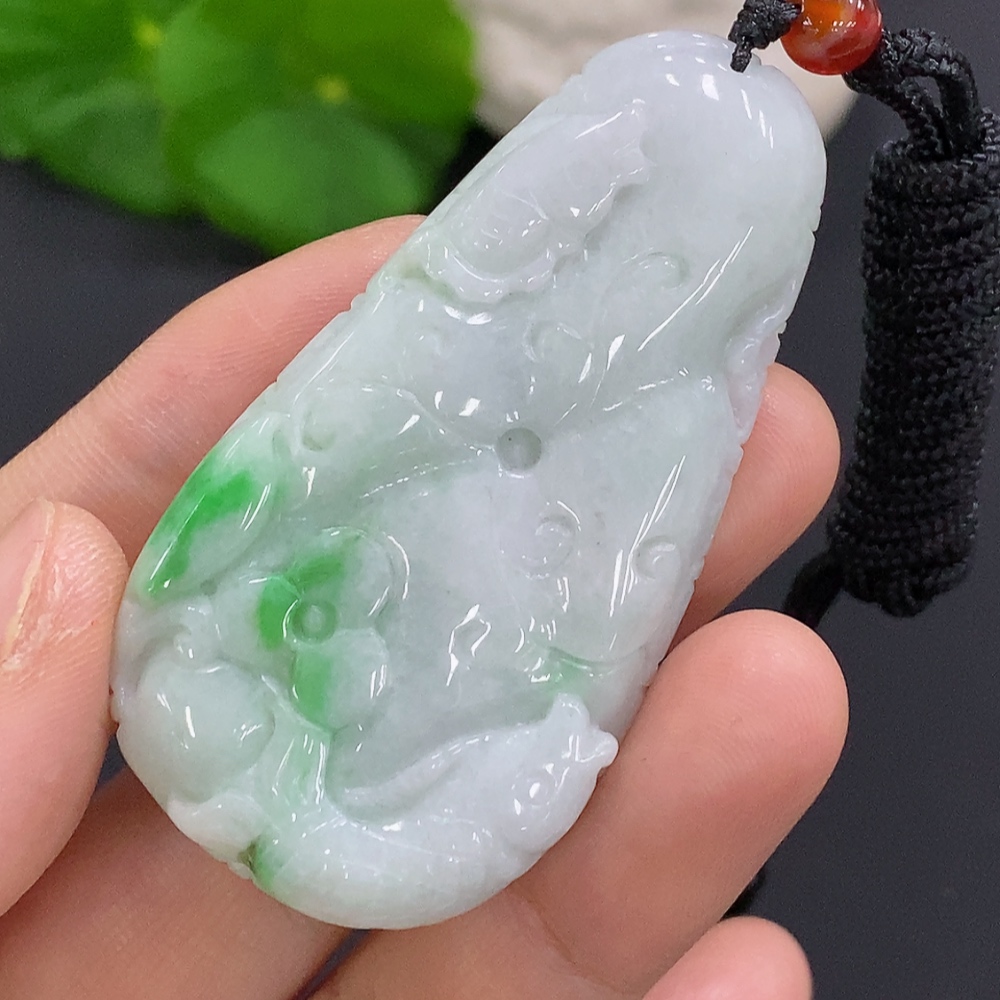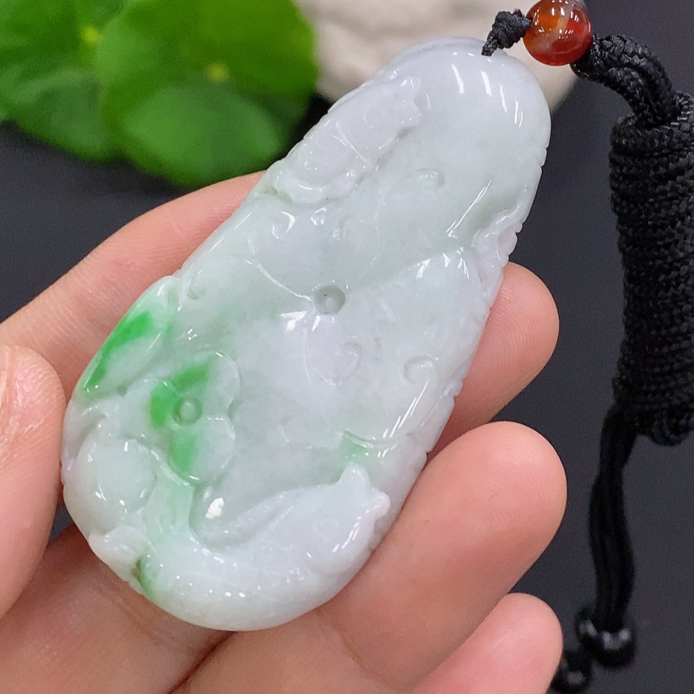 Jadeite Auspicious Fish Pendant, total weight including rope approx. 32.5g
