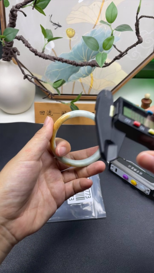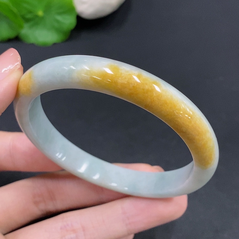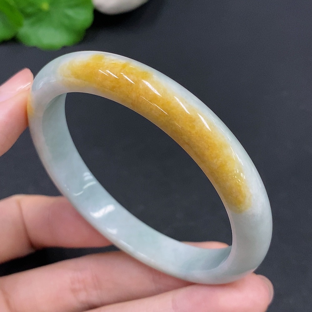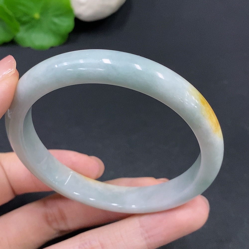 Jadeite Round Bracelet Total Weight About 37g Size 56.5 Color Origin Undetermined