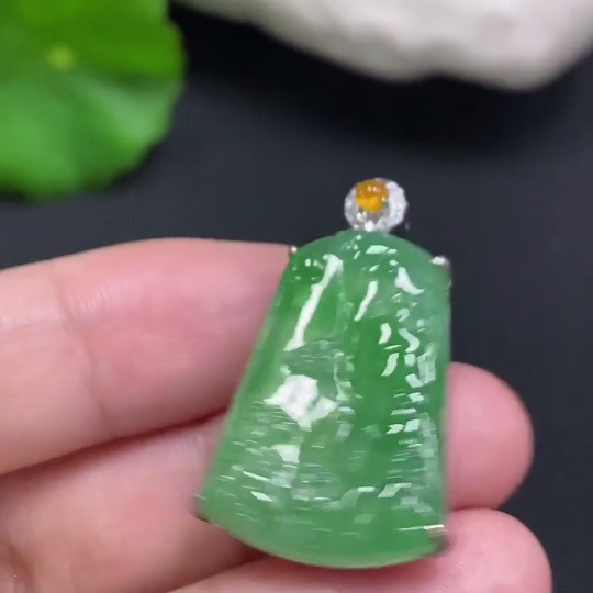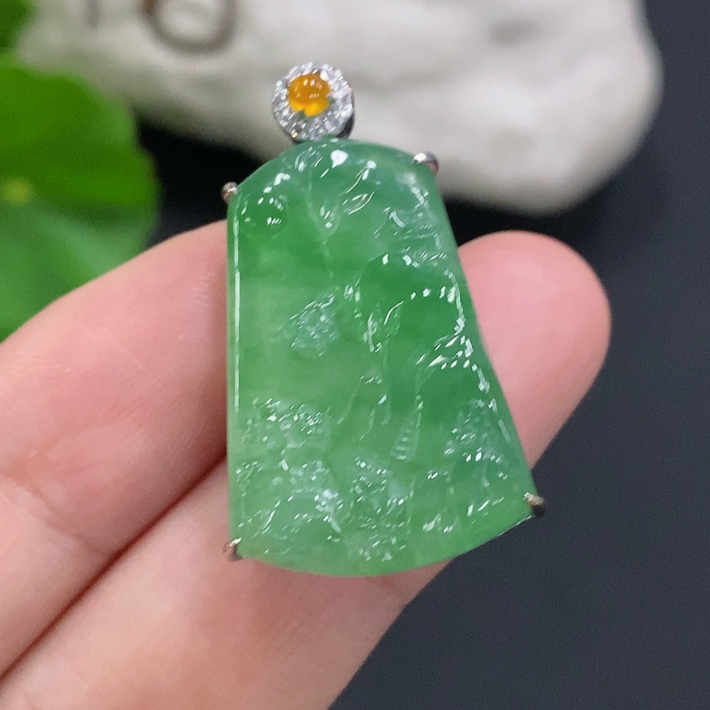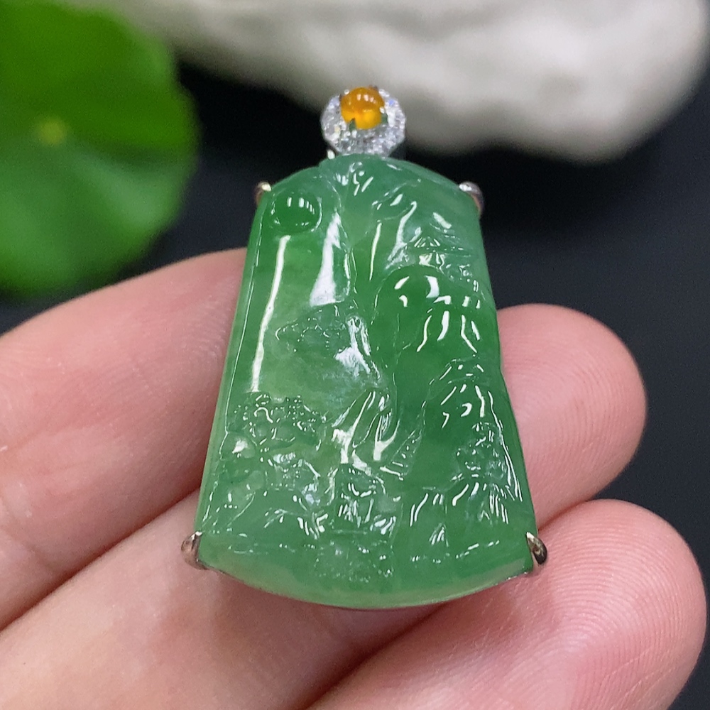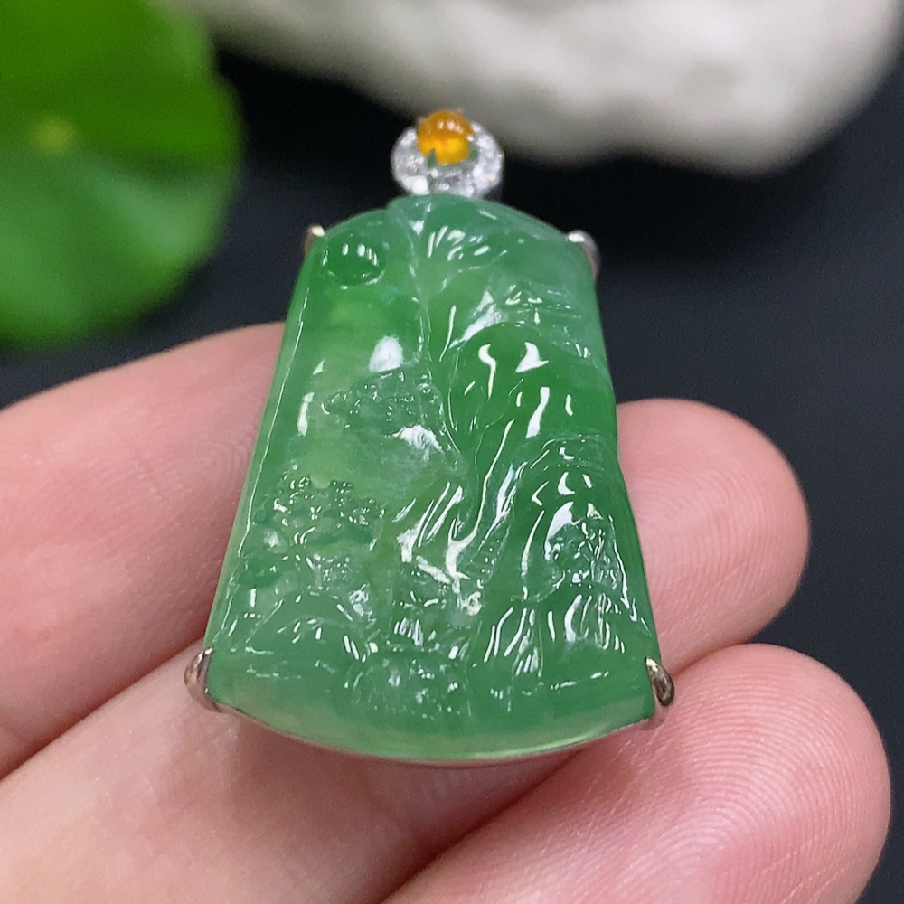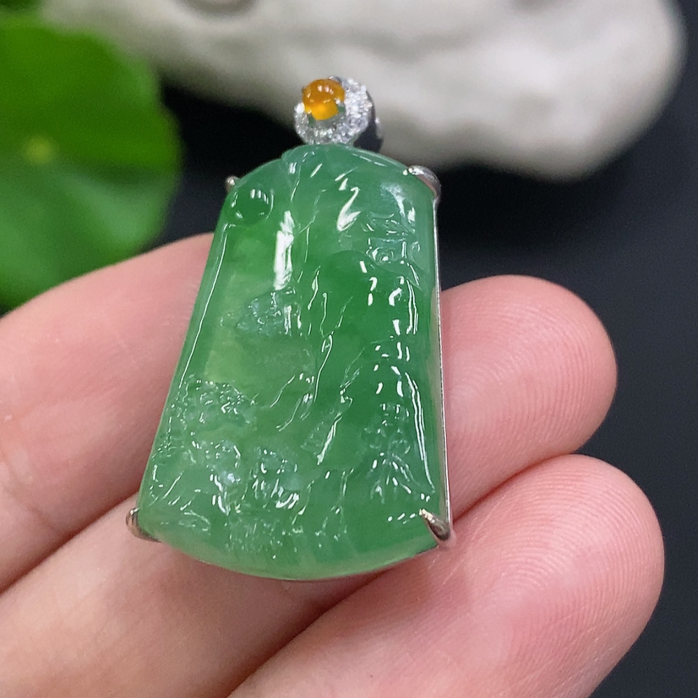 JadeiteLandscape Pendant with 18K Gold and Diamond Accent