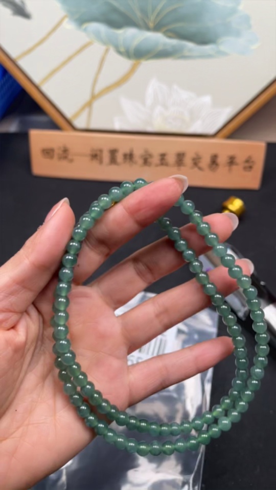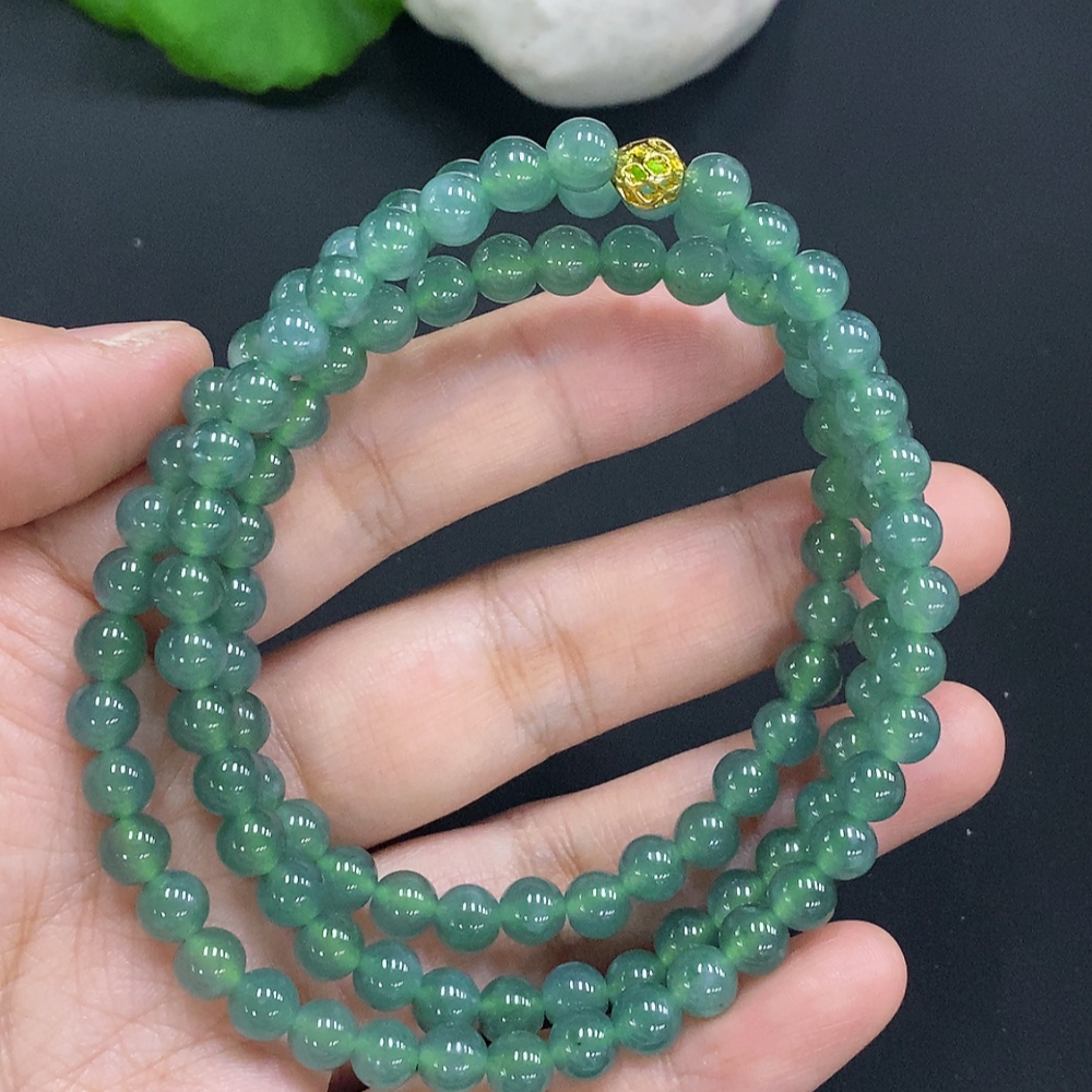 Jadeite Bead Necklace Approx. 5.6mm Non-Gold Total Weight Approx. 36.7g