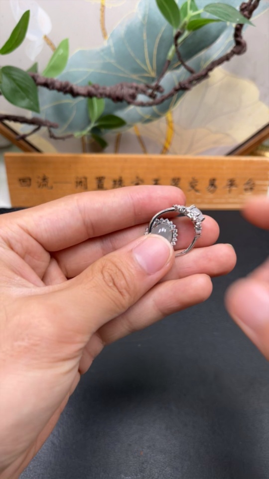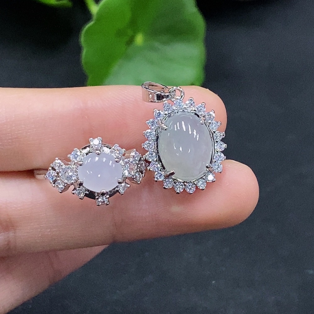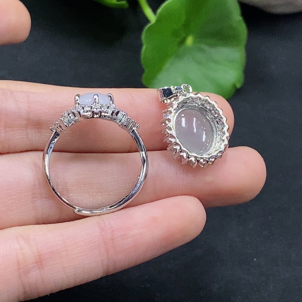 Jadeite Cabochon Pendant/Ring with Adjustable Opening, Non-Gold Setting