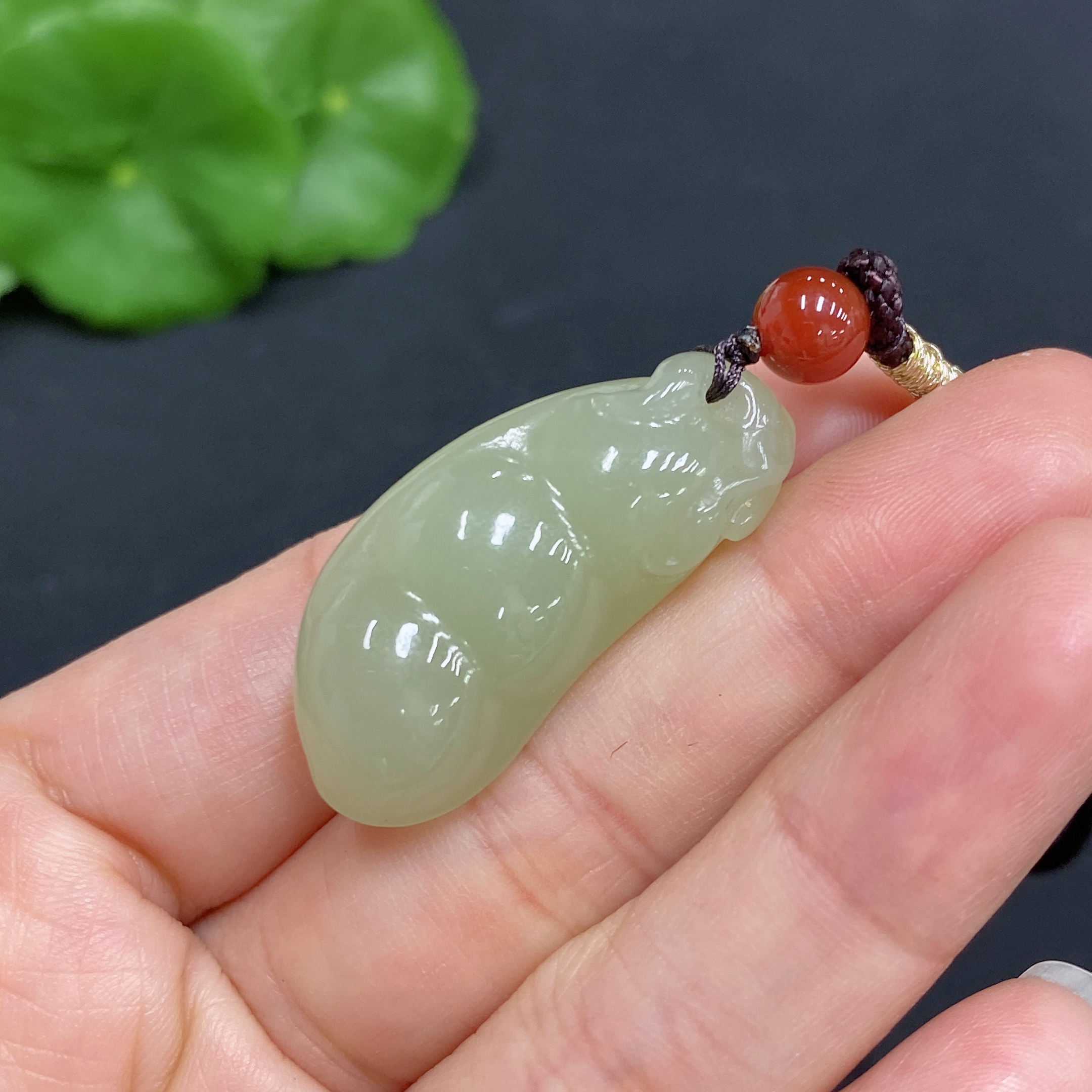 Hetian Jade Pendant Fu Dou Total Weight (with rope) Approx. 10.2g