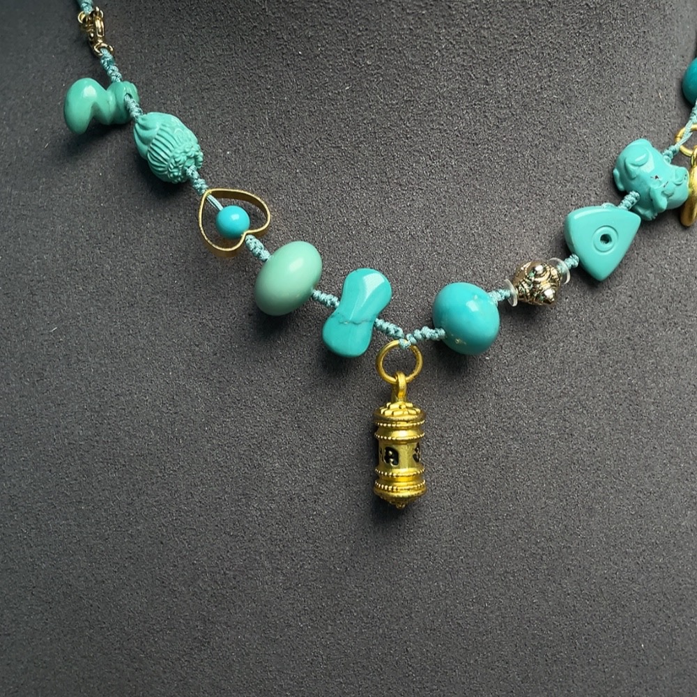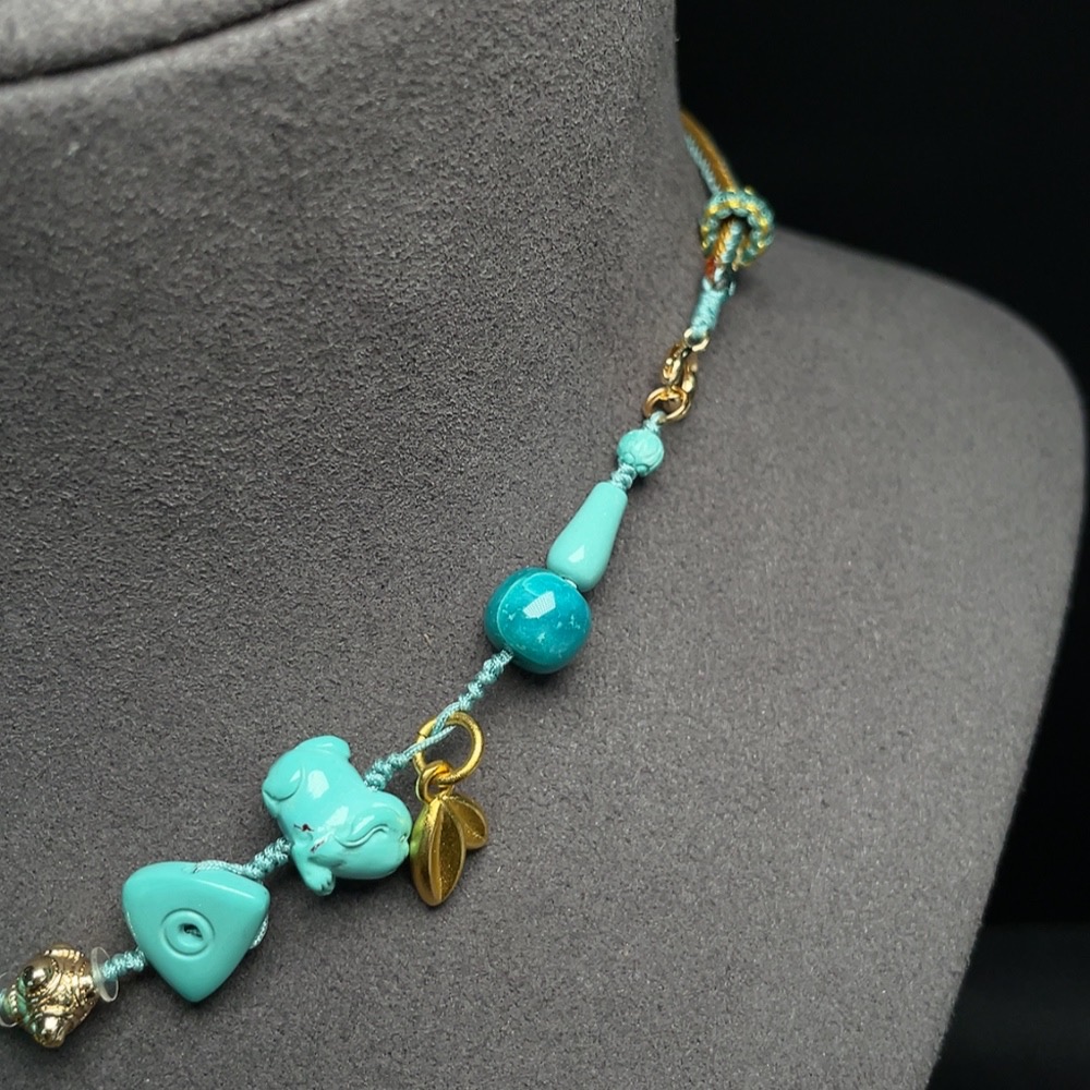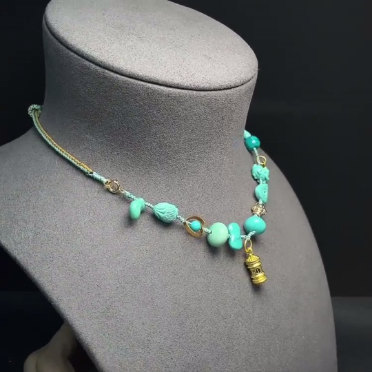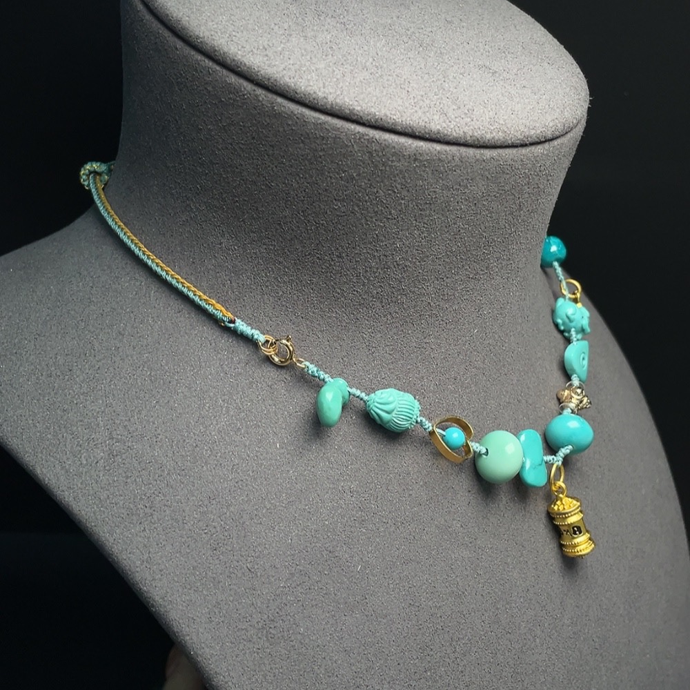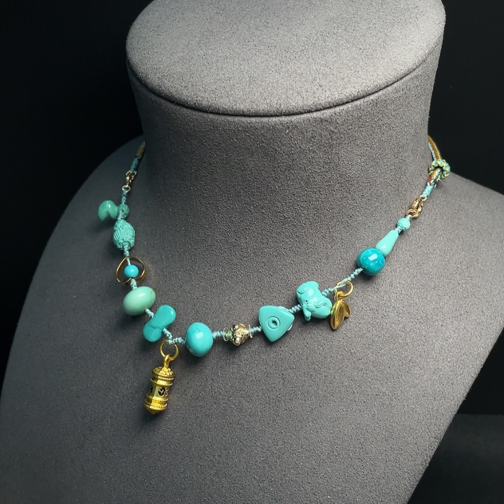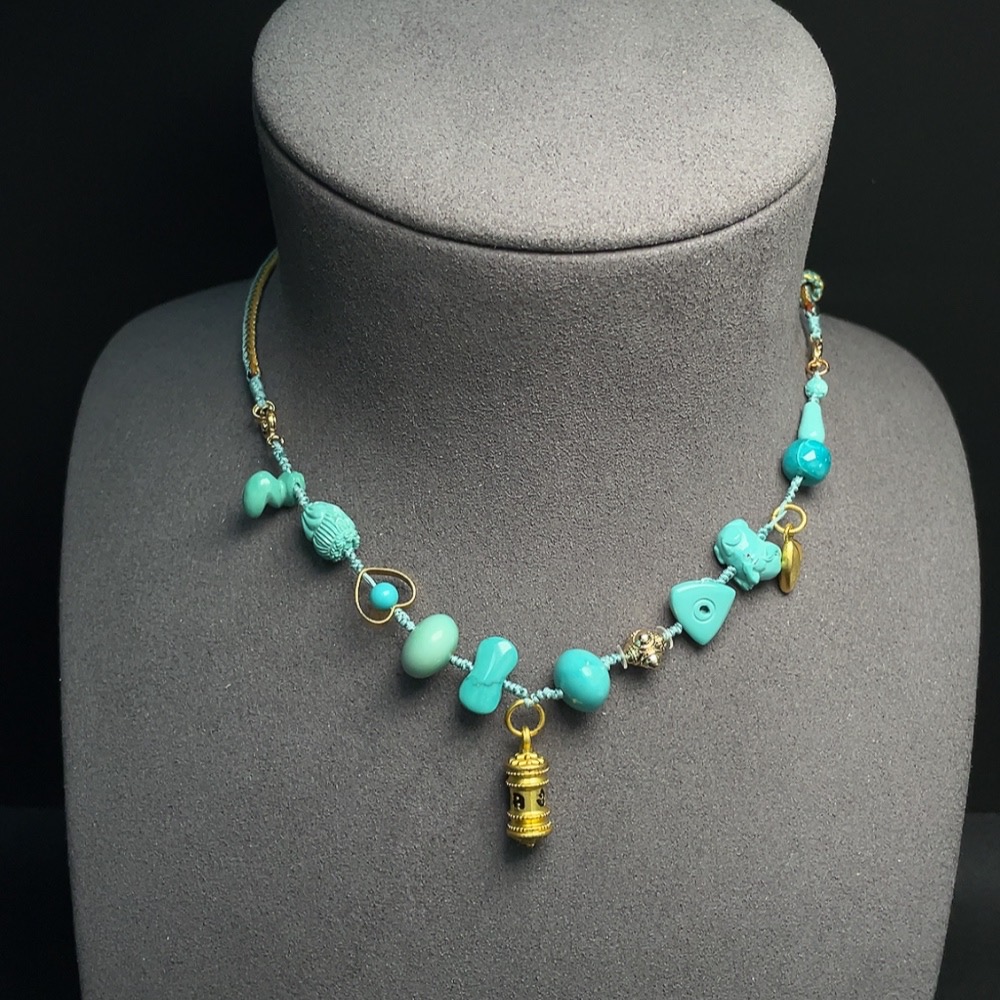 Turquoise Bead Strand Non-Gold Inlaid Item Weight Including Cord Approximately 17.94g
