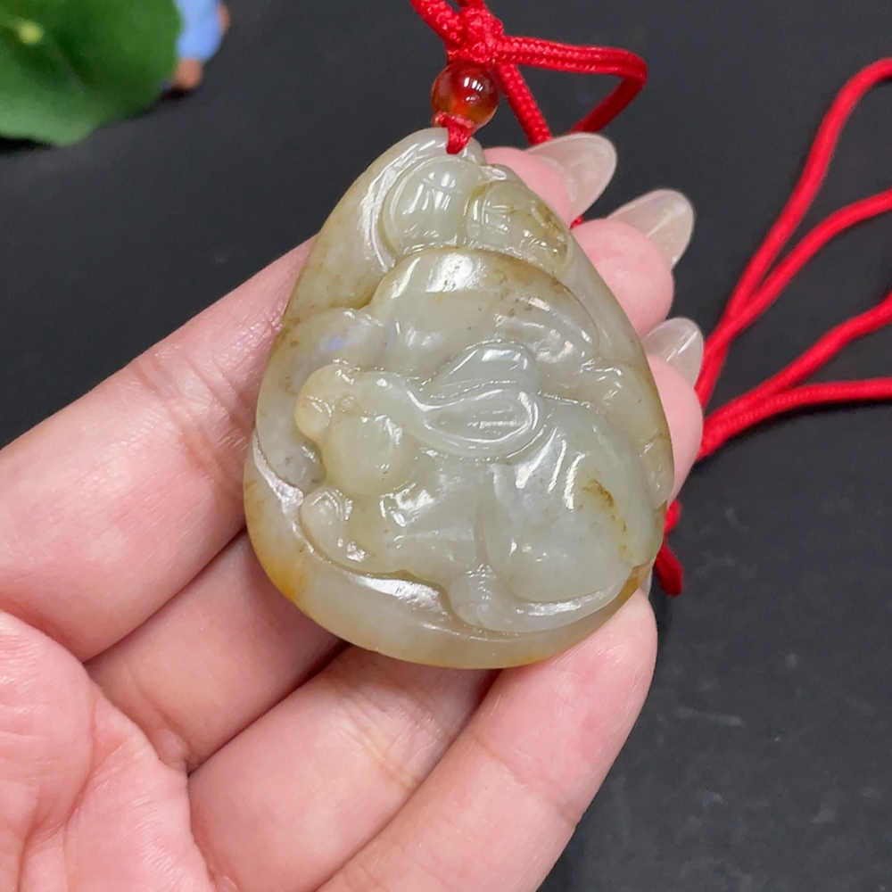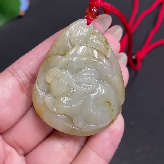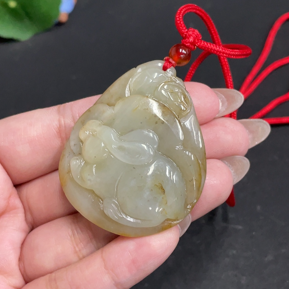 Hetian Jade Pendant Rabbit Total Weight Approx. [with Rope] 45.2g