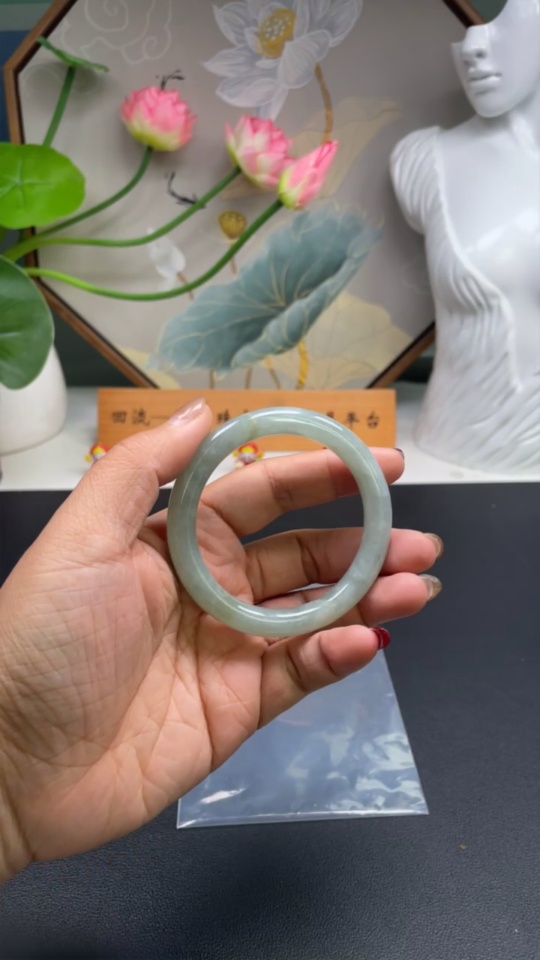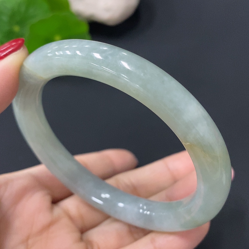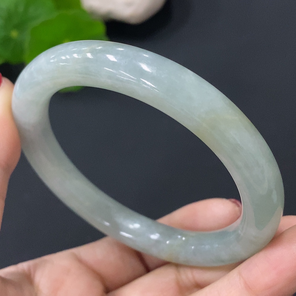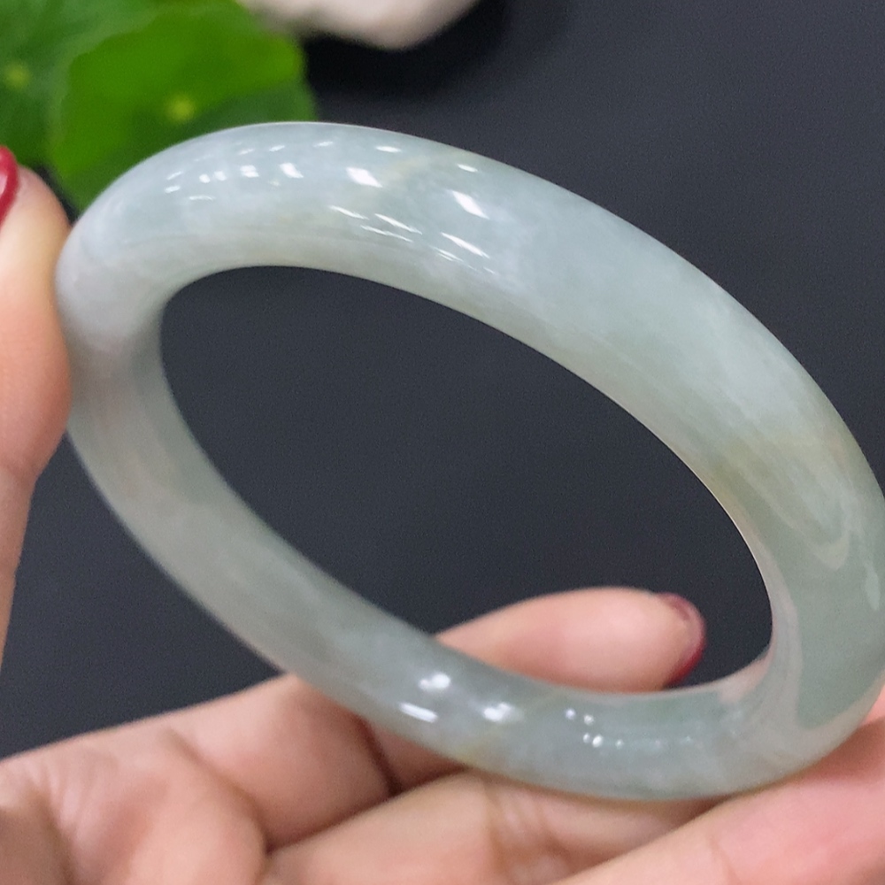 JadeiteRound Bangle, 54mm Inner Diameter, Approx. 45.92g Total Weight