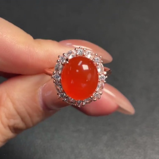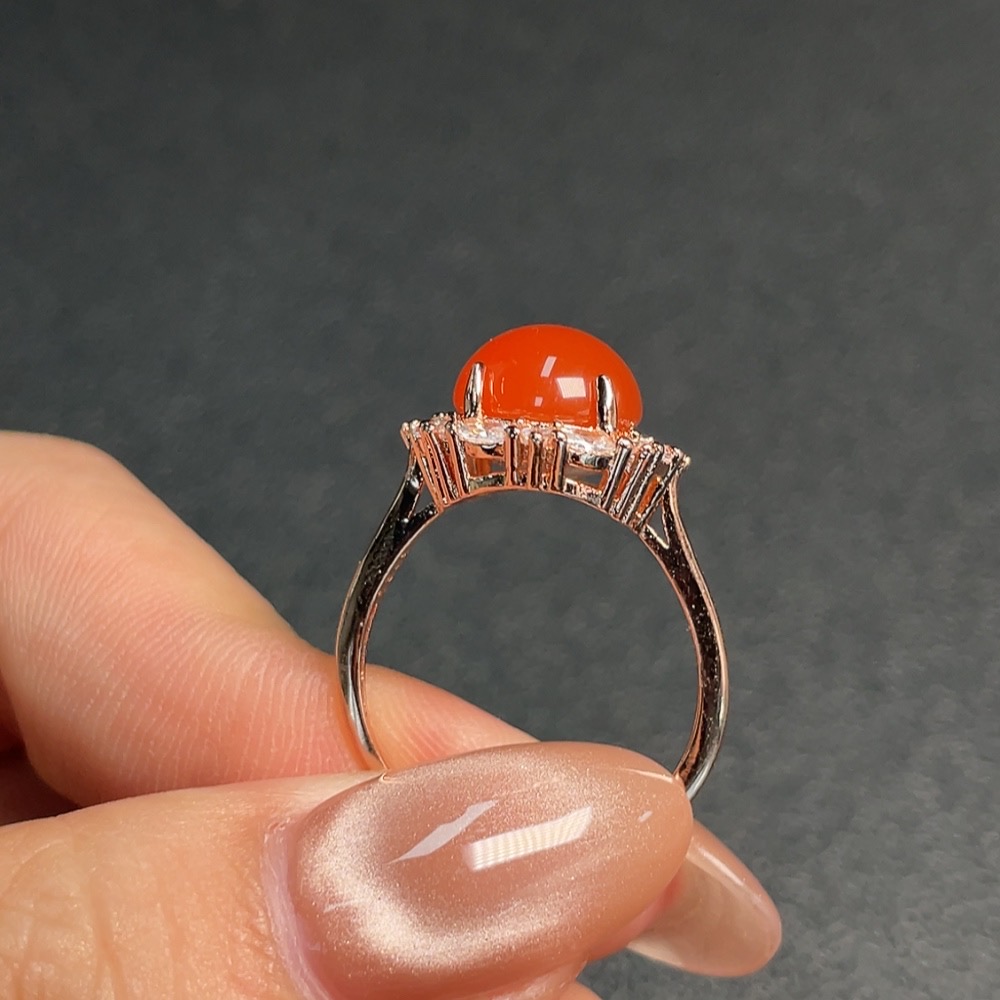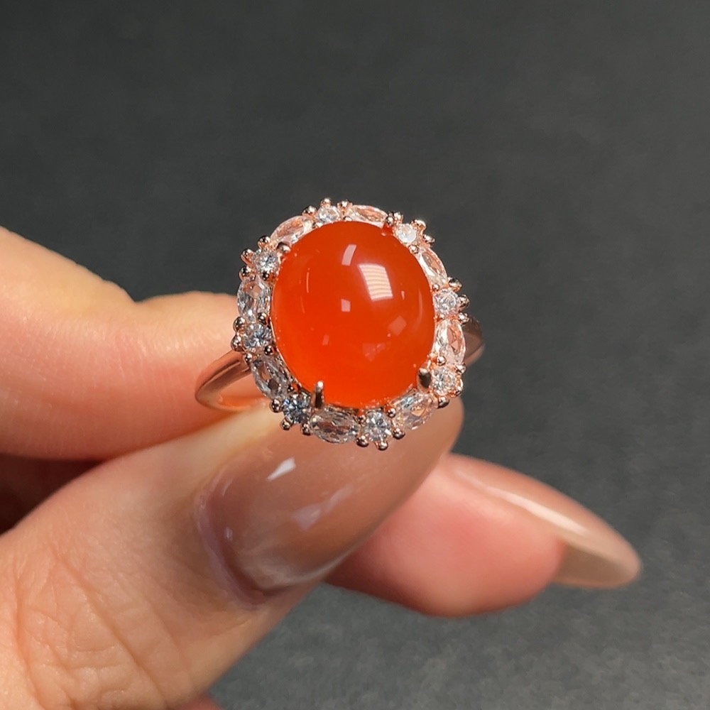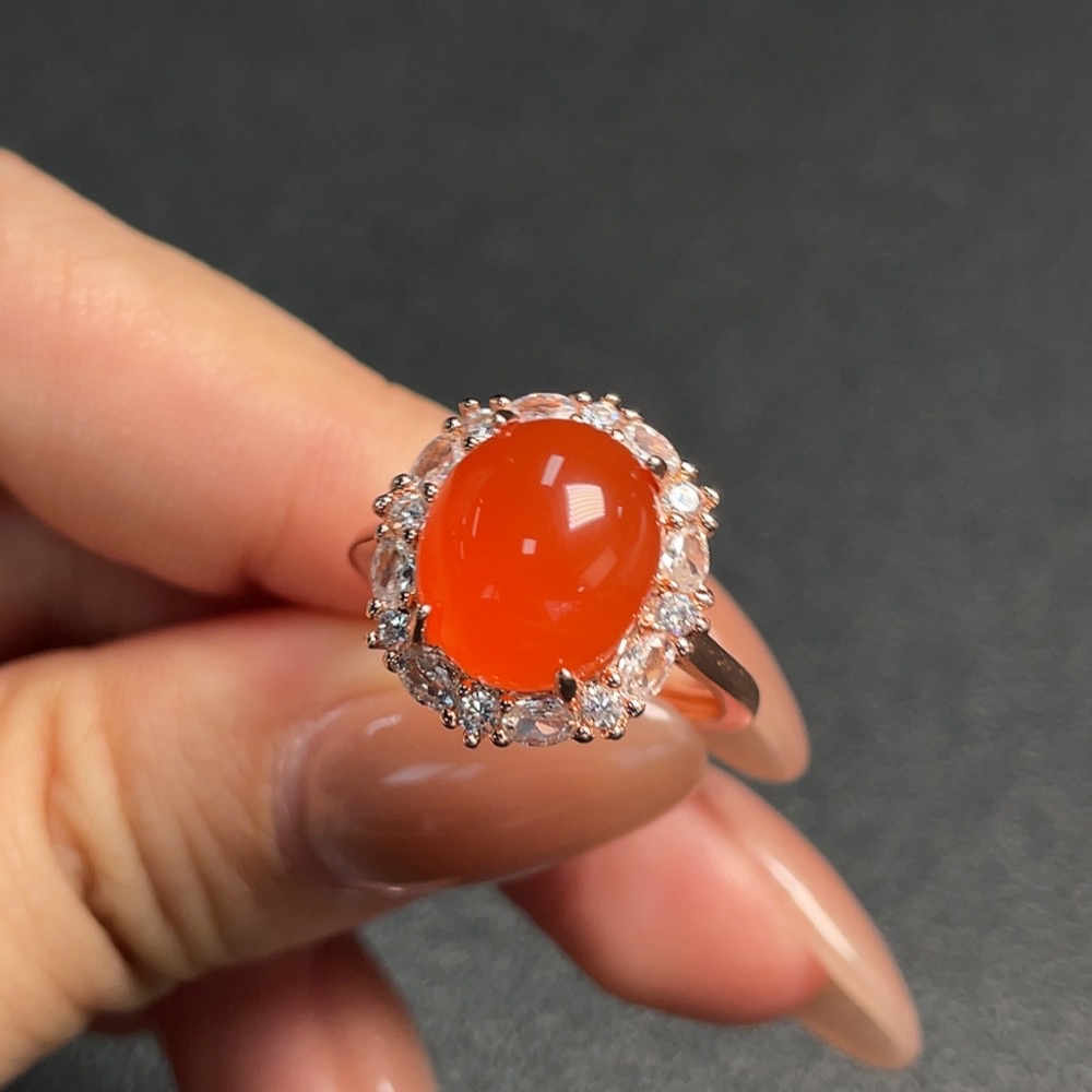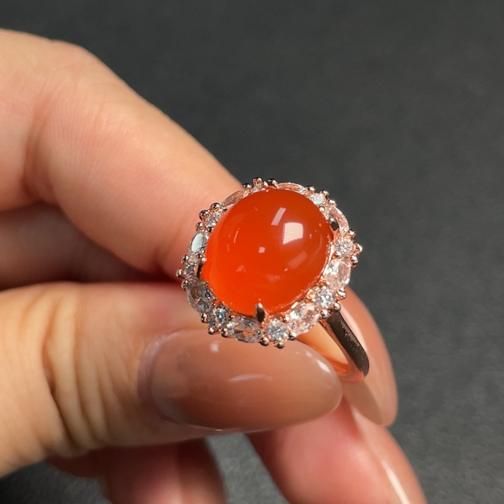 South Red Agate Inlaid Ring Non-Gold Inlay Adjustable Total Weight Approx. 4.09g