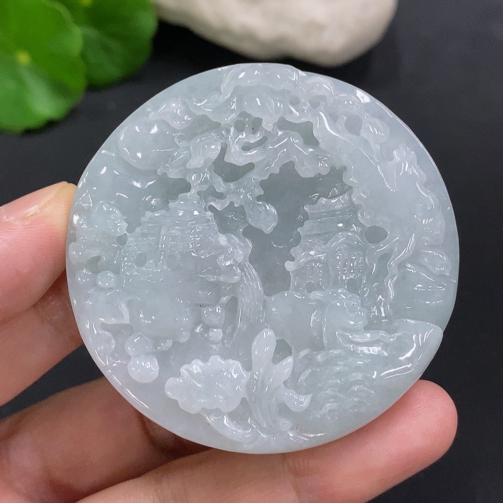 JadeiteLandscape Pendant, Total Weight Approximately 76g