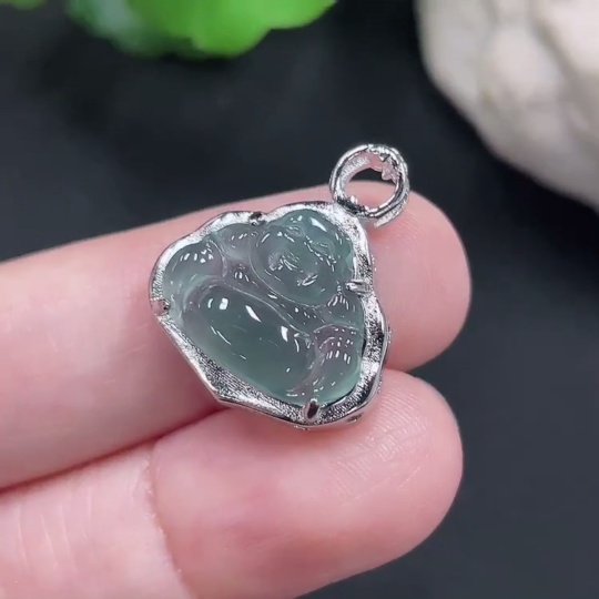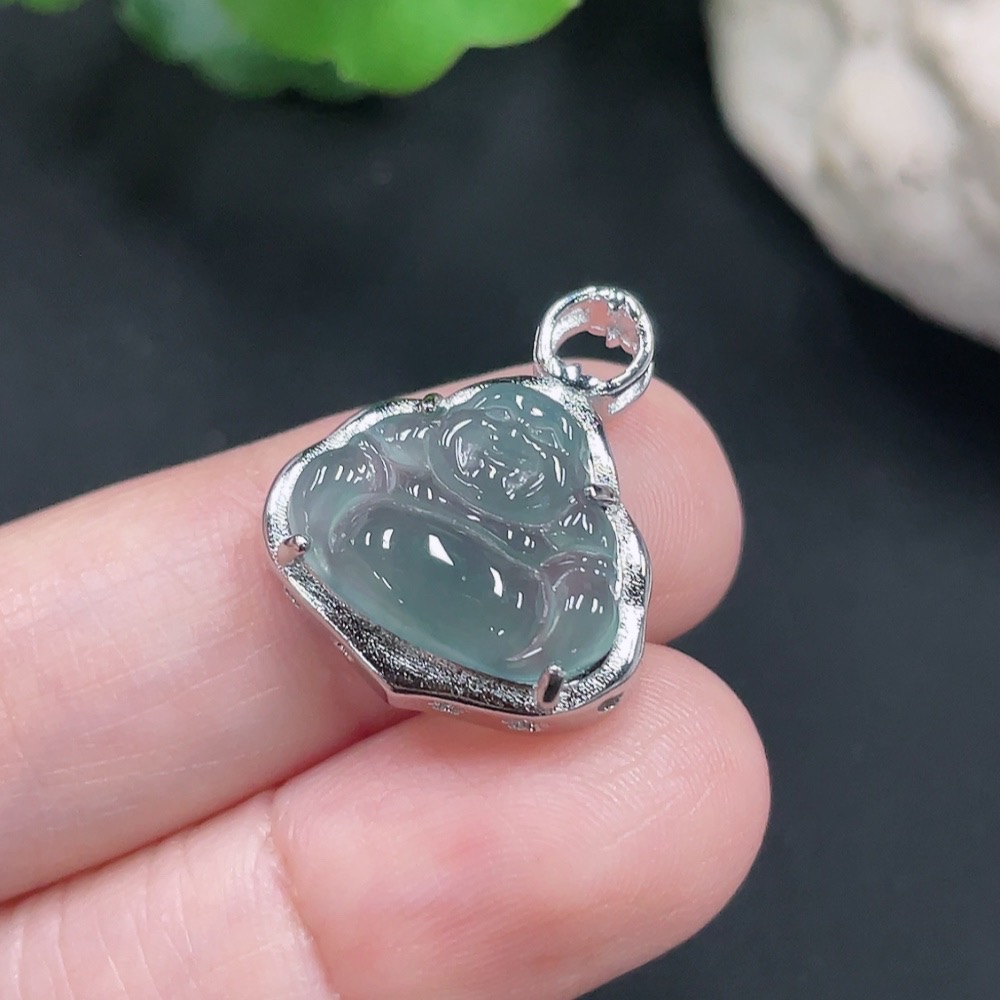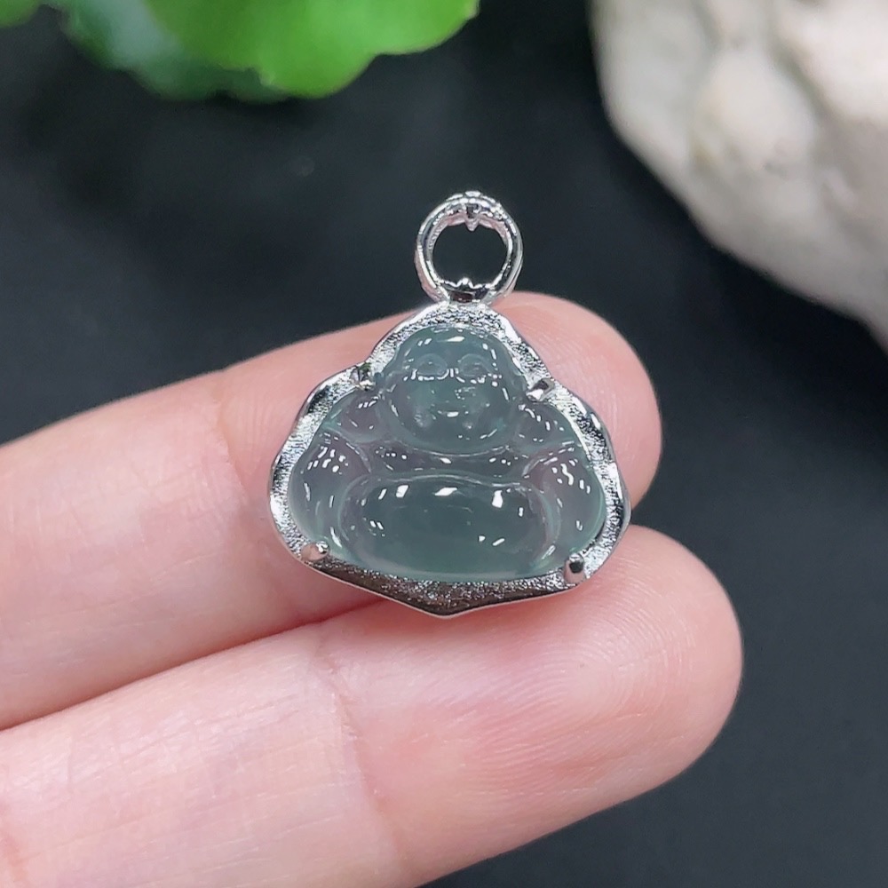Jadeite Buddha Pendant Total Weight Approx. 2.4g (Without Gold Inlay)