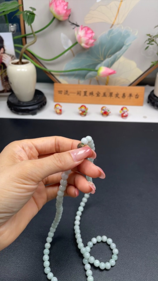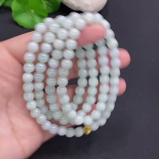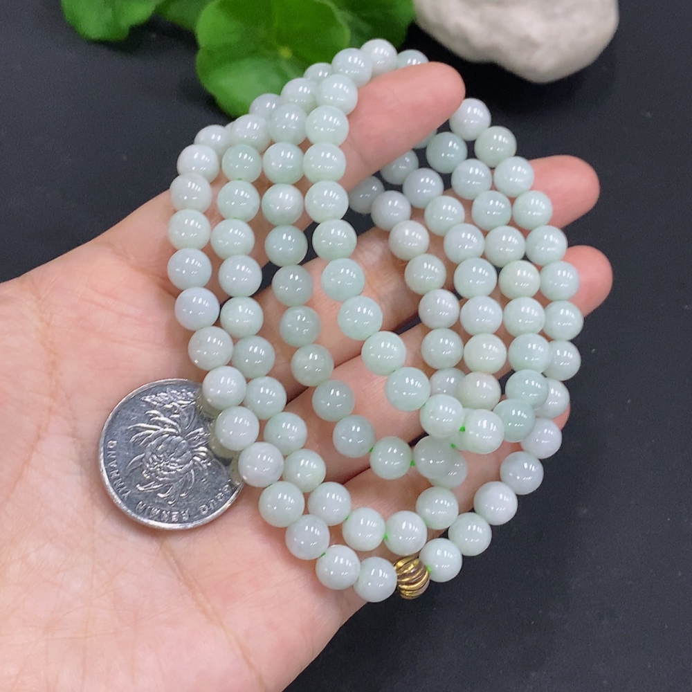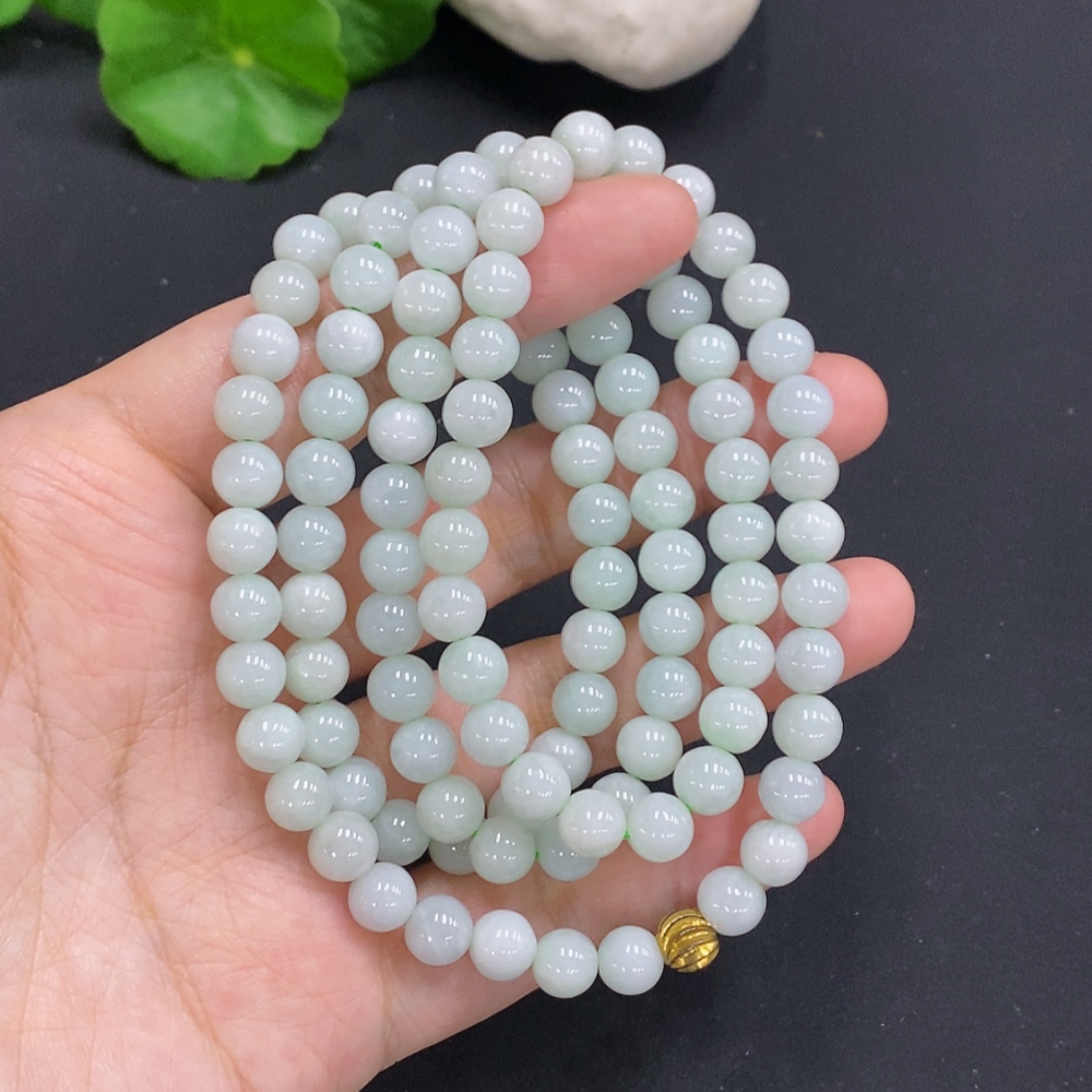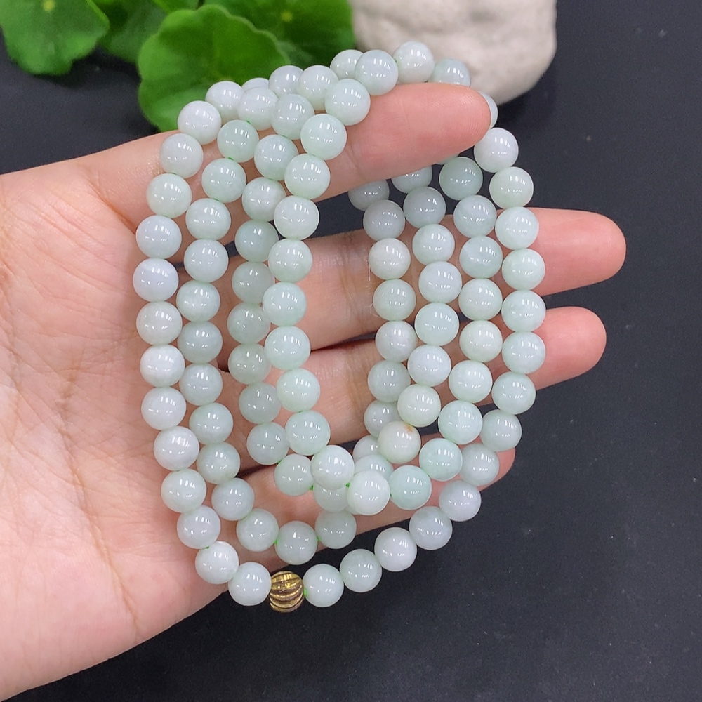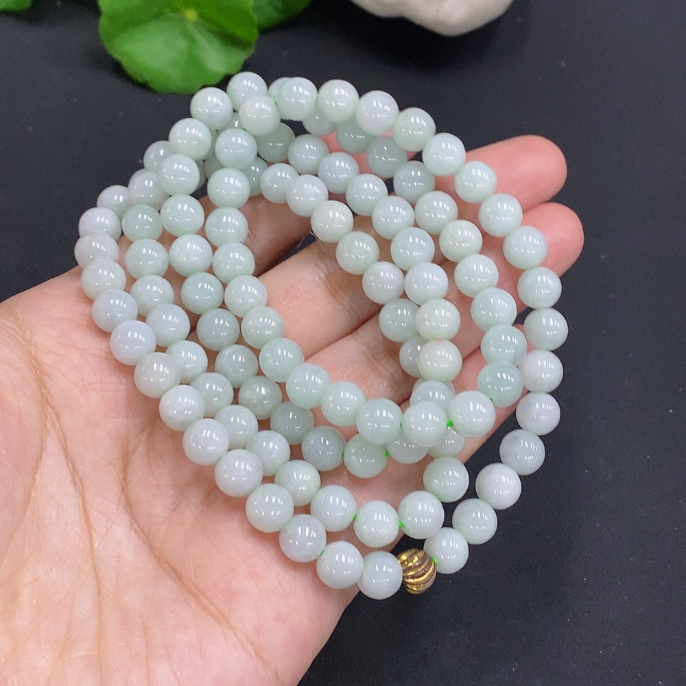 Jadeite Bead Necklace Approx. 7mm Non-Gold Total Weight Approx. 70.9g