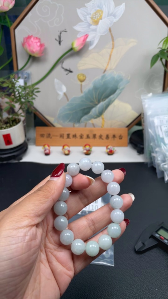 Jadeite Beads Bracelet Approx. 12.2mm Total Weight Approx. 49.43g