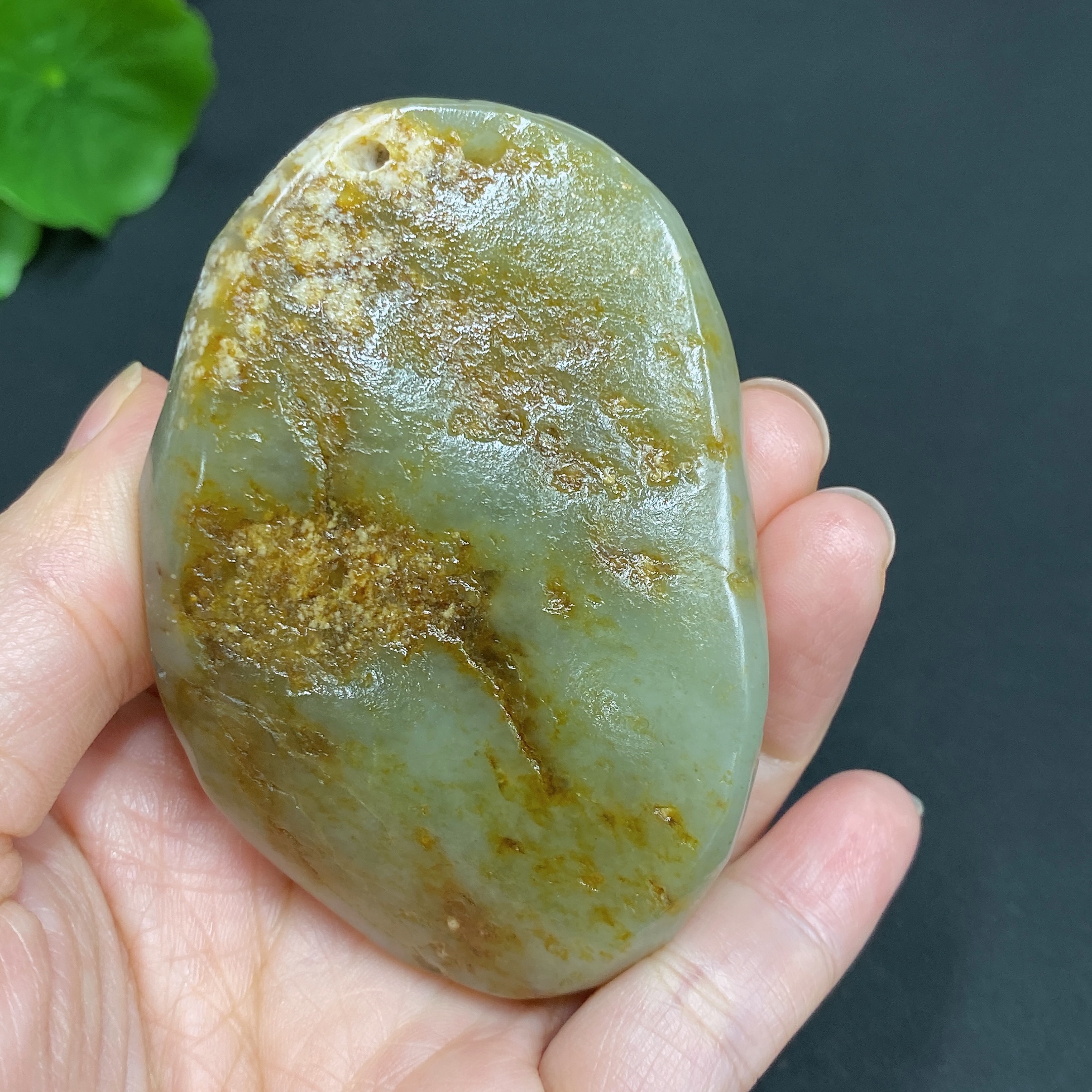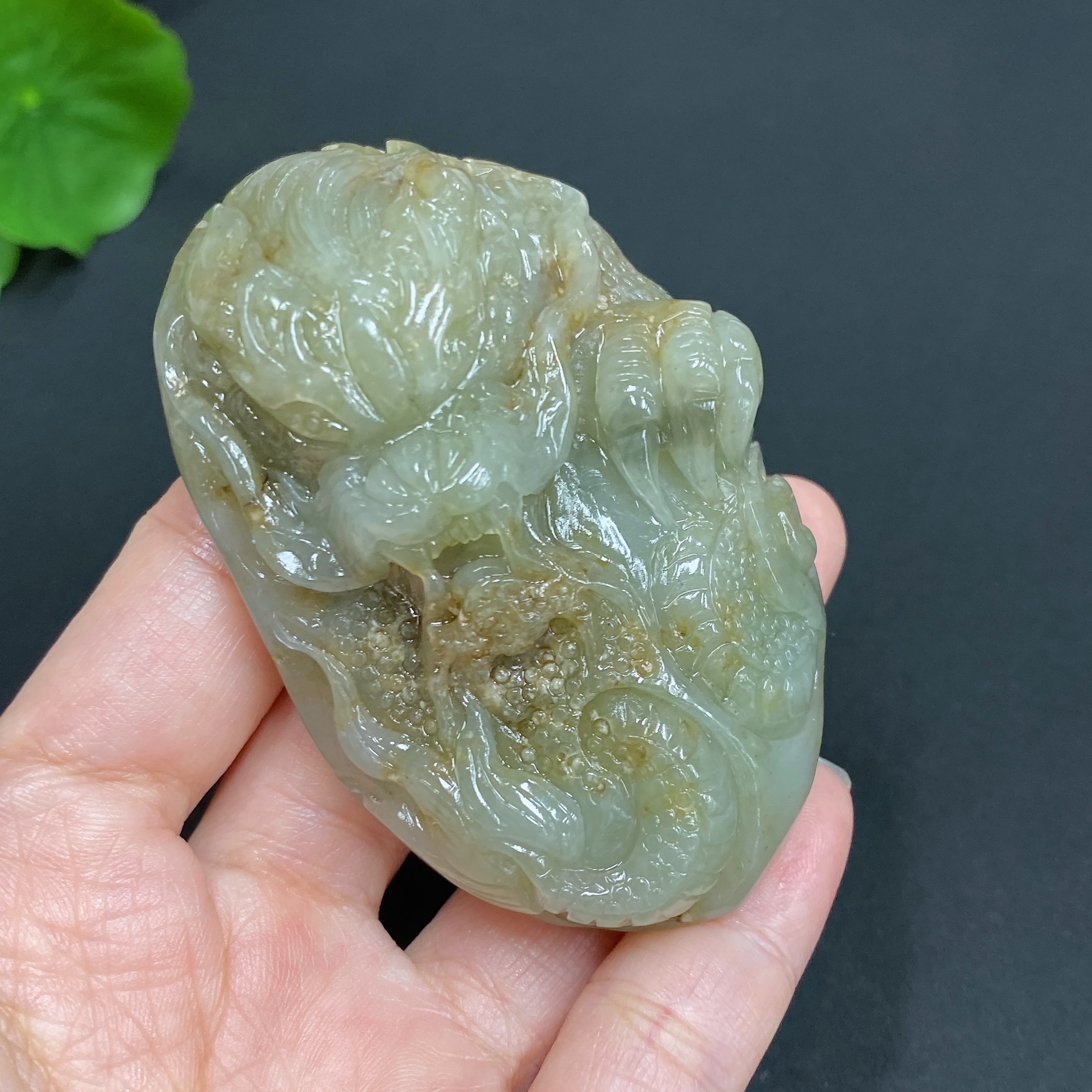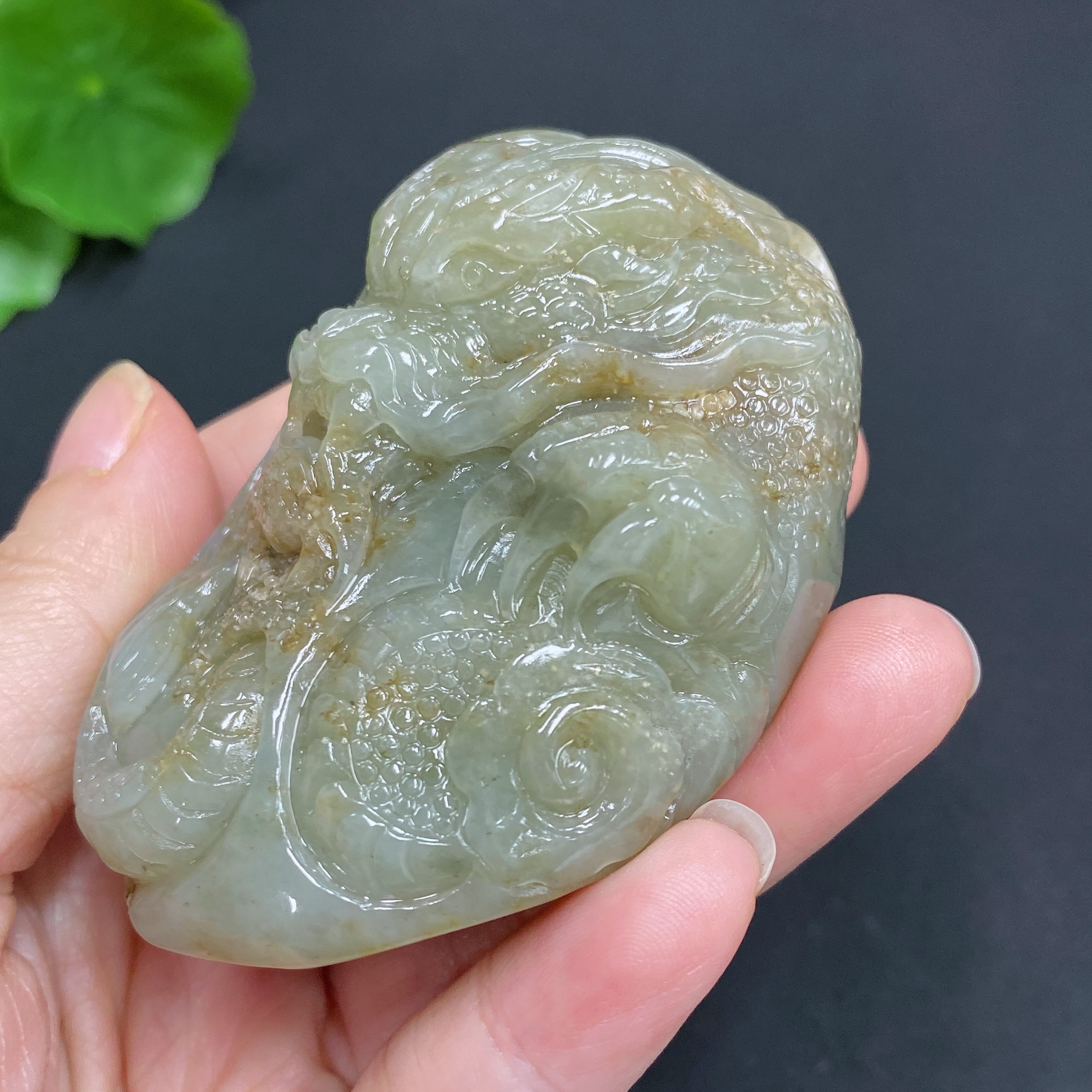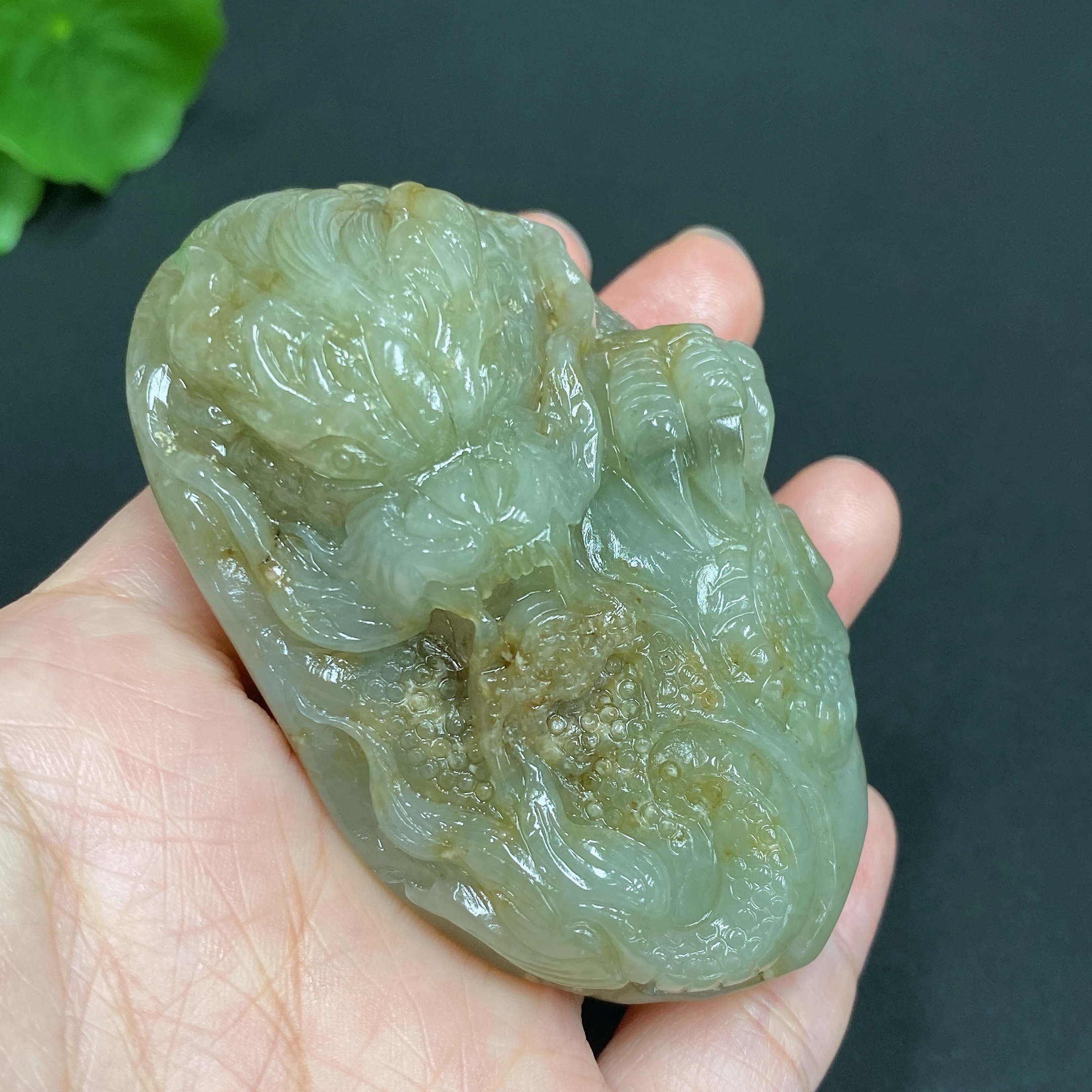 Hetian Jade Seed Material Handheld Carving "Dragon Roaming the World" with Undetermined Skin Color Origin, Total Weight Approx. 114.9g