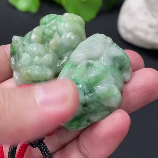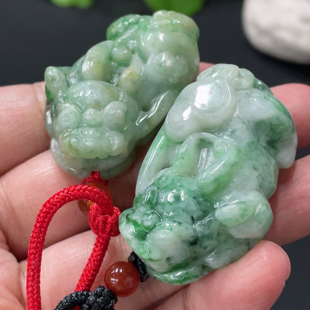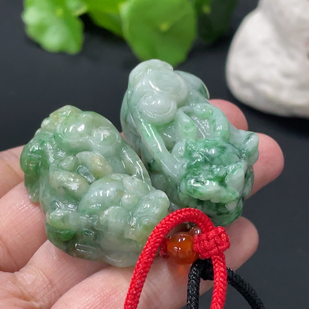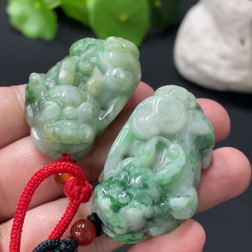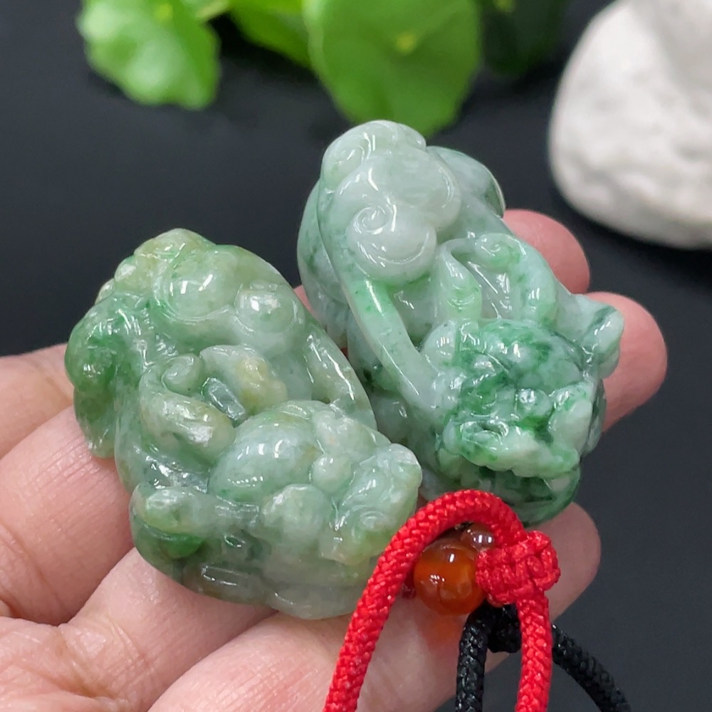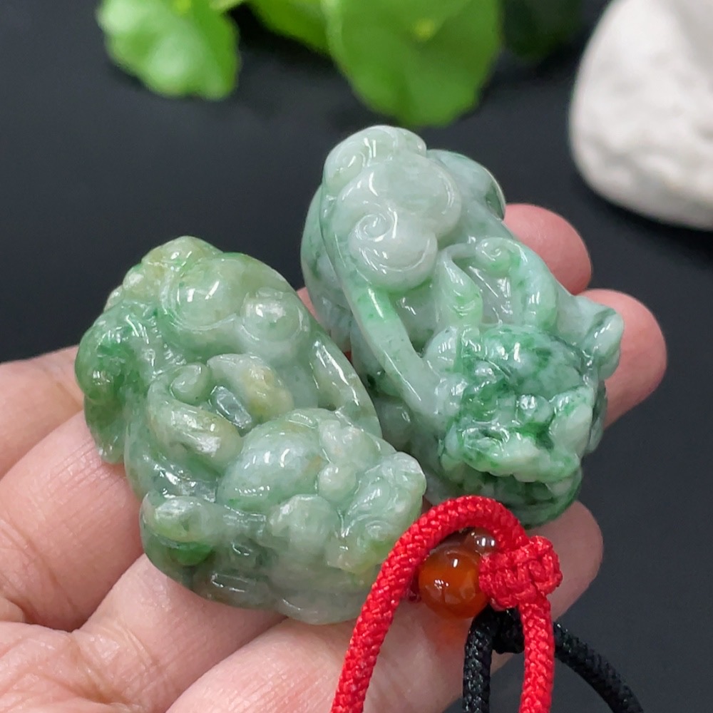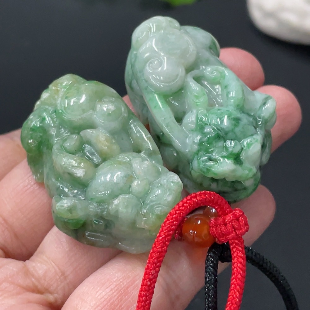 Jadeite Pi Xiu Pendant with Non-A Grade Beads Containing Other Mineral Components
