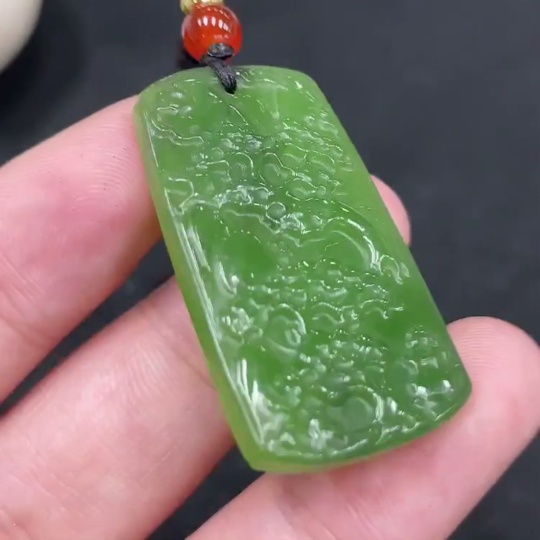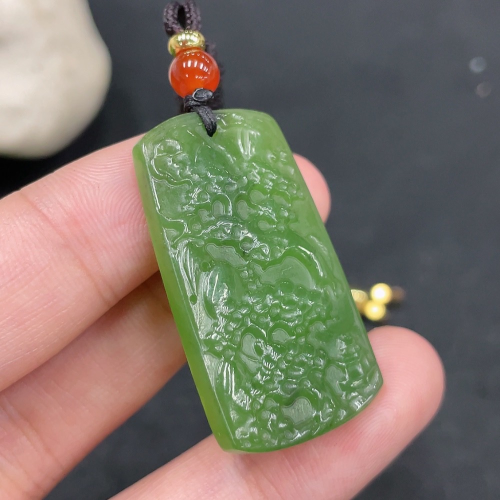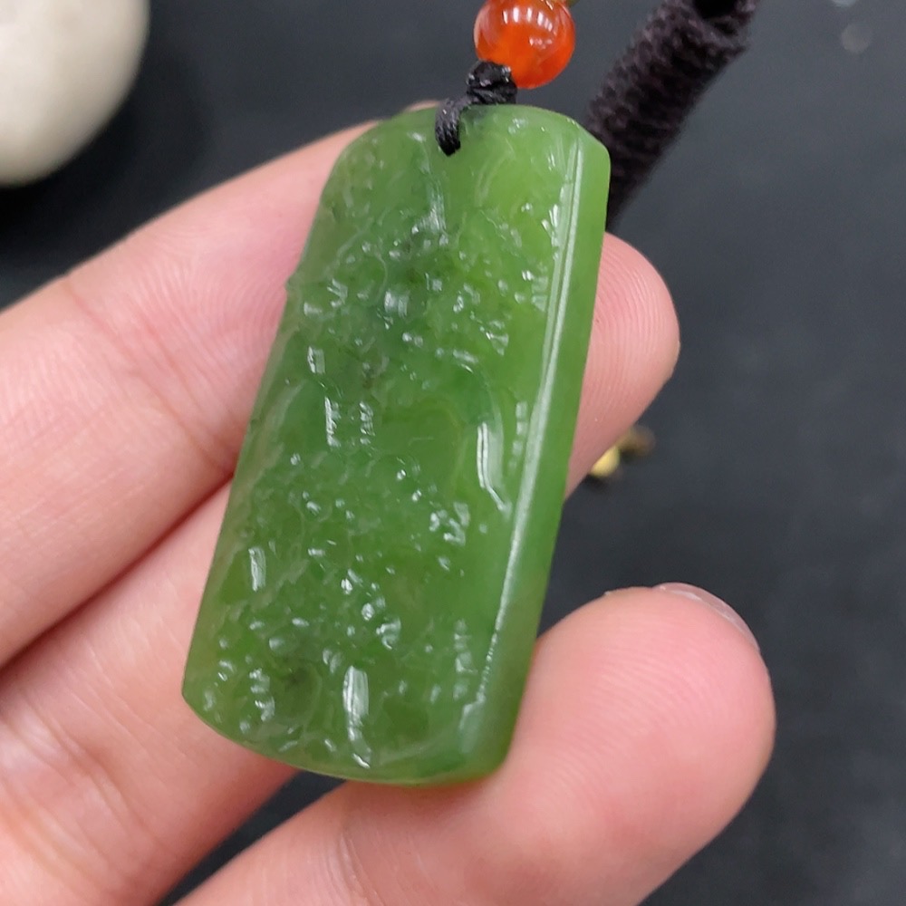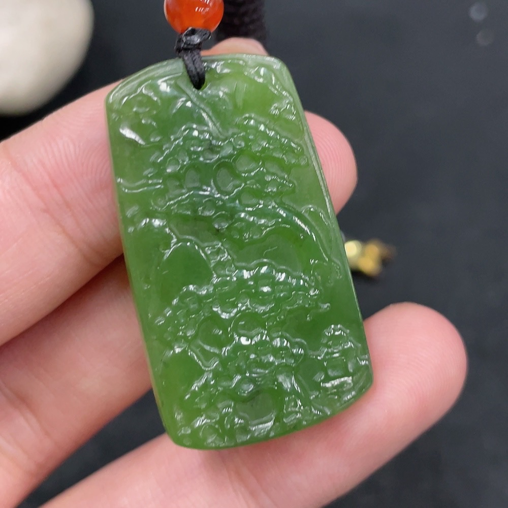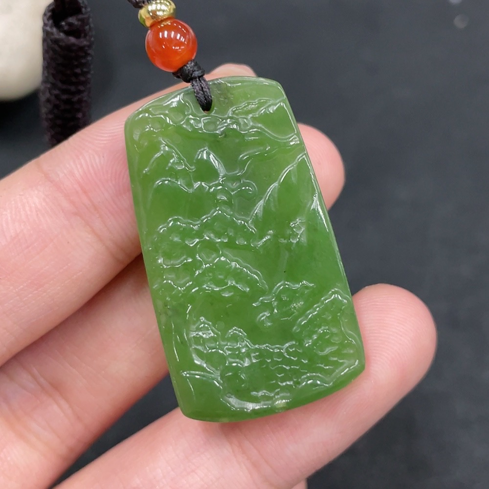 Hetian Jade Pendant, Landscape Plaque, Total Weight (Including Rope): 8.6g