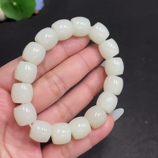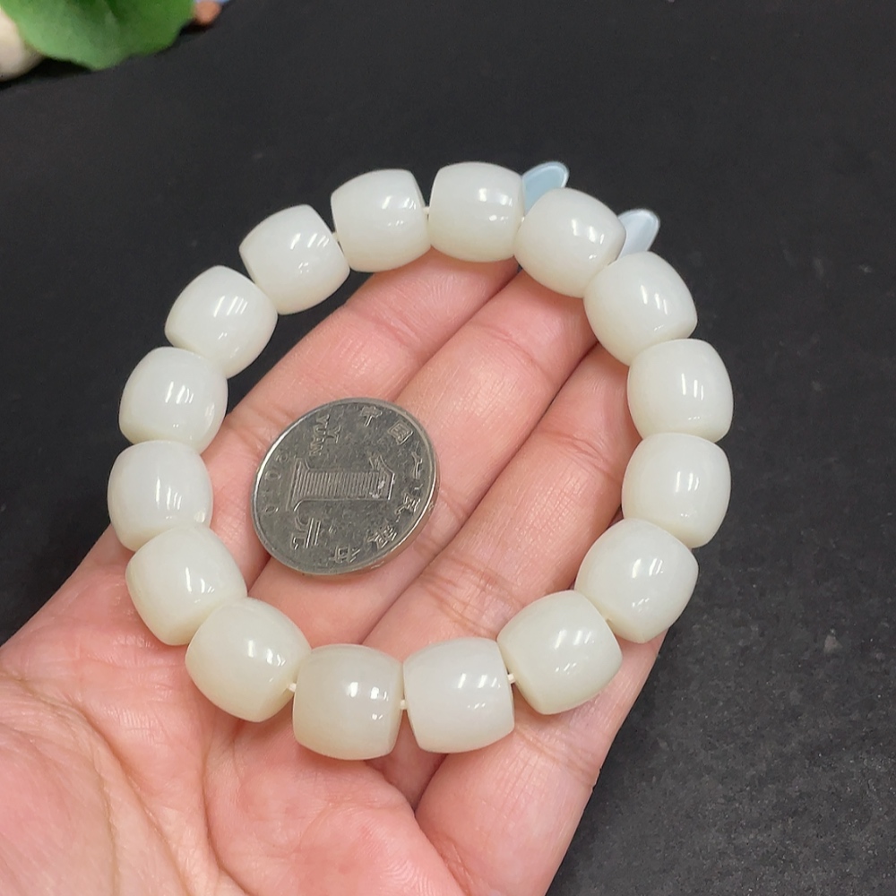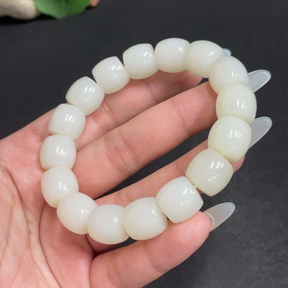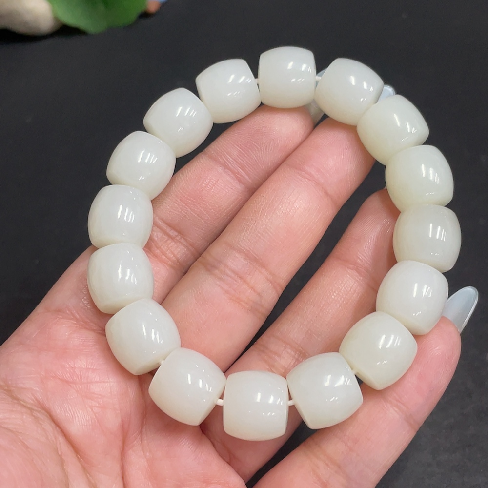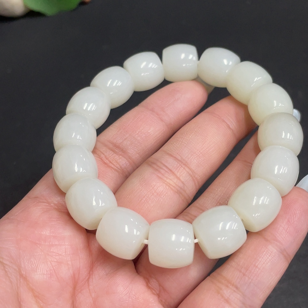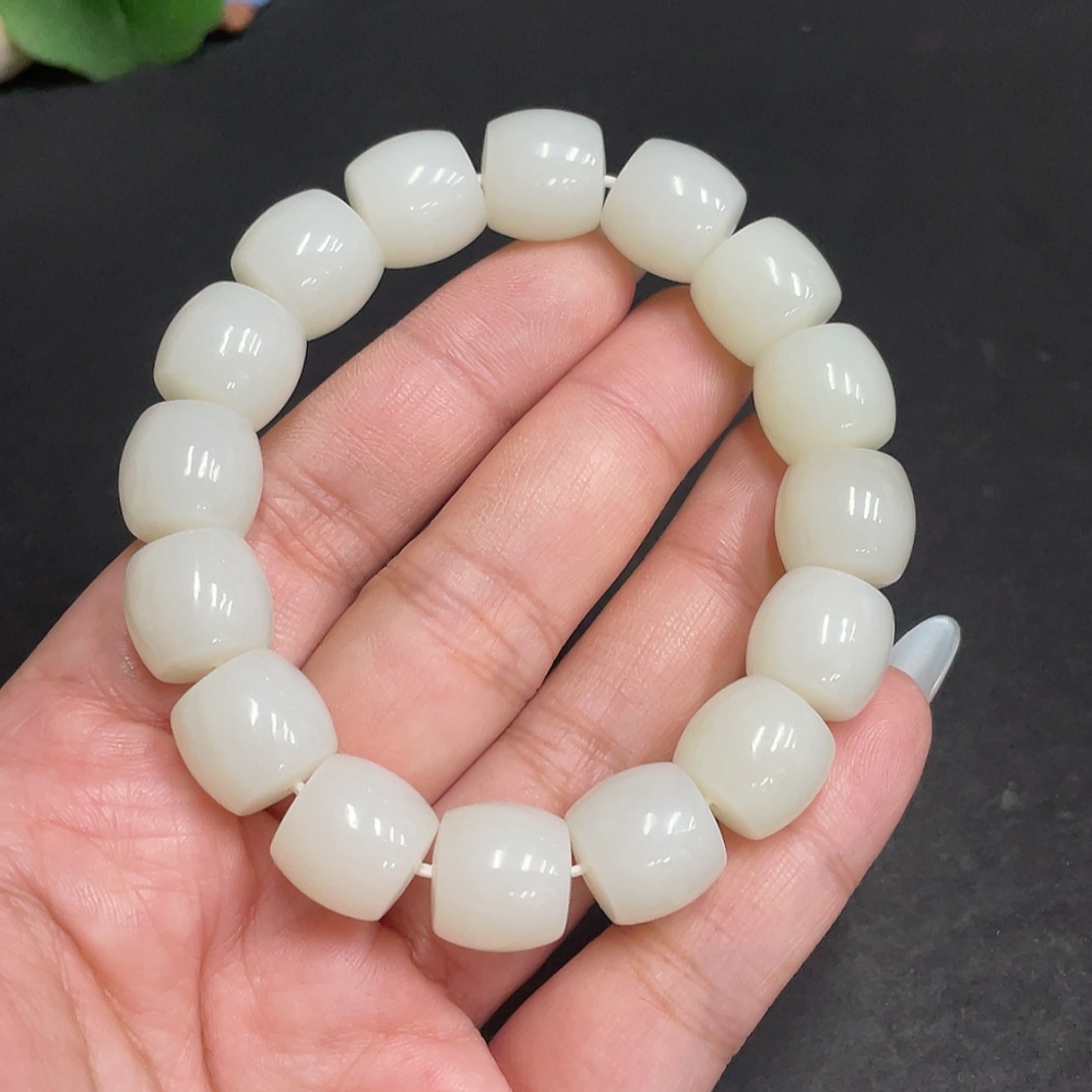 Hetian Jade Bracelet, Approx. 12.6 mm Beads, Total Weight Approx. 60.8g