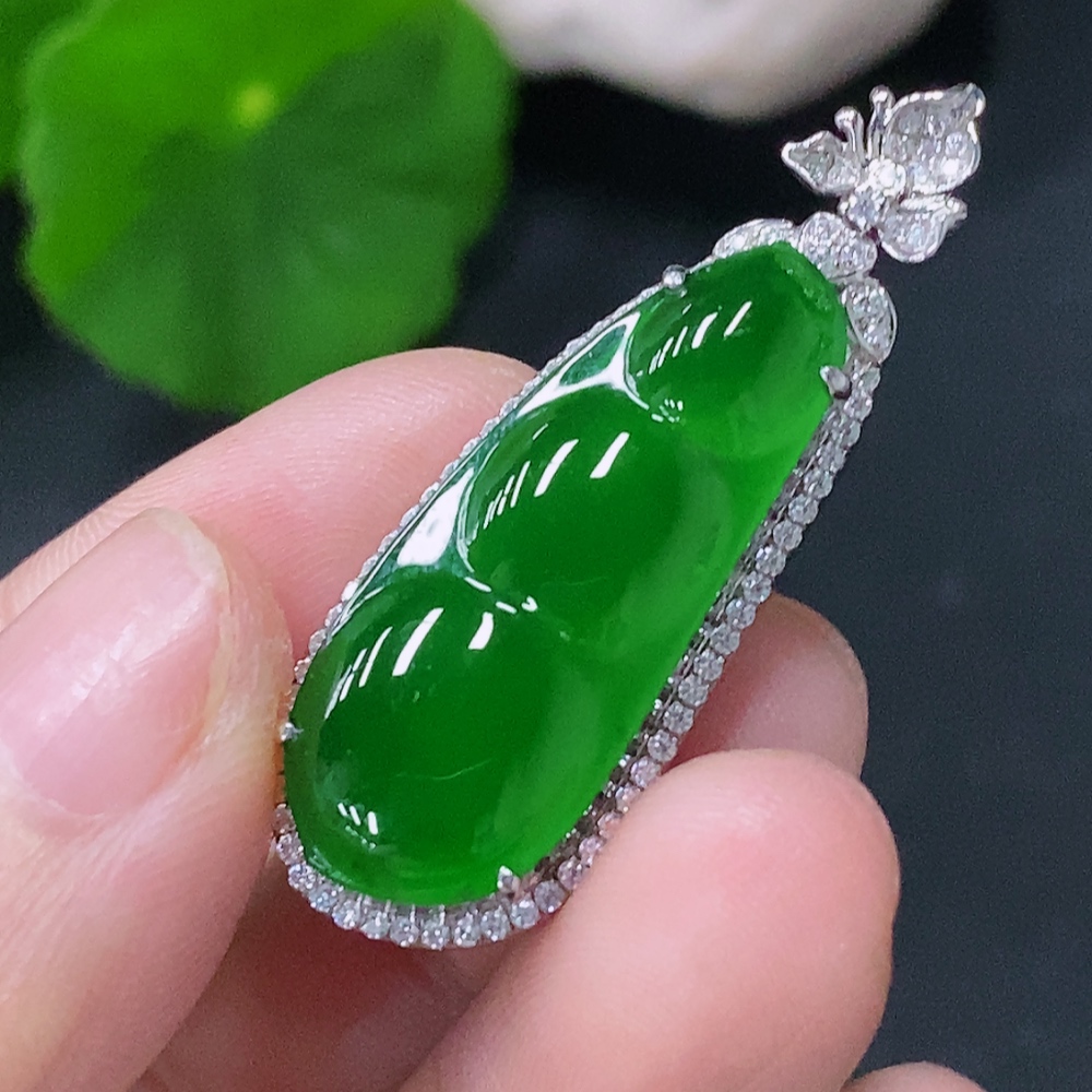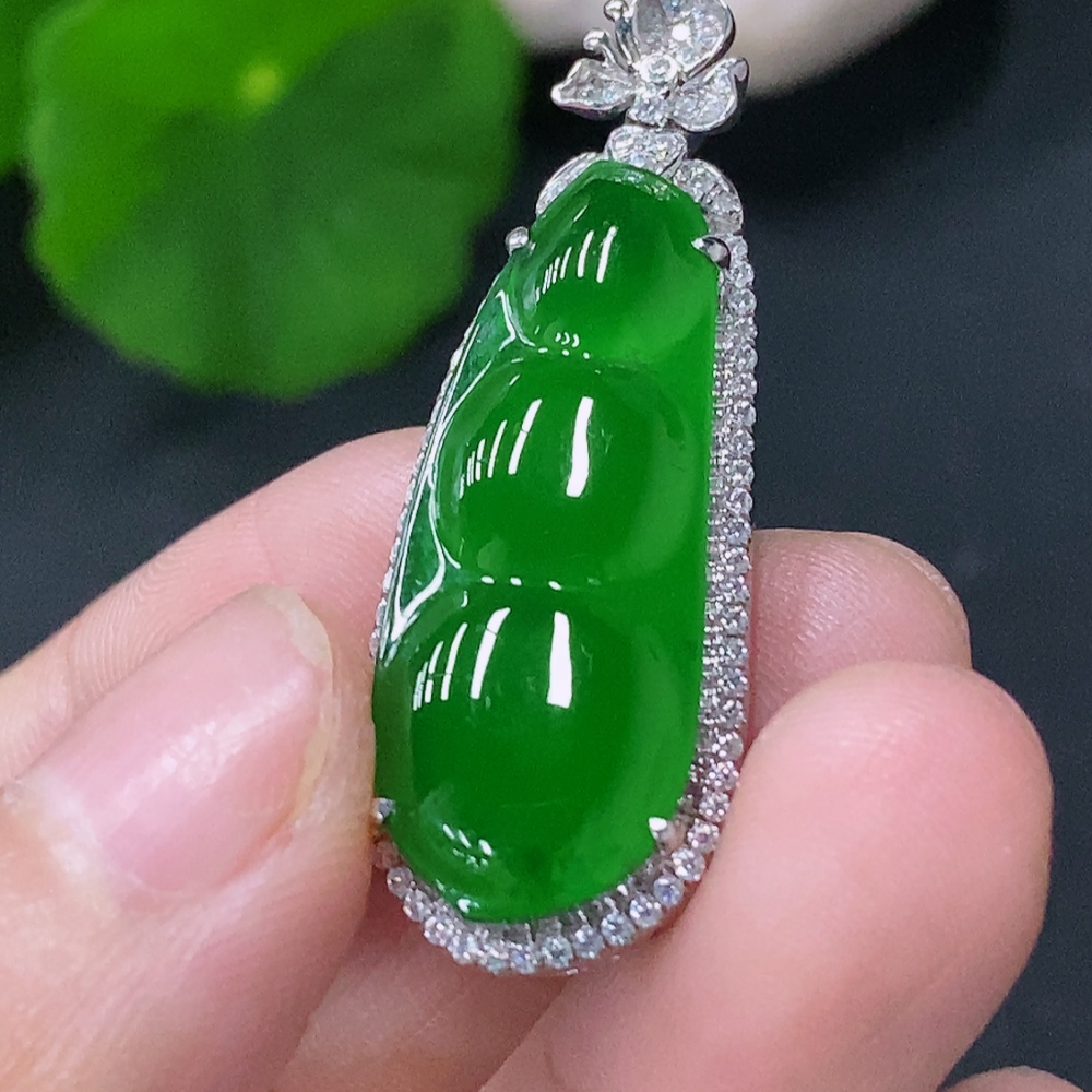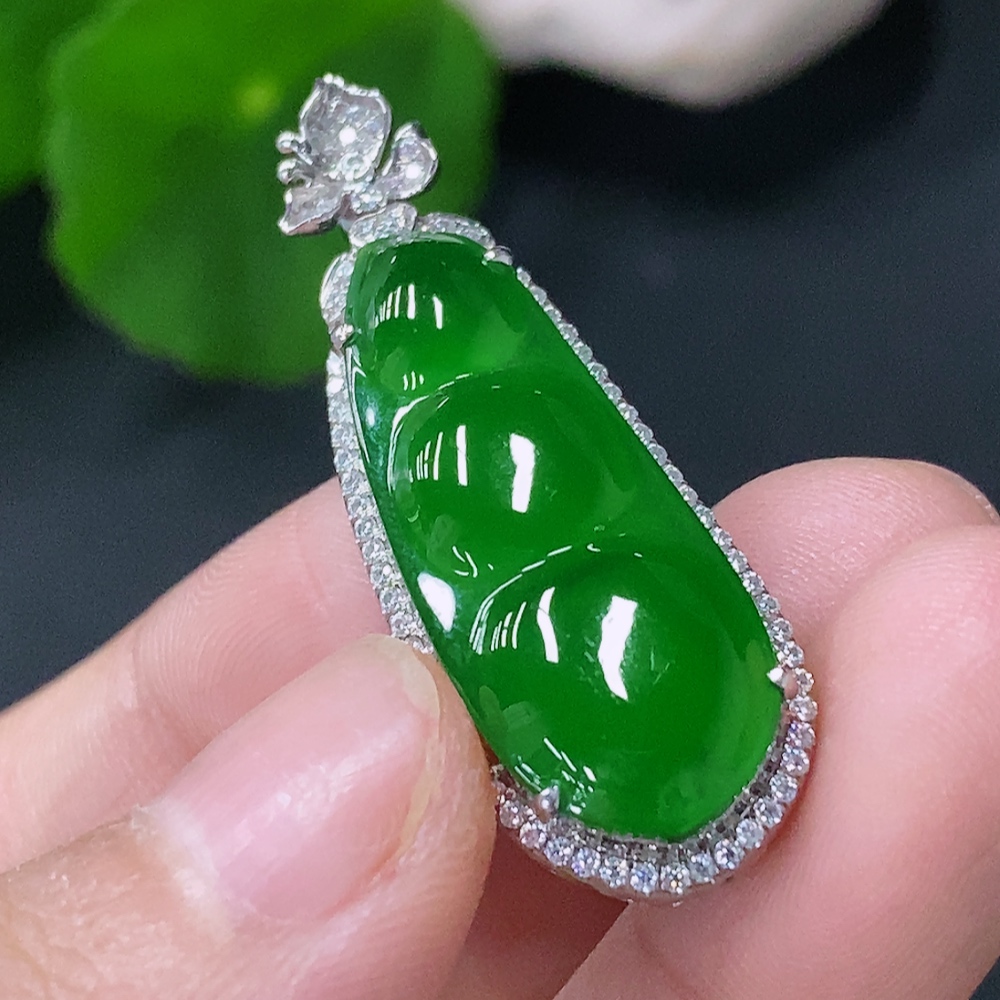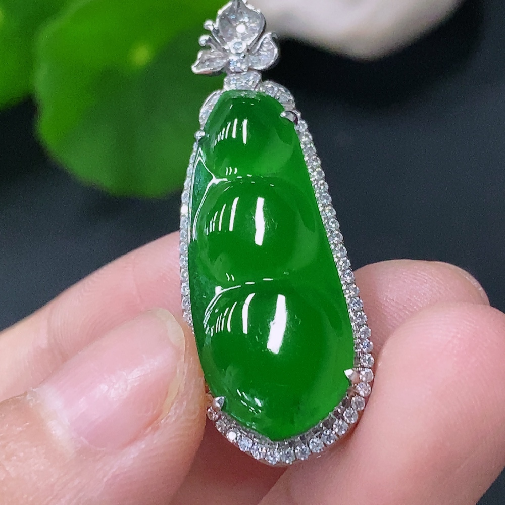 Jadeite Inlaid Lucky Bean Pendant Pt900 Non-Diamond Total Weight Approx.6.42g