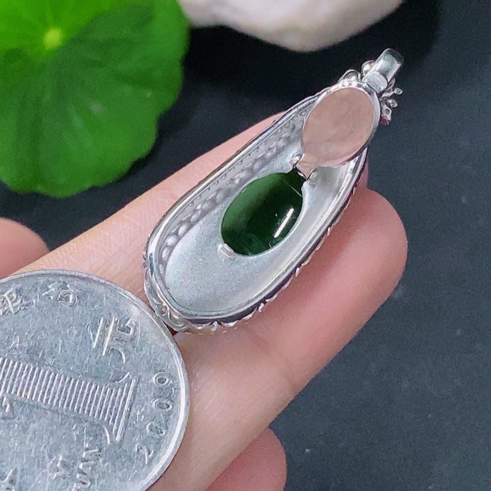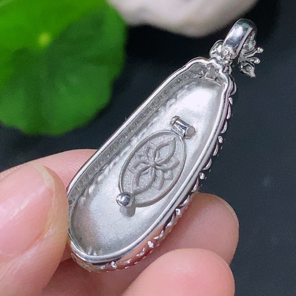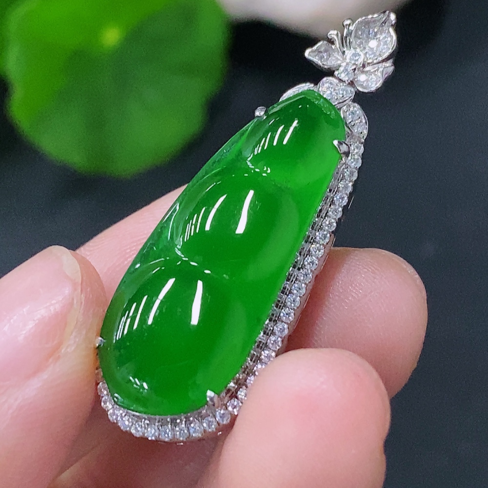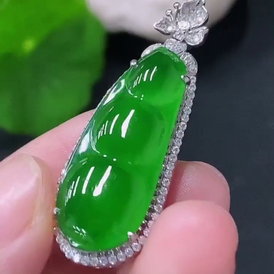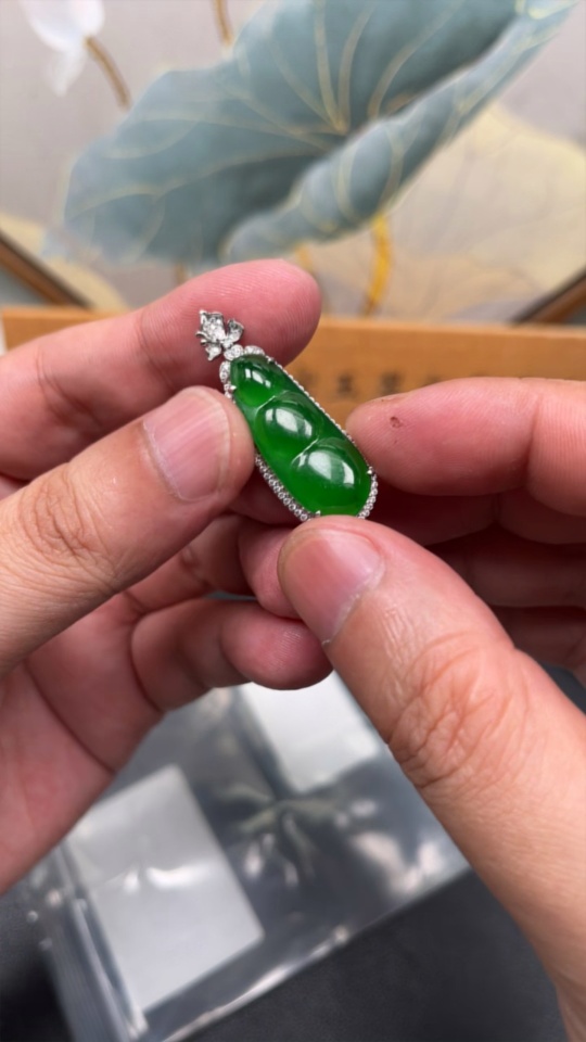 Jadeite Inlaid Lucky Bean Pendant Pt900 Non-Diamond Total Weight Approx.6.42g
