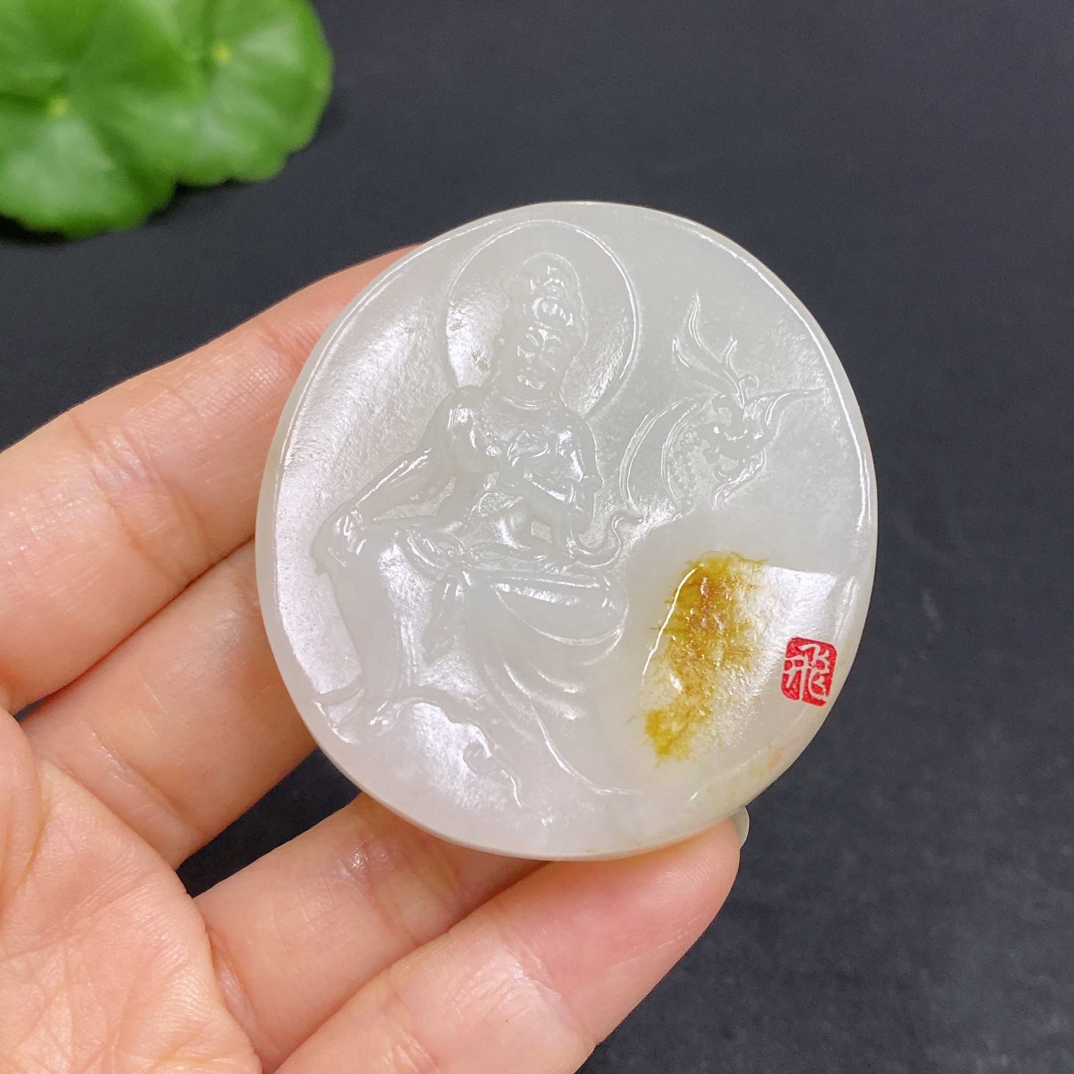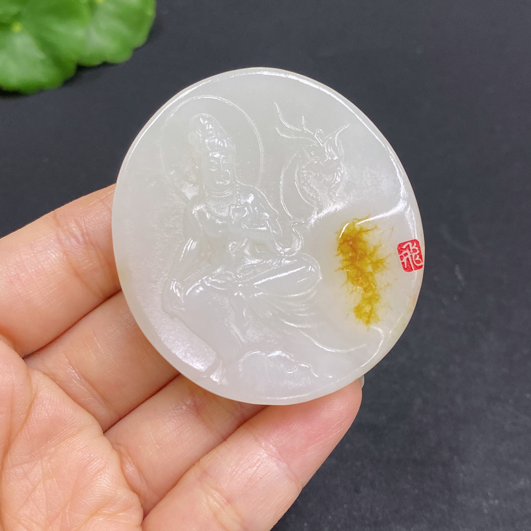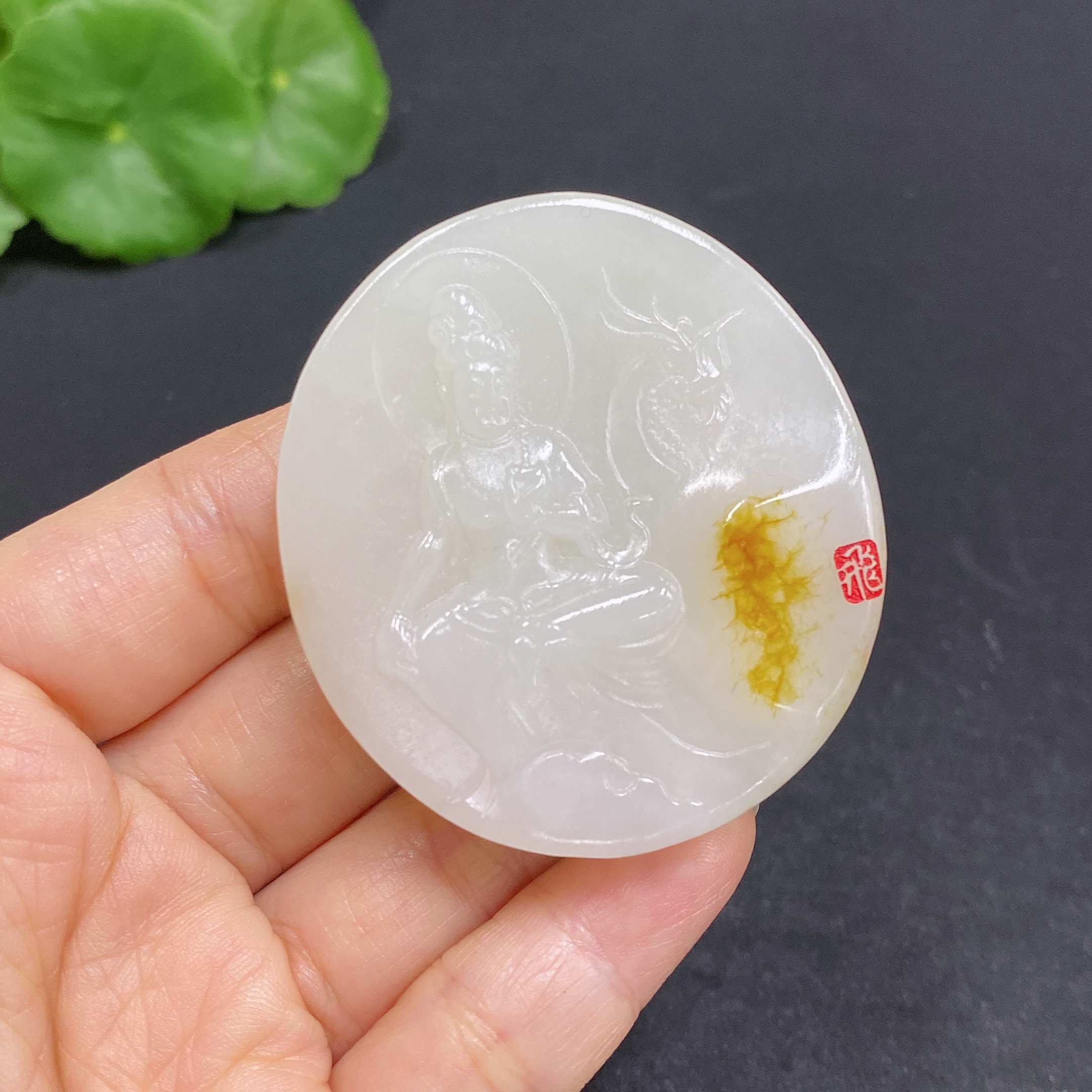 Hetian Jade Pendant Guanyin Total Weight Approx. 55.2g Undetermined Skin Color Origin