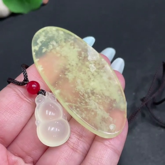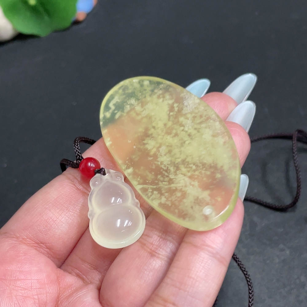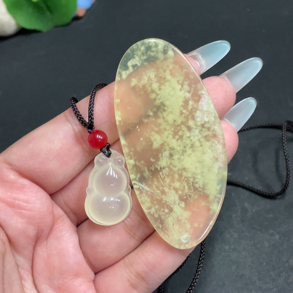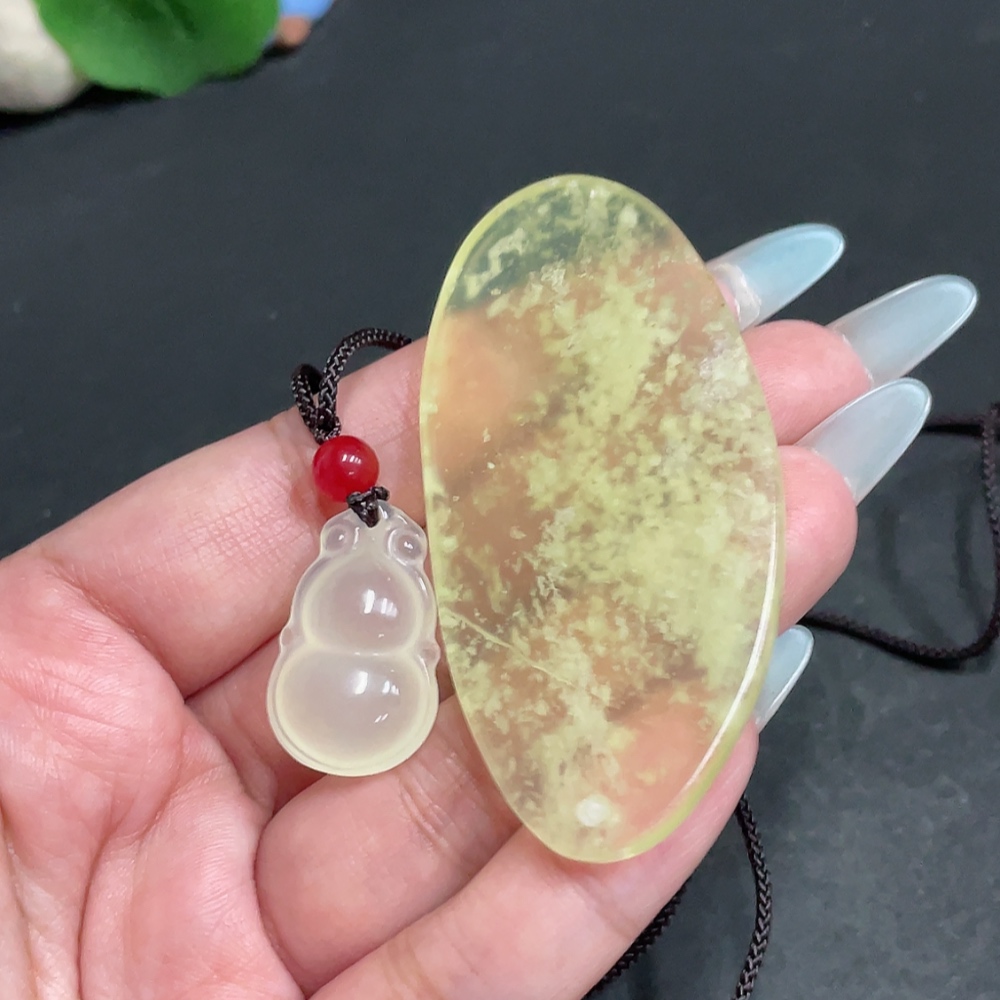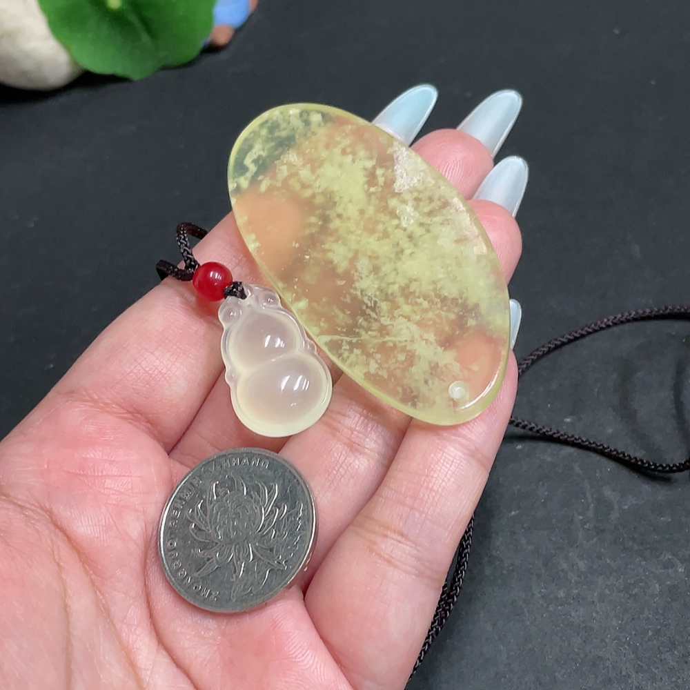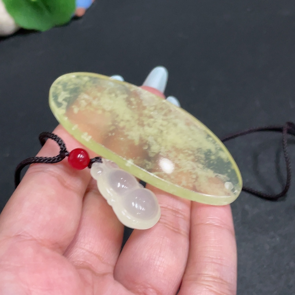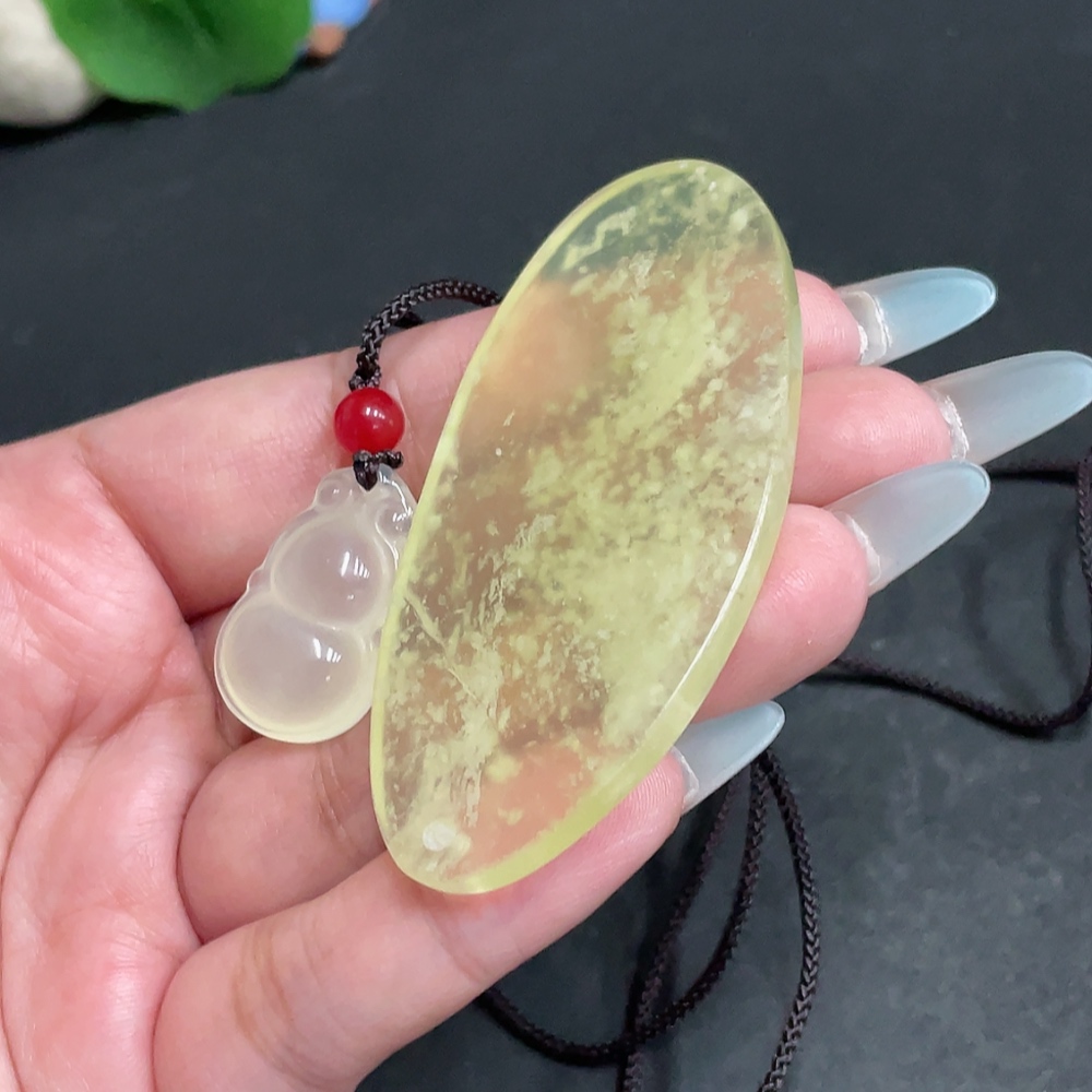 Xiuyu (Serpentine Jade) Pendant Gourd Plain Pendant Total Weight: approx. 26.5g [with string]