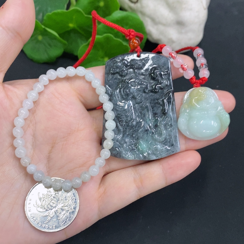 Jadeite Pendant with Bead Necklace Sell as a Lot