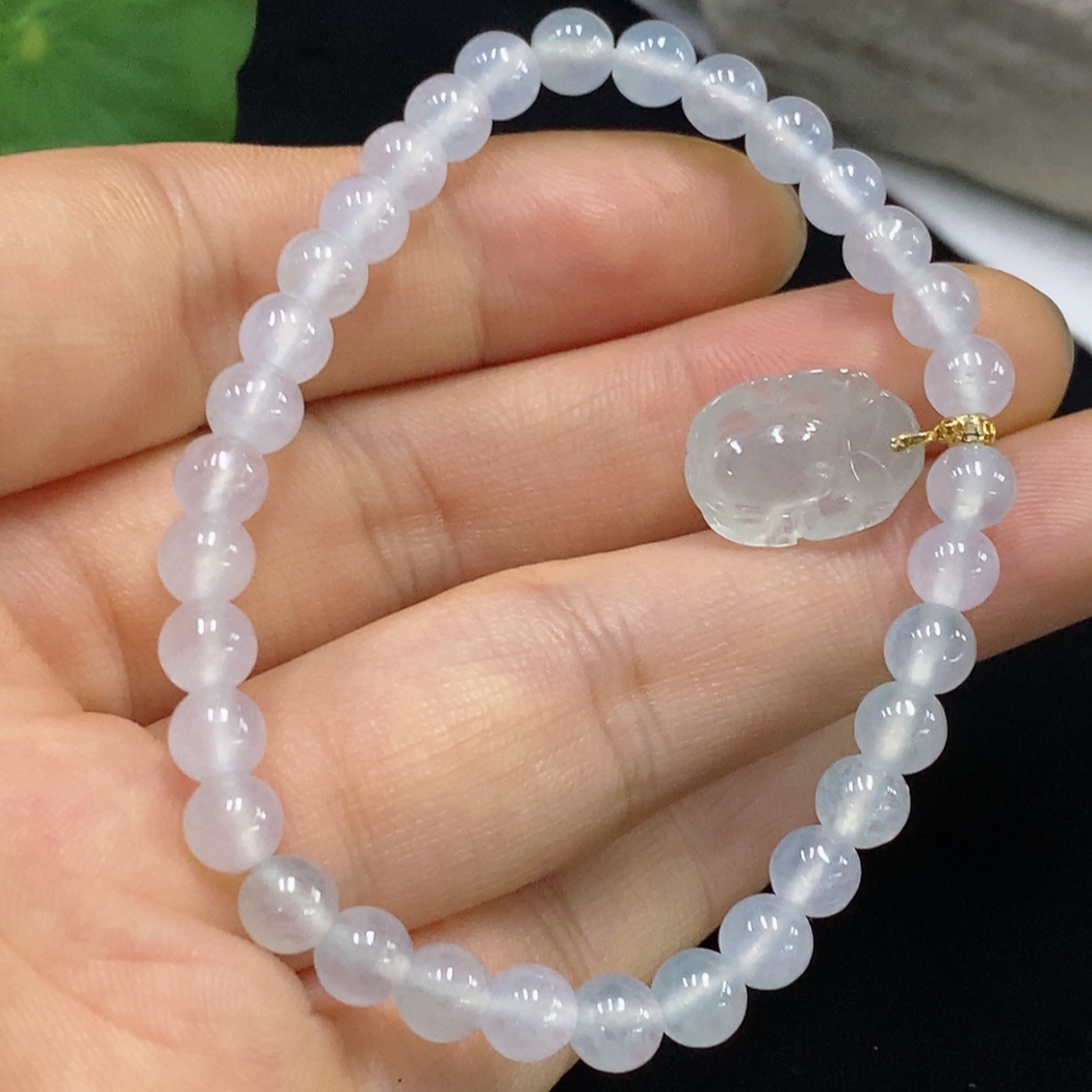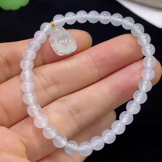 Jadeite Bracelet with 71% Gold Content, Total Weight Approximately 9.8g, Bead Size Around 5.4mm