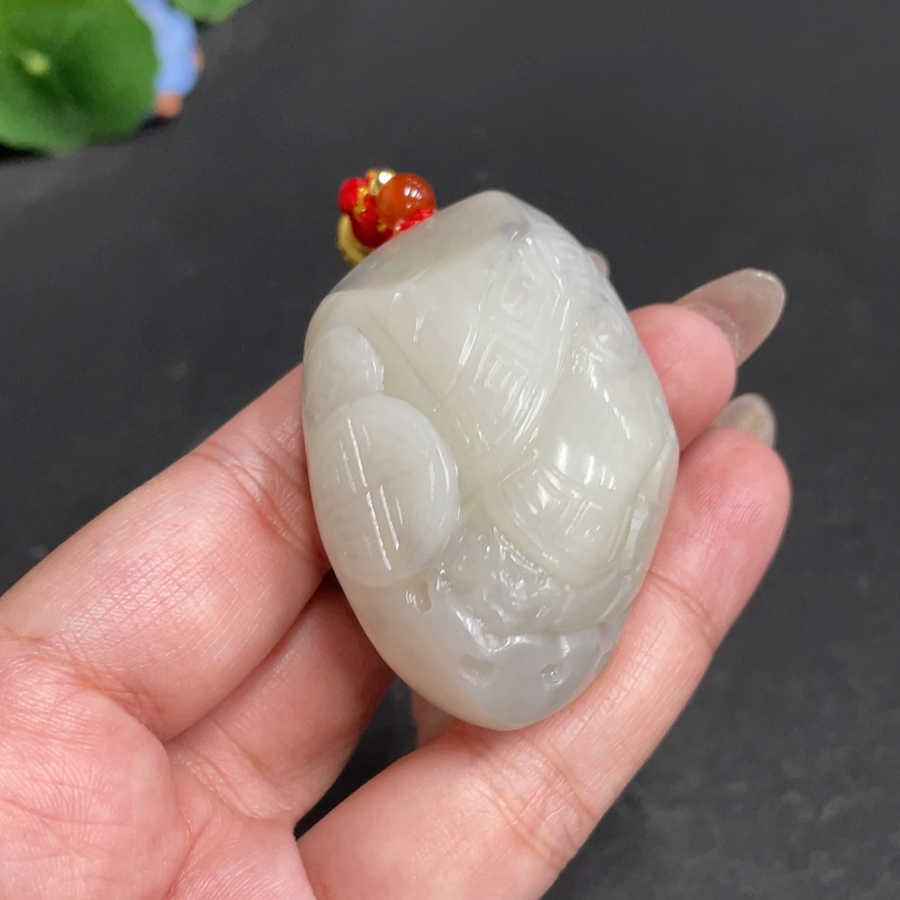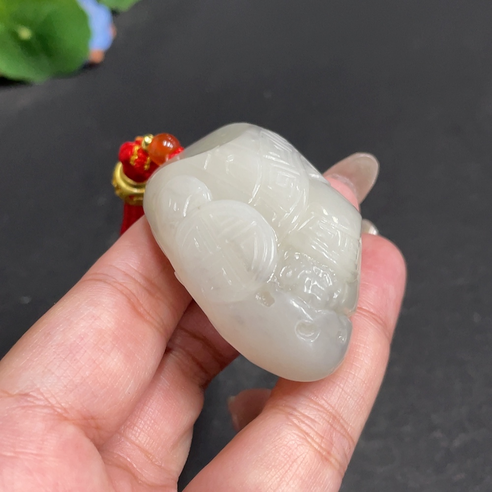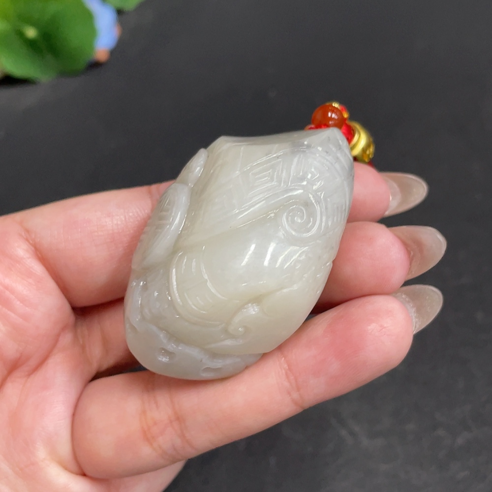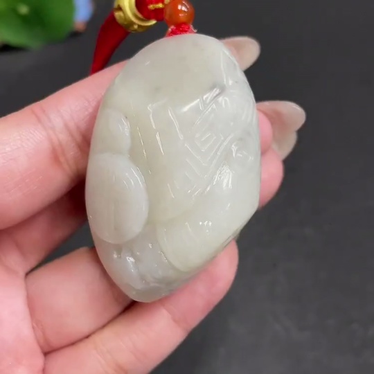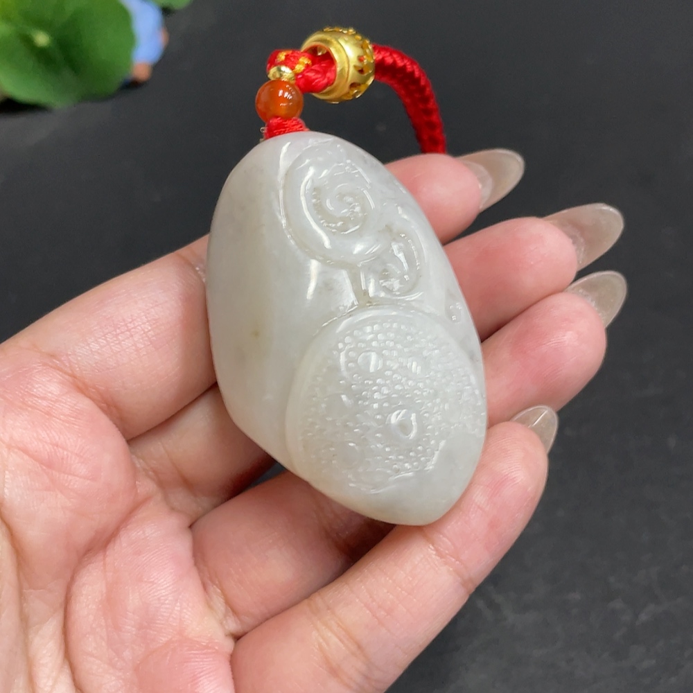 Hetian Jade Handheld Piece Antique Style Total Weight Approx. [Including Rope] 73.3g